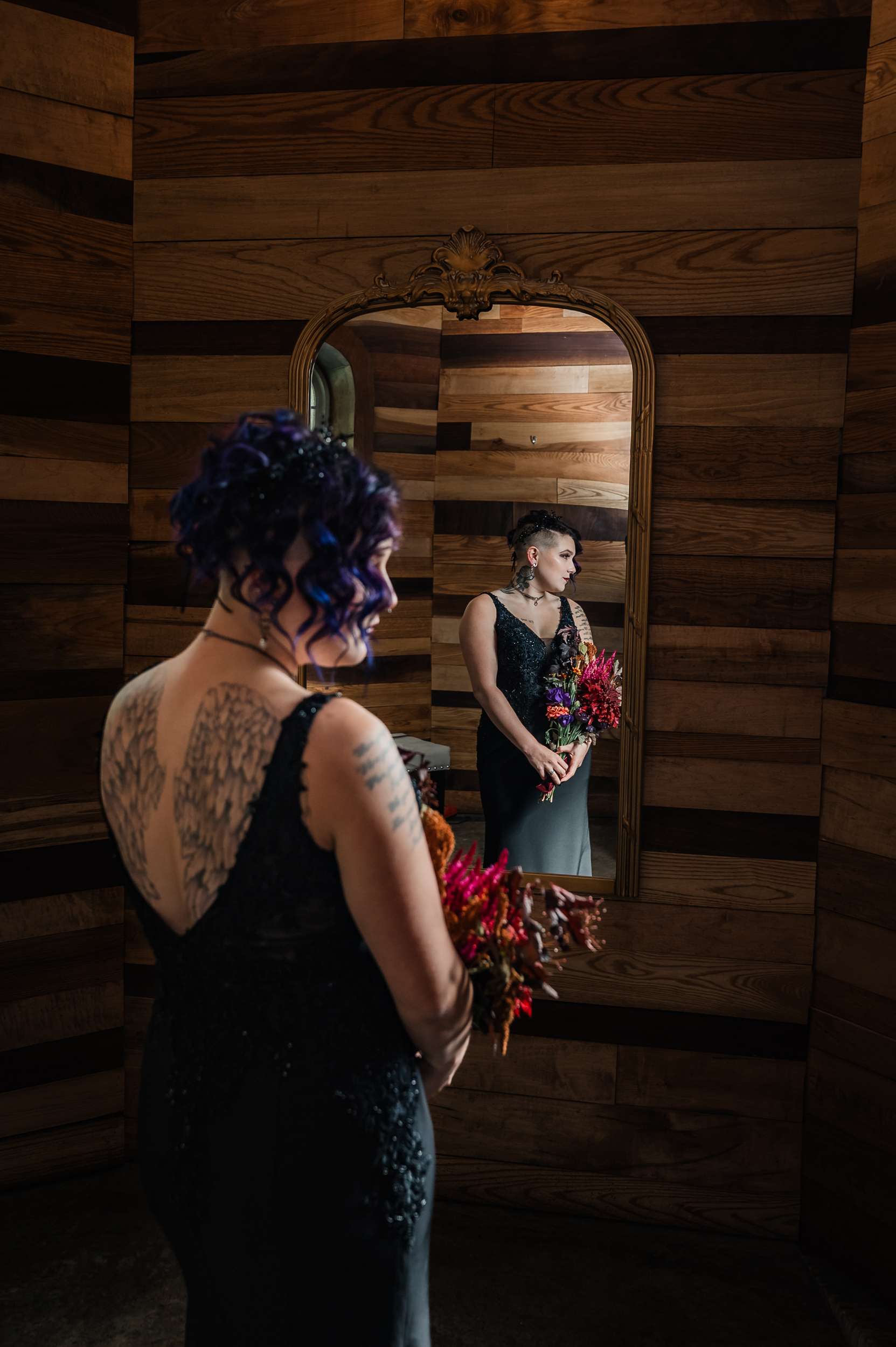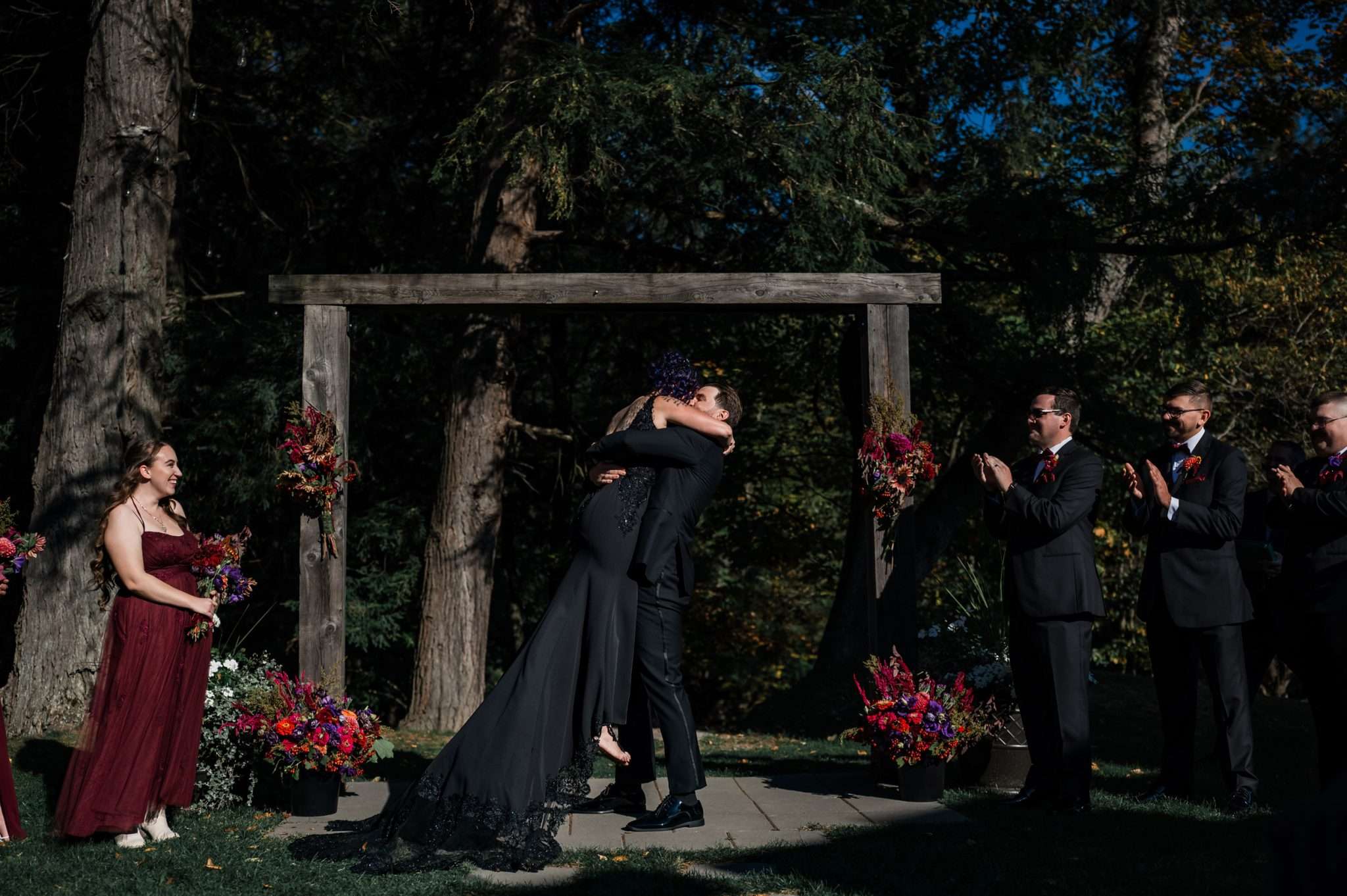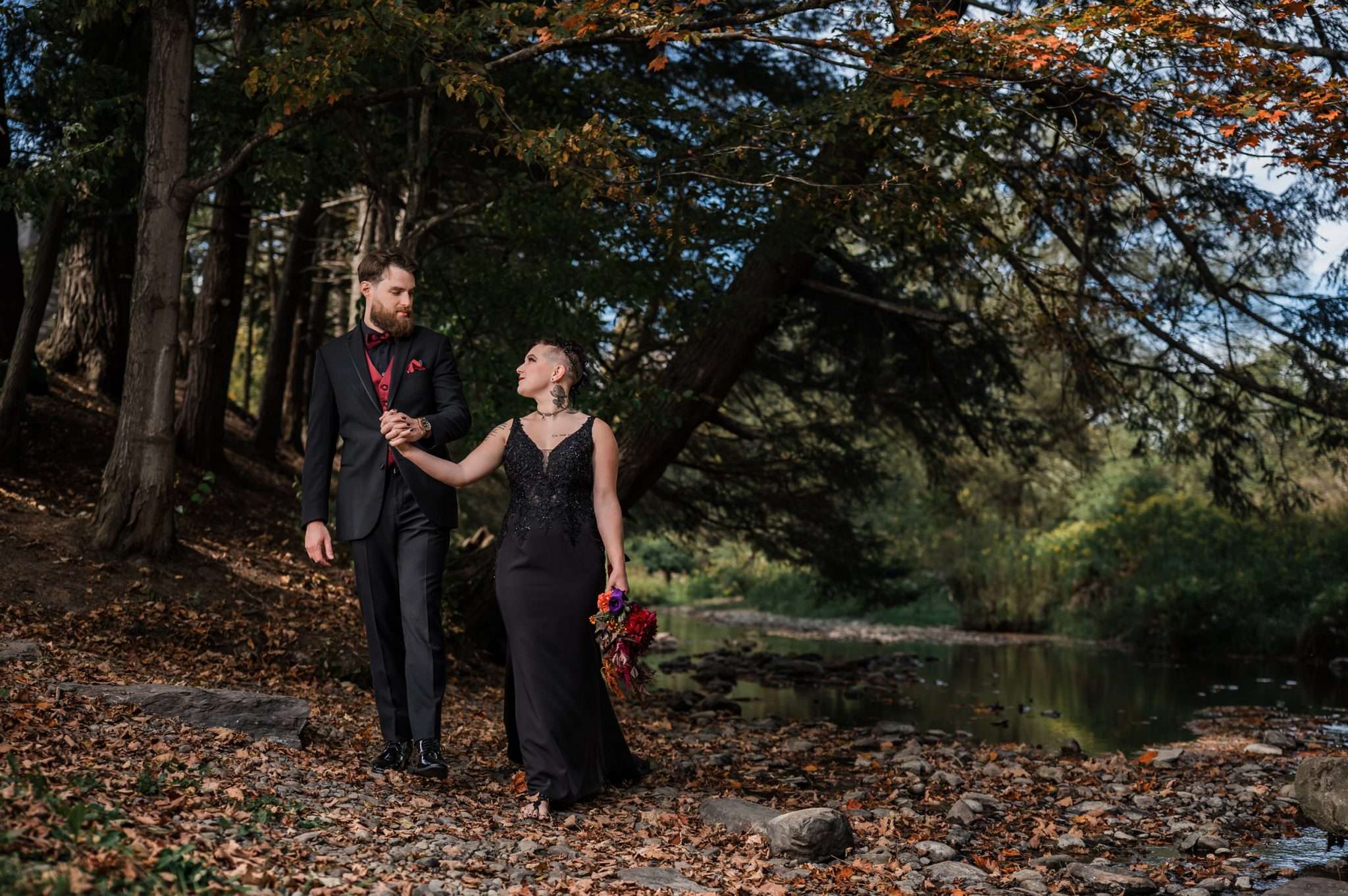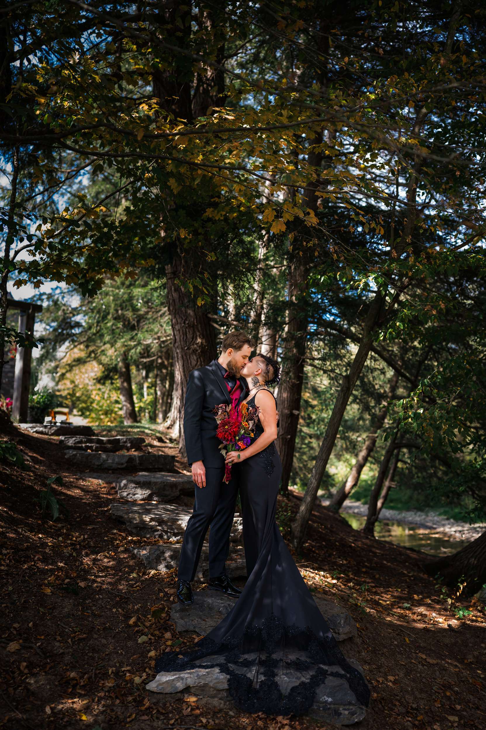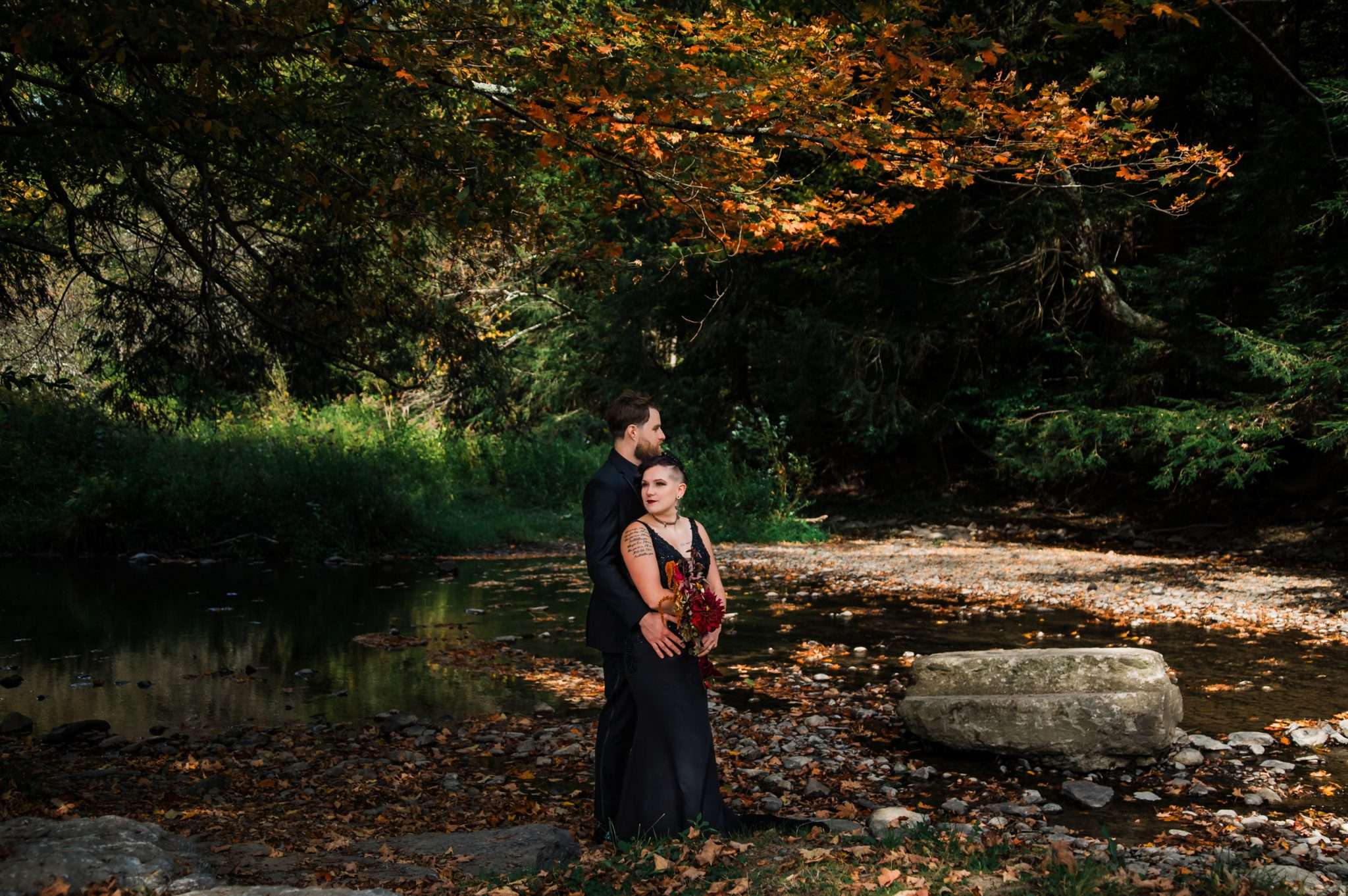 Sarah and Chris built their wedding around the premise of ’til death do us part. They fully went for it with the gothic symbolism, inspired The Addams Family and their own relationship. Stoney Creek Castle in Earlville NY provided the setting with it’s stone walls and heavy doors perfectly matching the tone they wanted for the day.