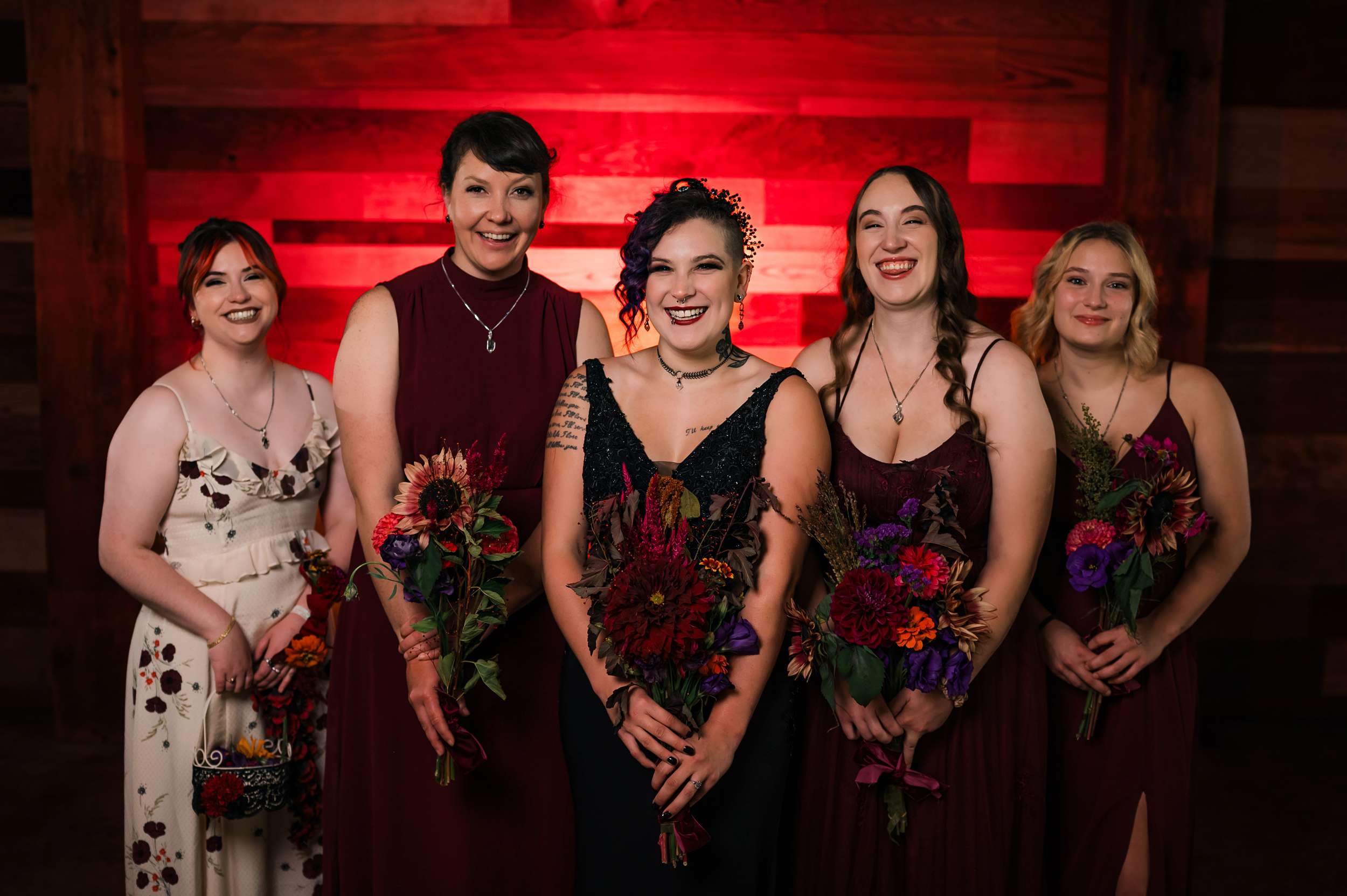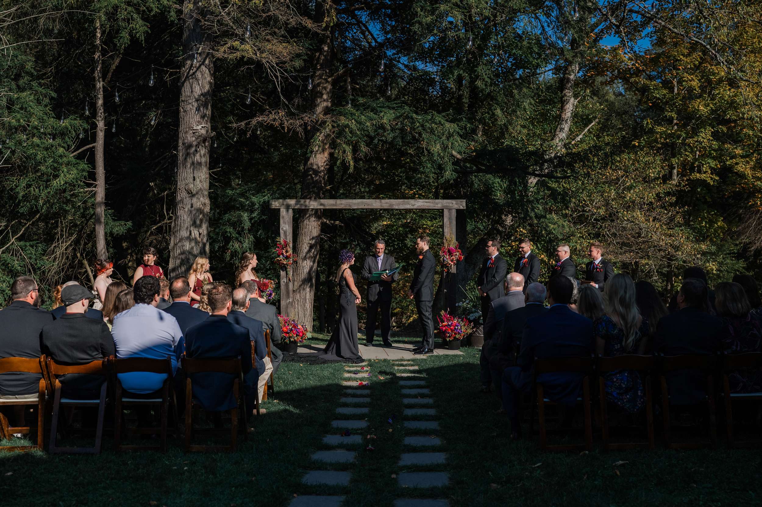 Their flower maiden and ring bearer were adults, chosen for their roles in Sarah and Chris’s lives rather than their age. The ceremony itself stayed small and only family, the wedding party, and their partners attended. More guests then arrived for the reception.