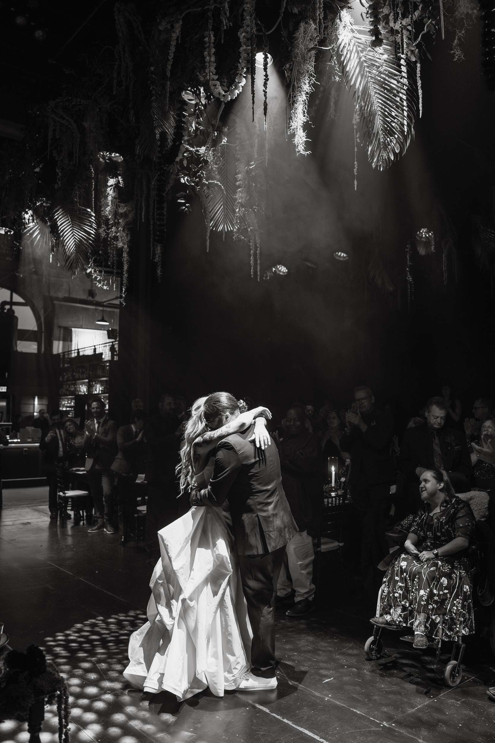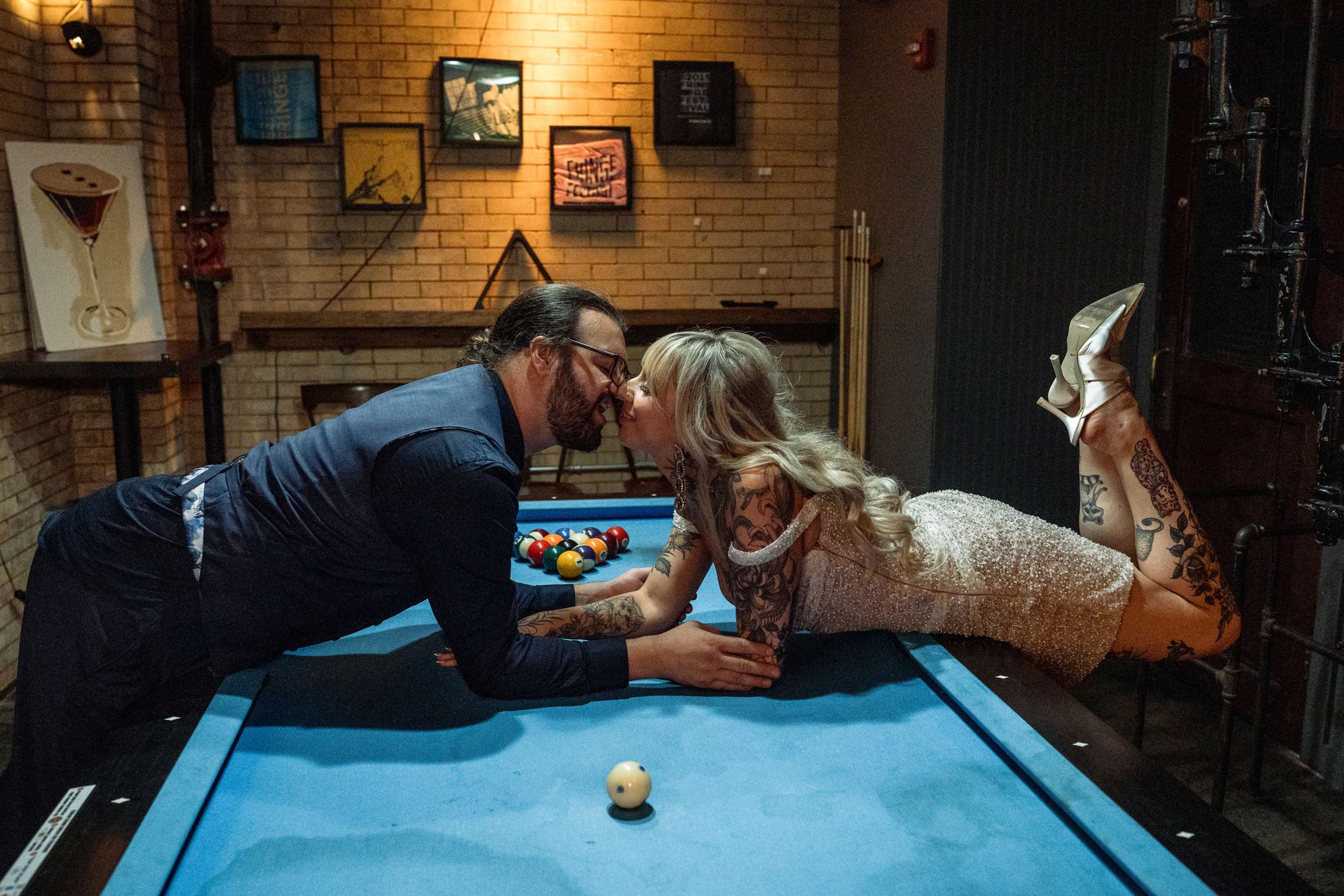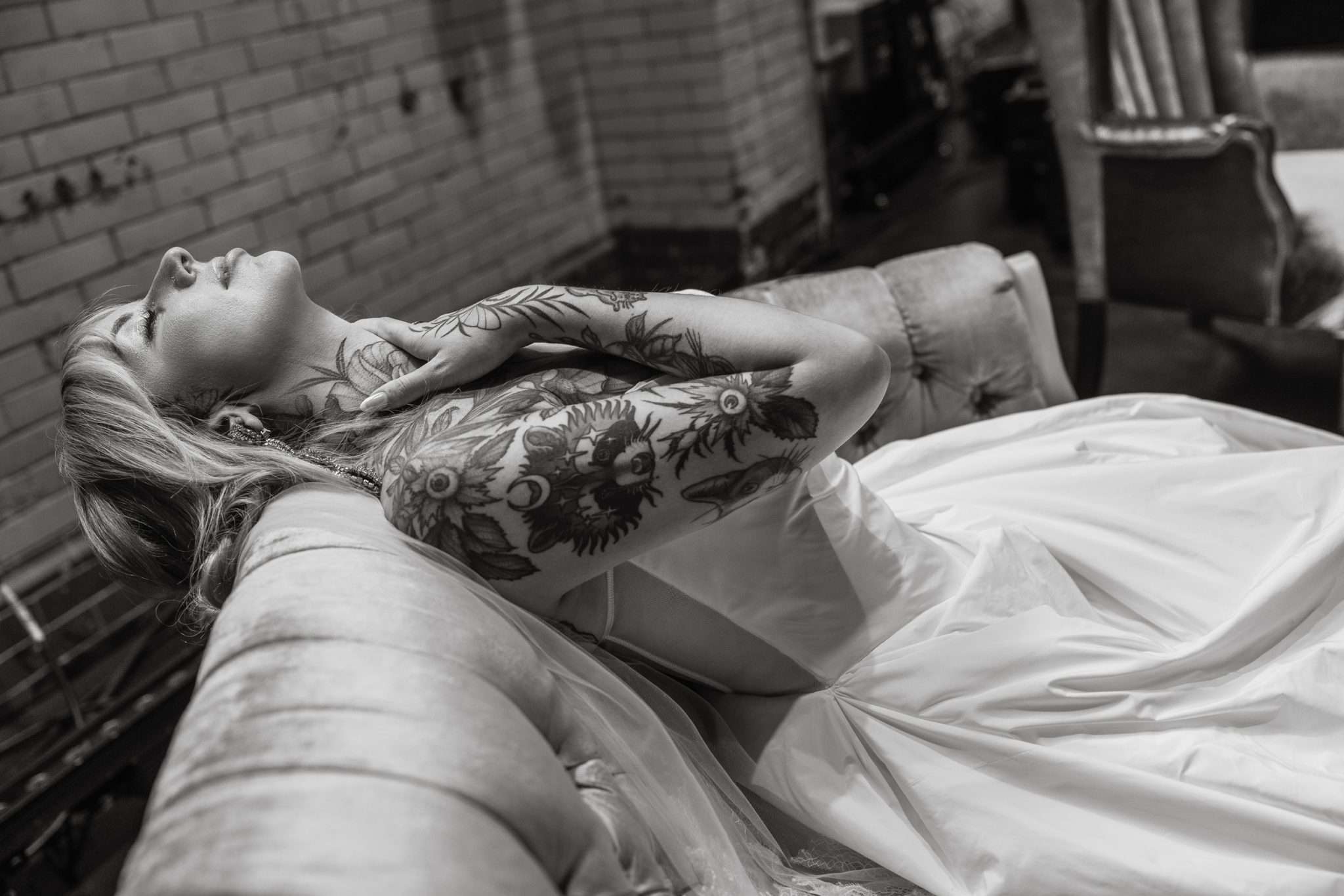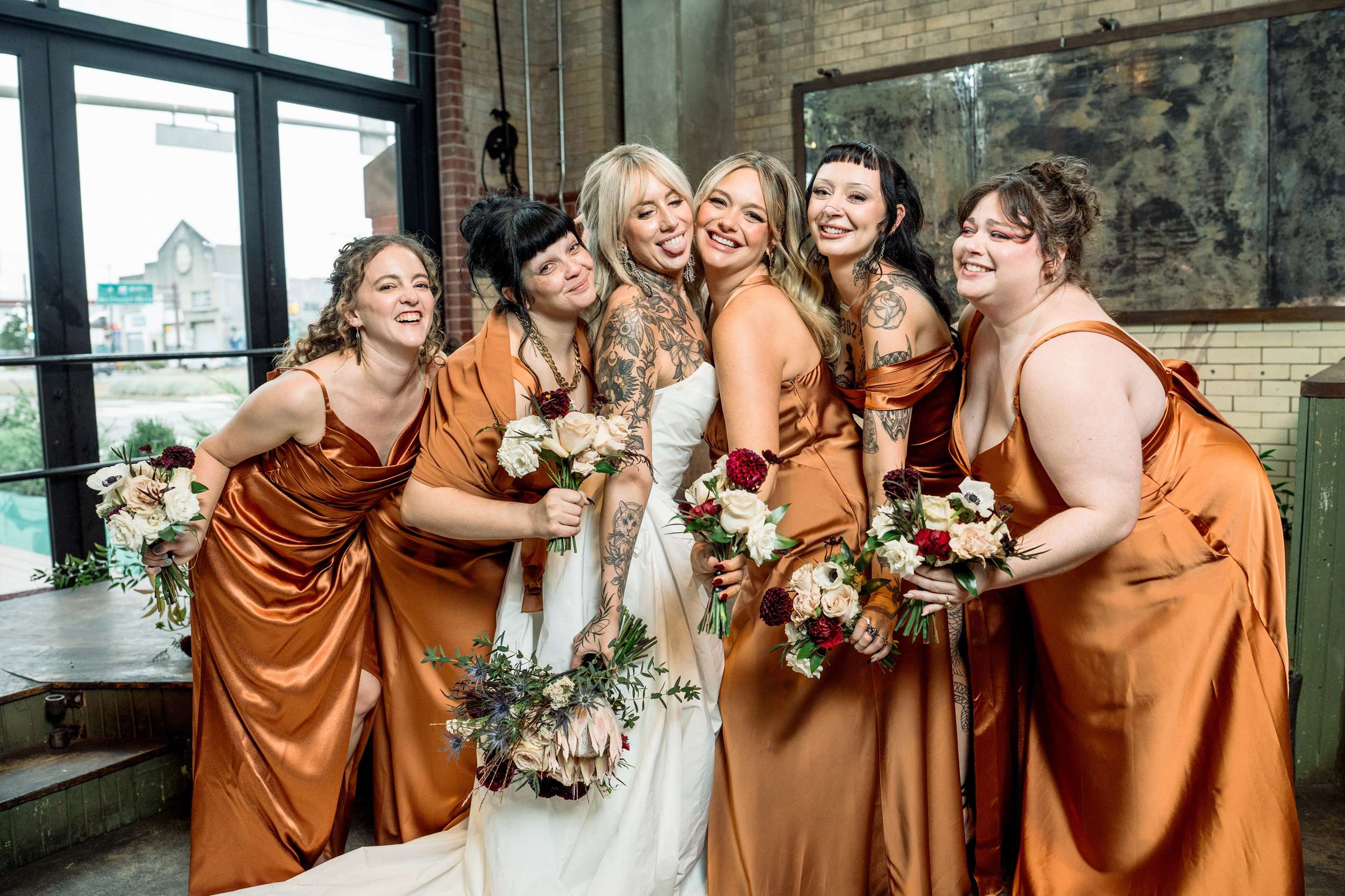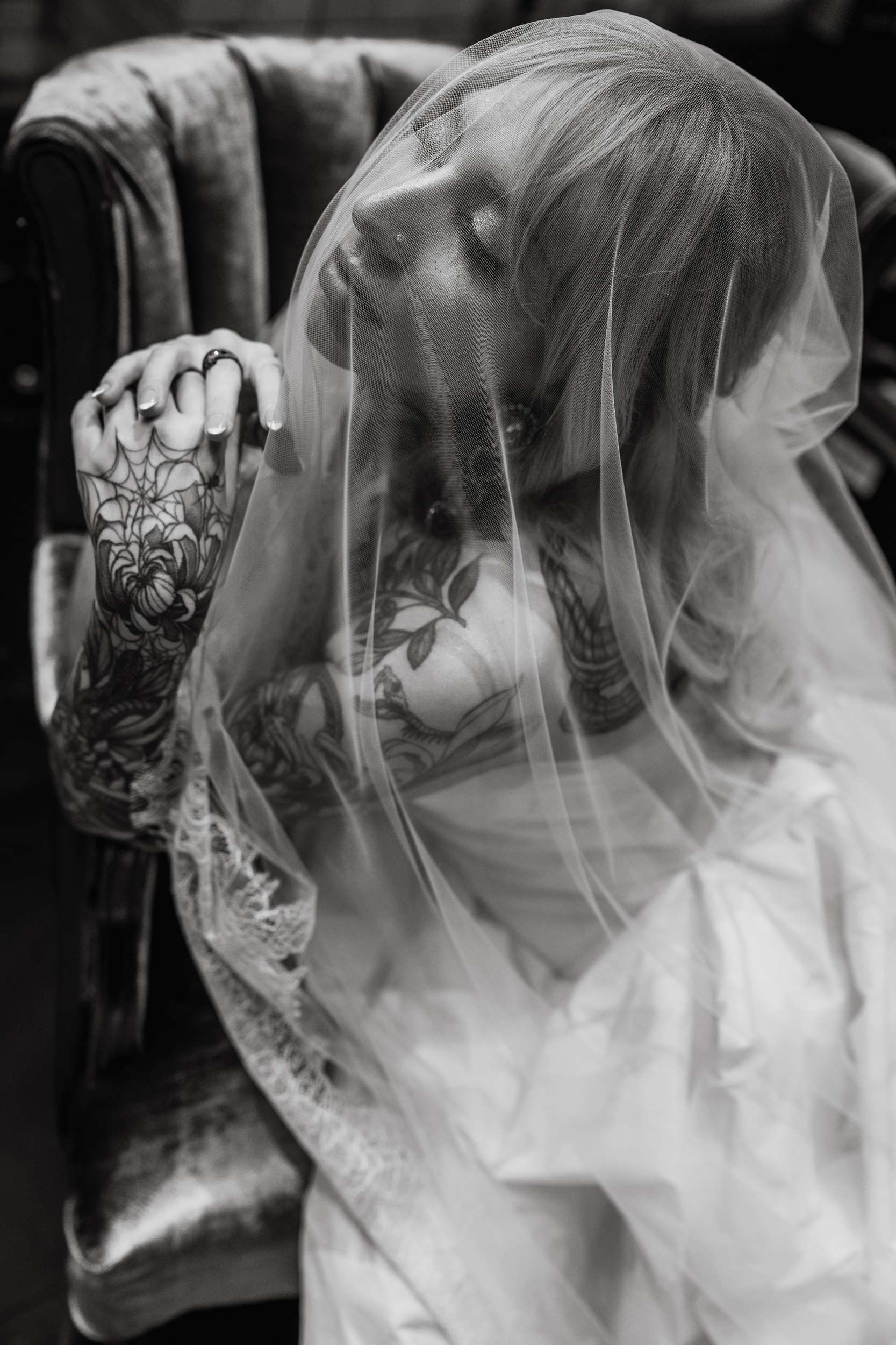 The reference point foe Nina and Lenny’s wedding was dark botanical styling with taxidermy woven through the space. They were married in the bar area of FringeArts in Philadelphia. The weather was bad all day so they had to stay inside, luckily their theme had brought the outside in!