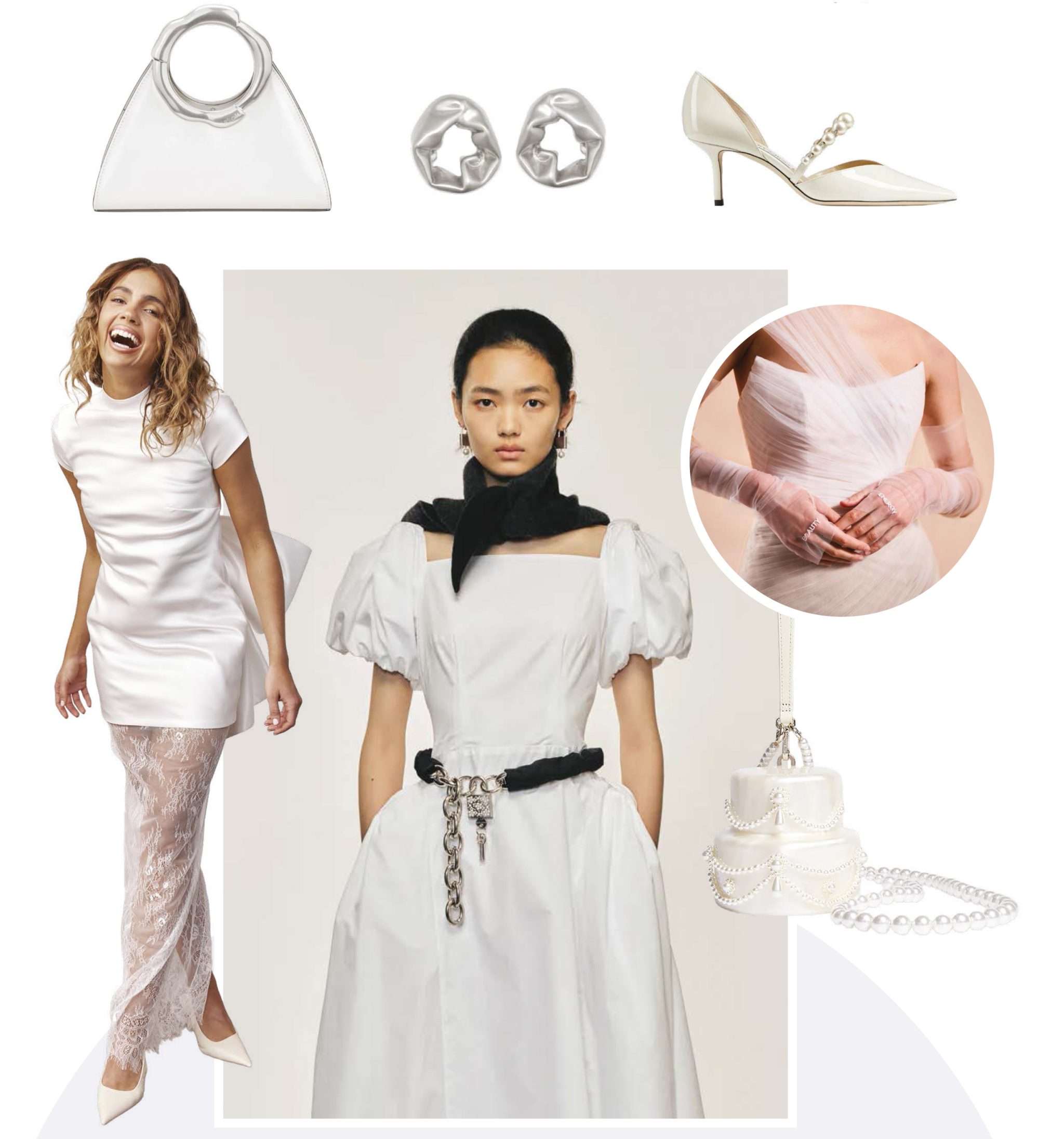 These looks are for the future-facing romantics who want their wedding outfit to feel like a transmission from another timeline. Think liquid textures, sculptural silhouettes, chrome flashes and strong silhouettes. These pieces pull their inspiration from the idea of liquid silver, Y2K nostalgia and the next-gen of ‘anti-bride’ design.