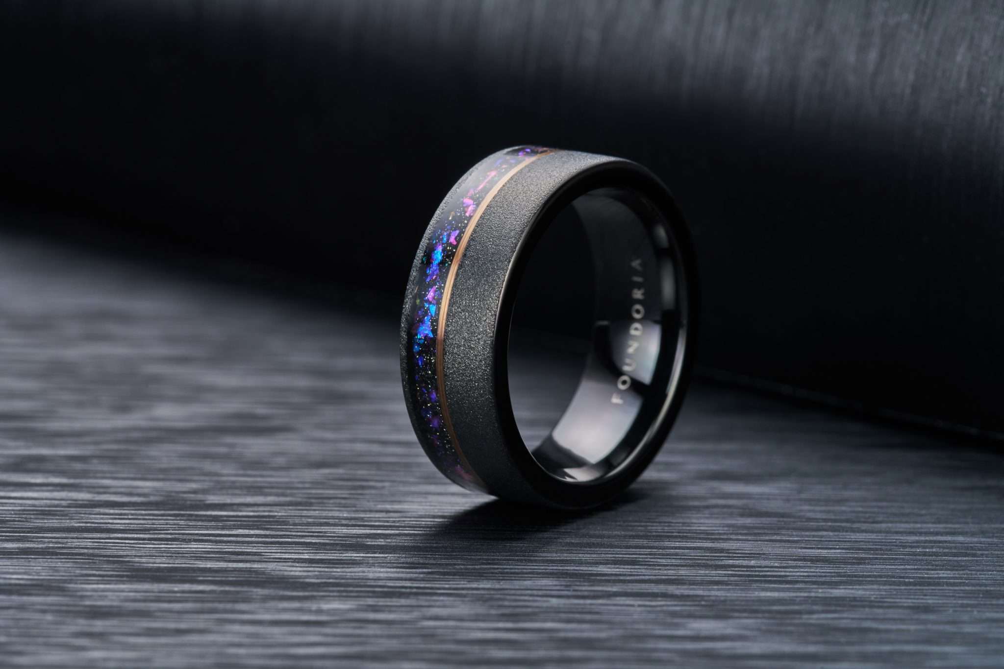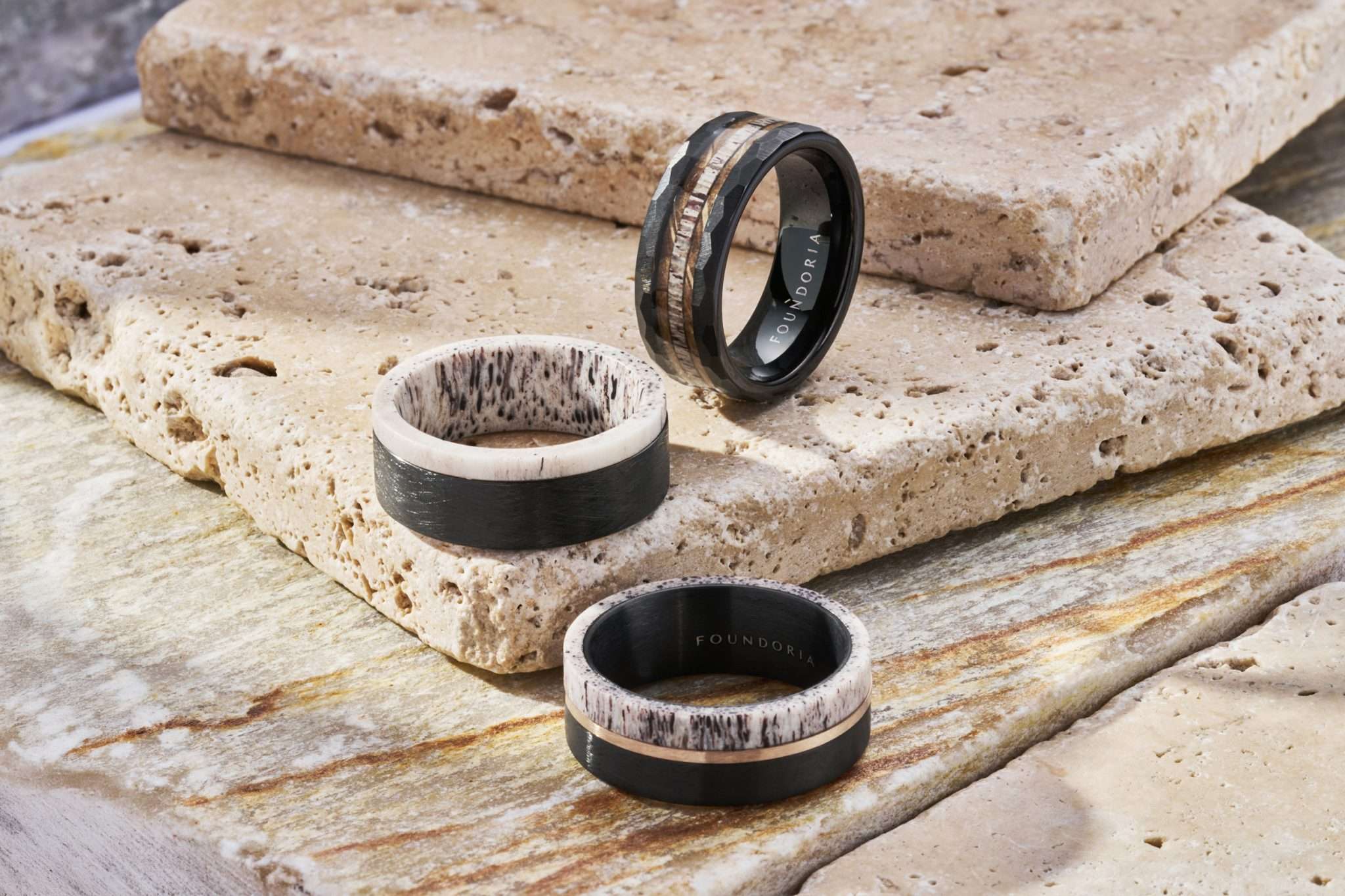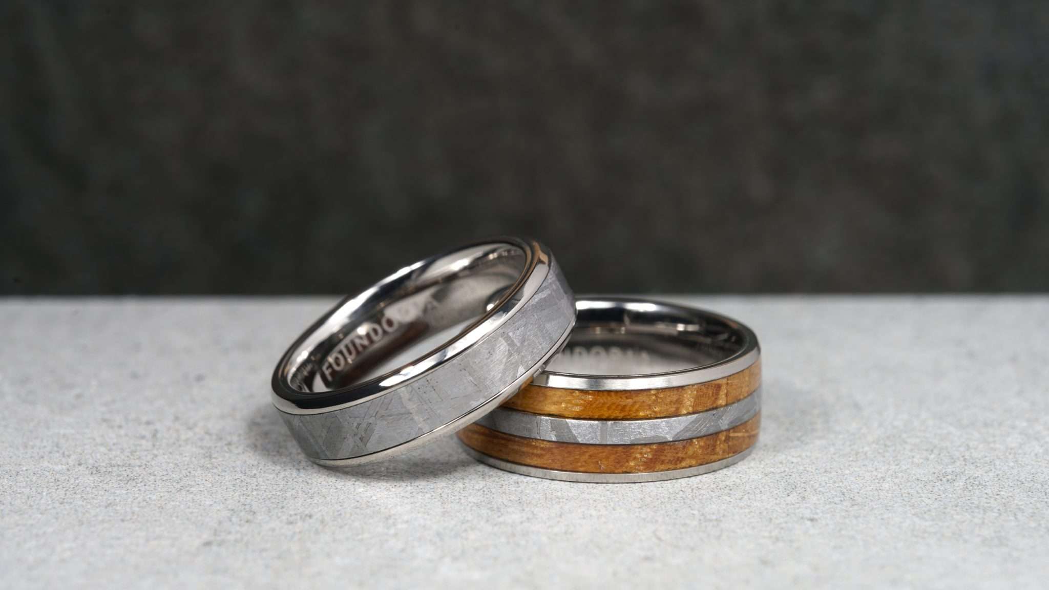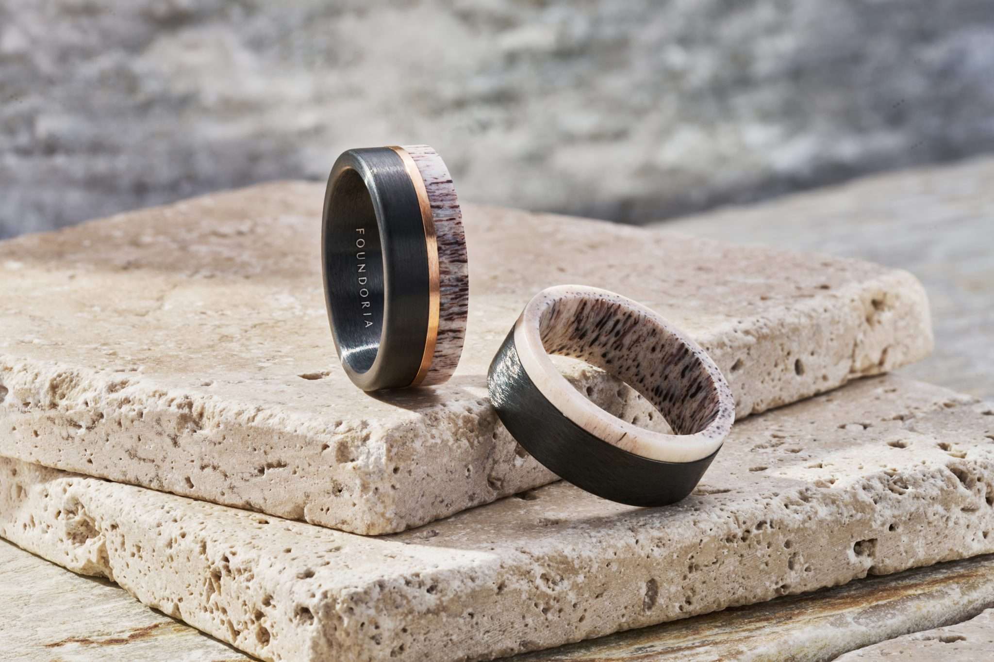 Foundoria is a UK-based brand offering wedding rings, men’s engagement rings, and statement rings made from alternative metals and unique natural materials, including genuine meteorite, Scottish deer antler, and whisky barrel oak, set in tungsten carbide and titanium.