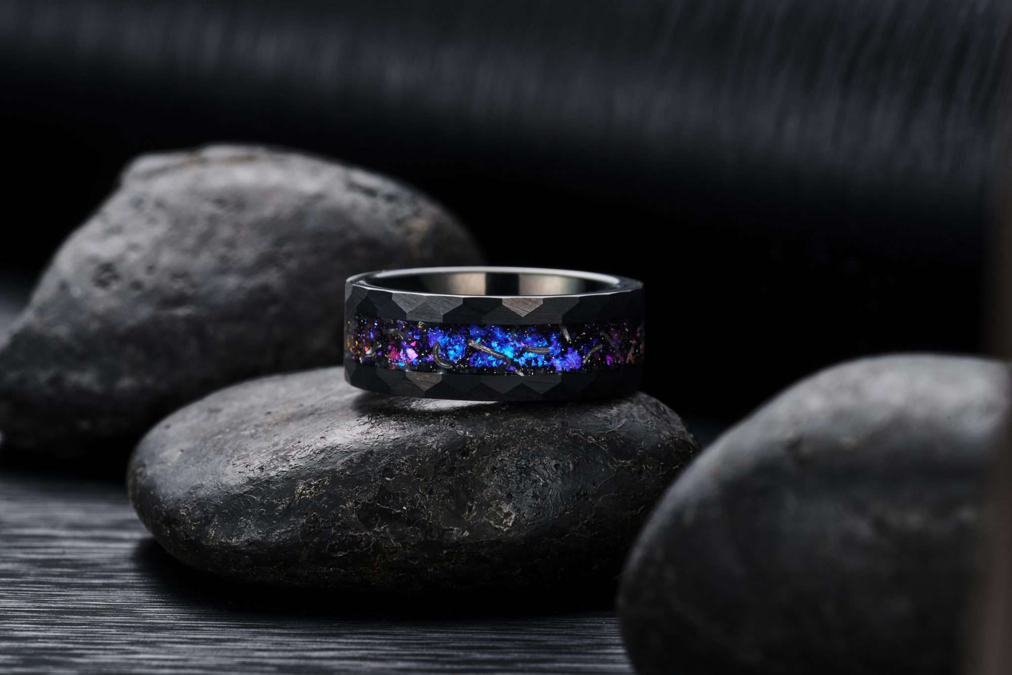 For many couples, the appeal is partly visual and partly symbolic. Wearing a material that predates the planet by millions of years gives the ring a story that goes well beyond the wedding day.