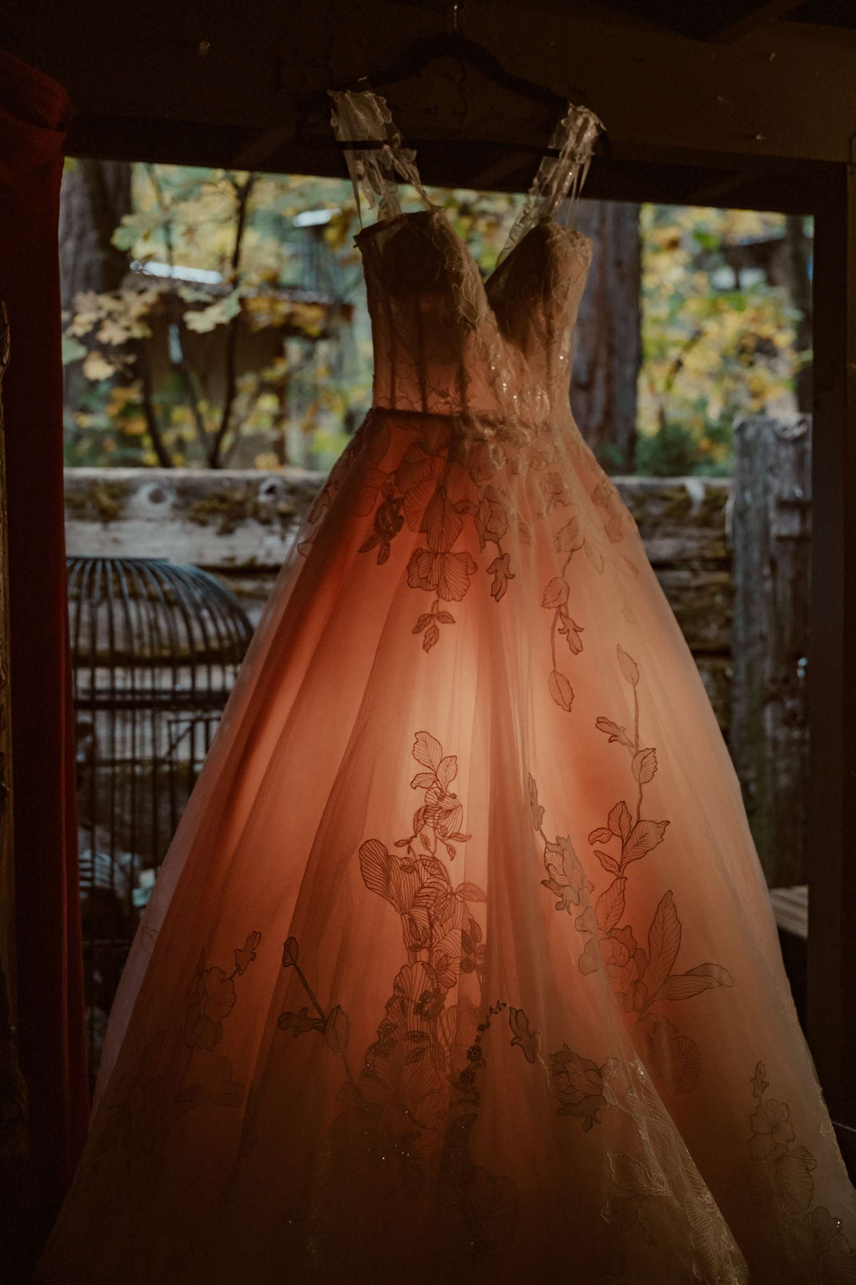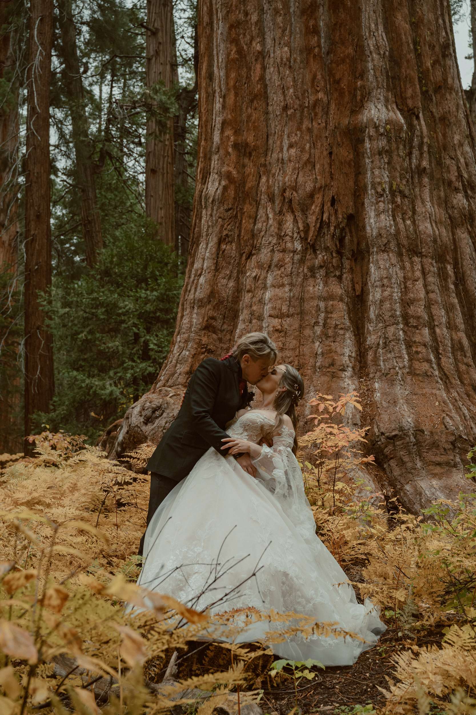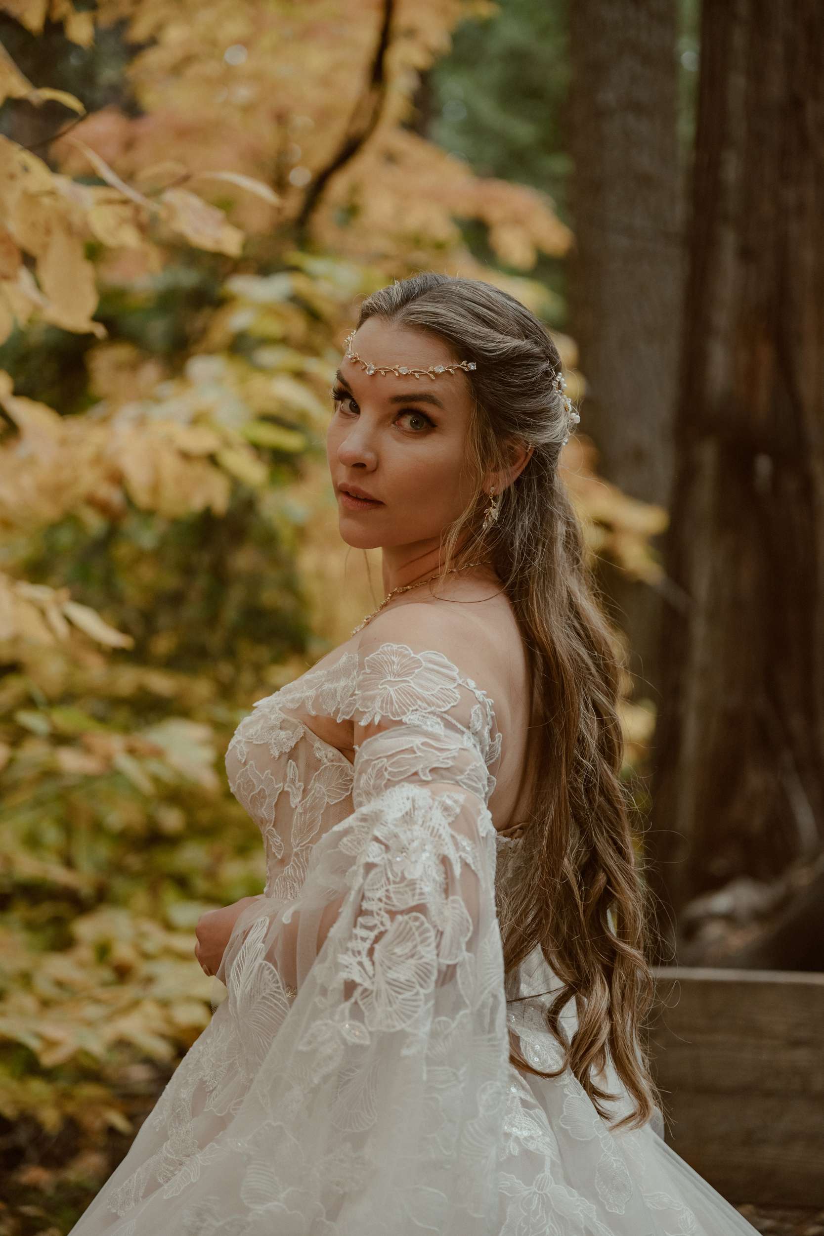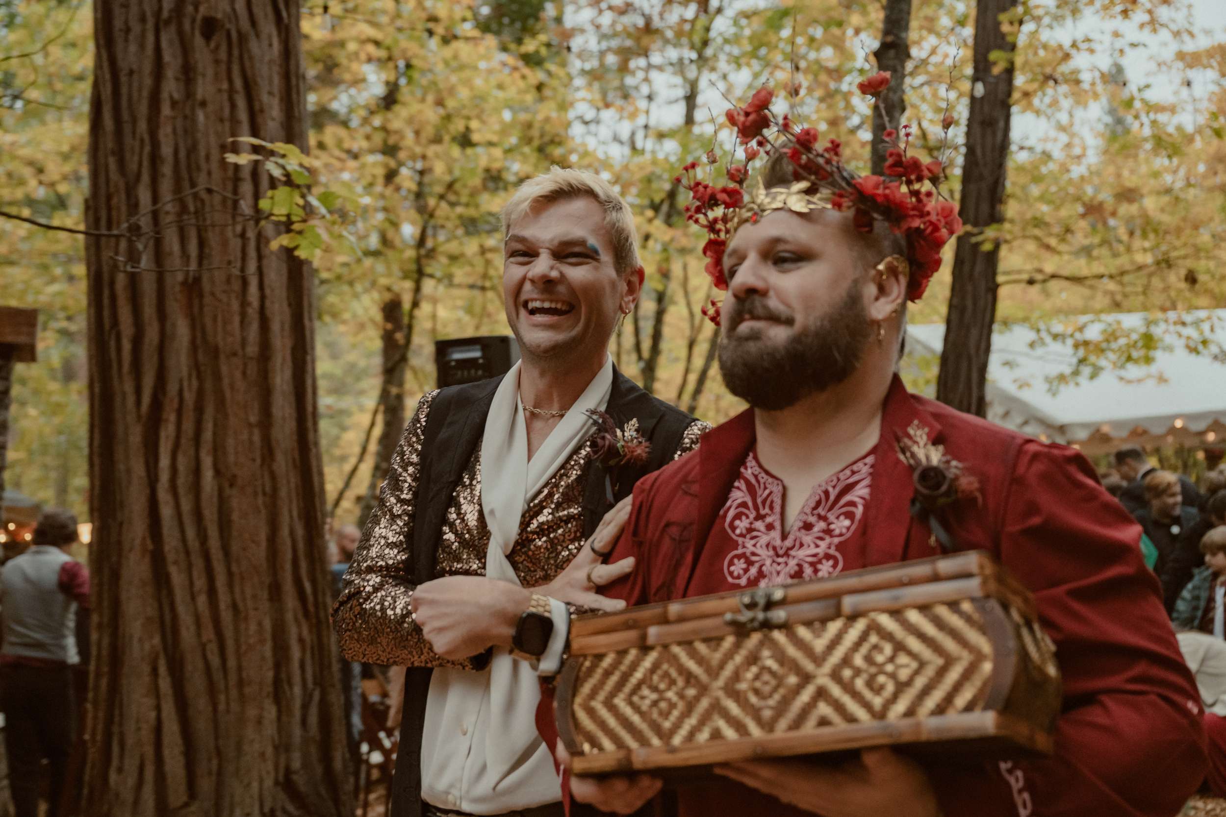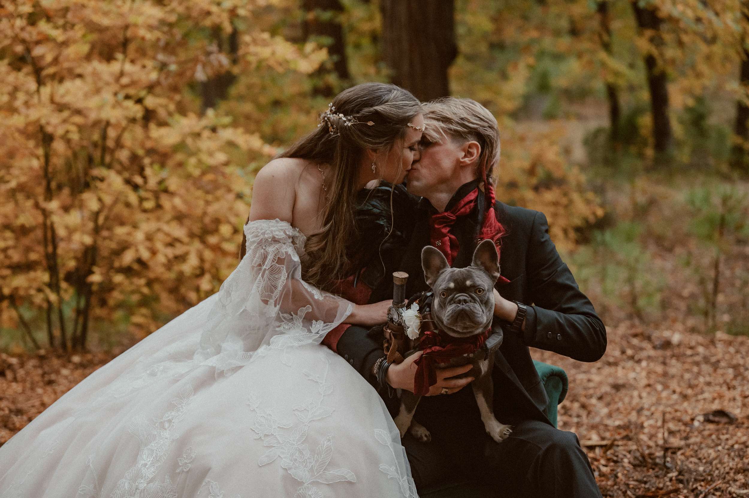 Fabienne and Nox, were married at their home in Arnold, a small mountain town in California. Their property sits among tall trees and was the setting for a wedding influenced by their shared life in fantasy worlds. Both are involved in live action role play, its also how they met, and both work behind the scenes in Hollywood. Storytelling is part of how they live and work, so their wedding followed the same path.