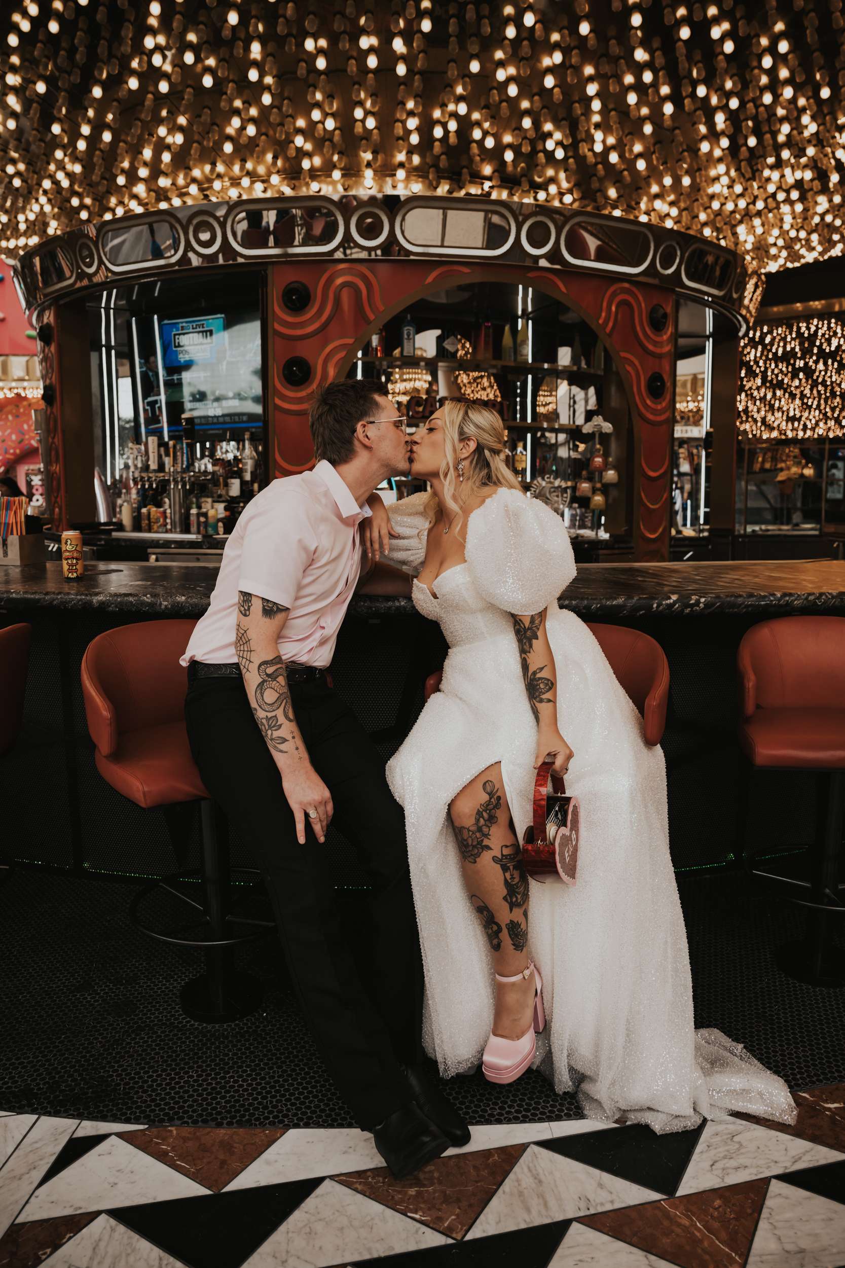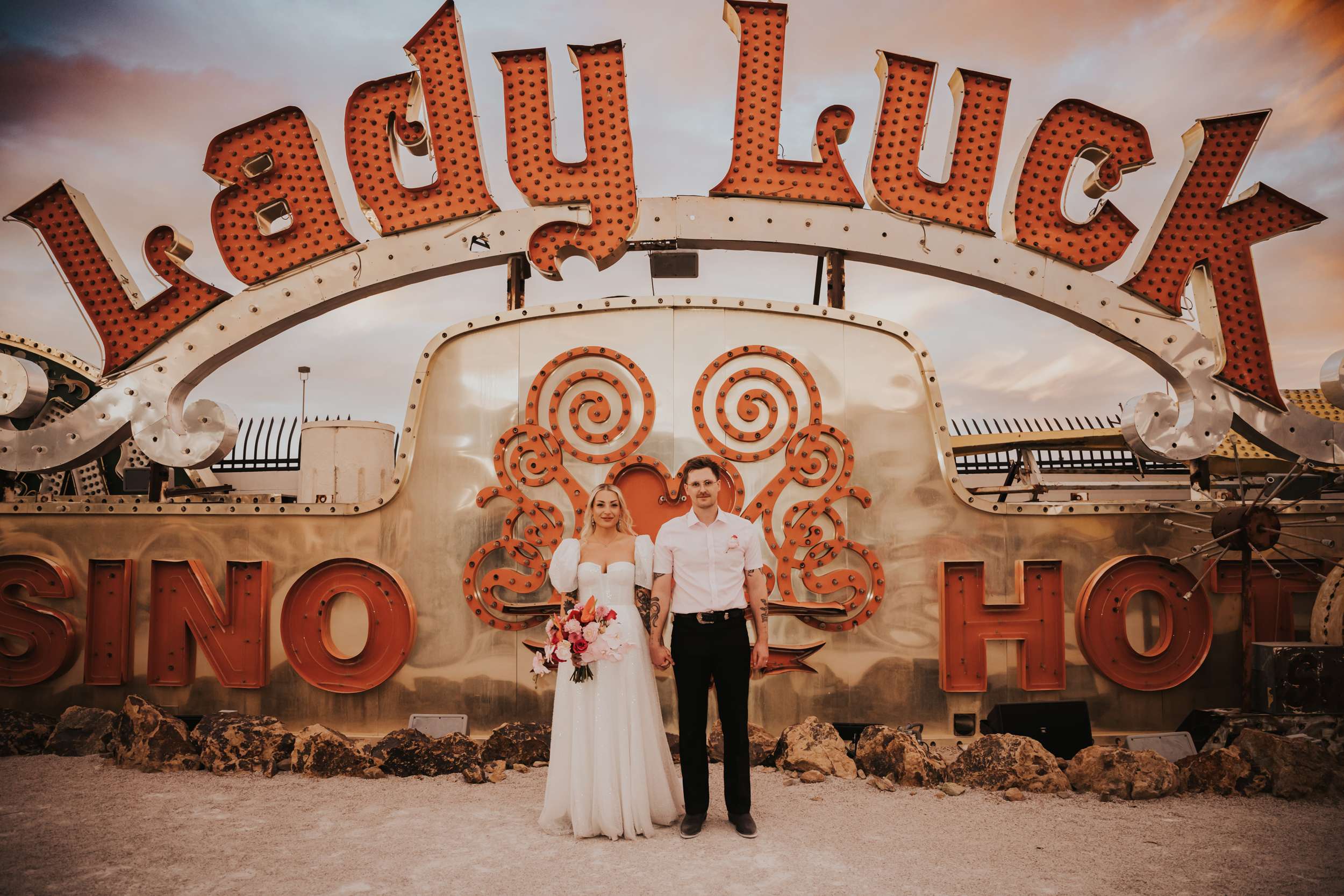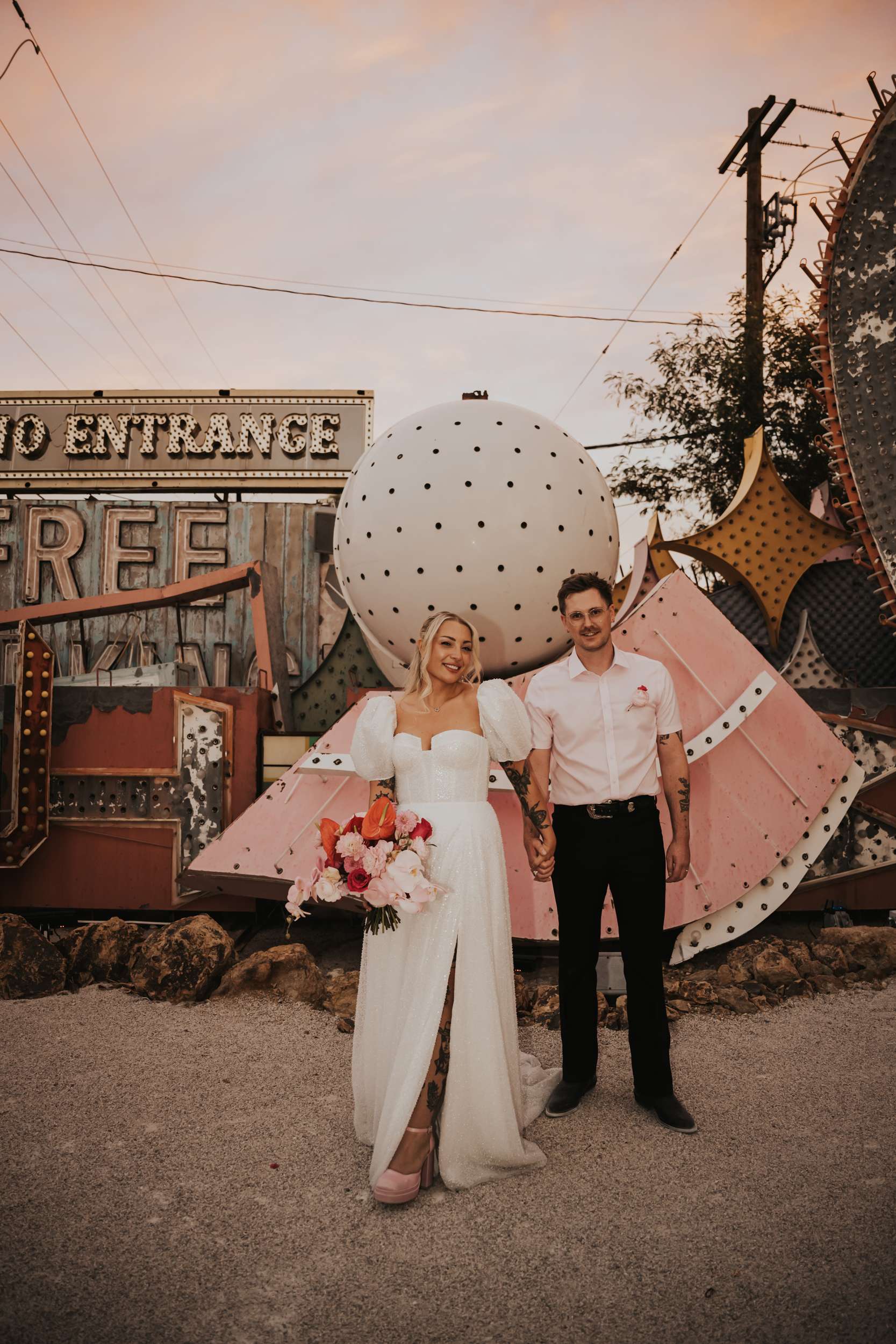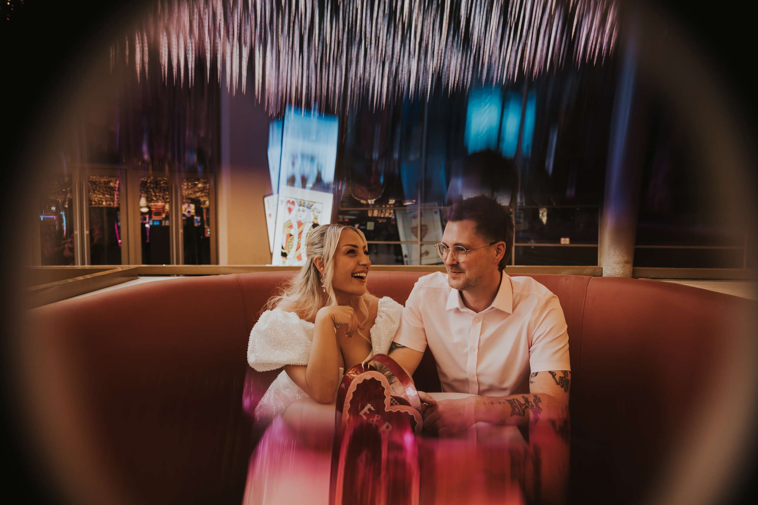 Beth and Elliott, who travelled to Vegas from the UK for their wedding, described their day as “Fun, flirty, and so Vegas!” They brought some close friends and family members with them and treated the whole experience like a holiday. “Honestly, we just know what we like and ran with it.” Beth told us. “We work so hard in our everyday lives we just wanted a big break. A day for us, about us and overflowing with love!”
