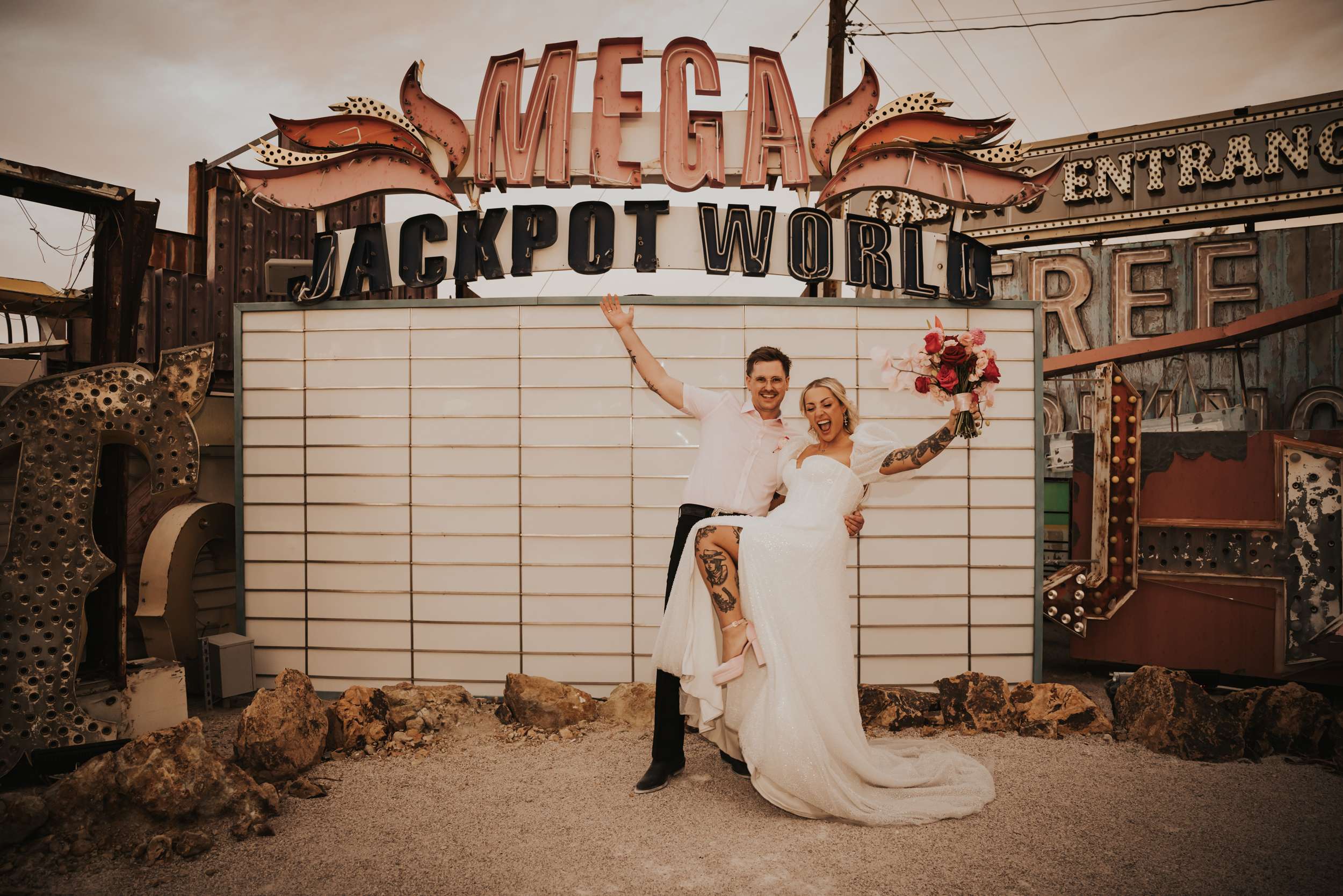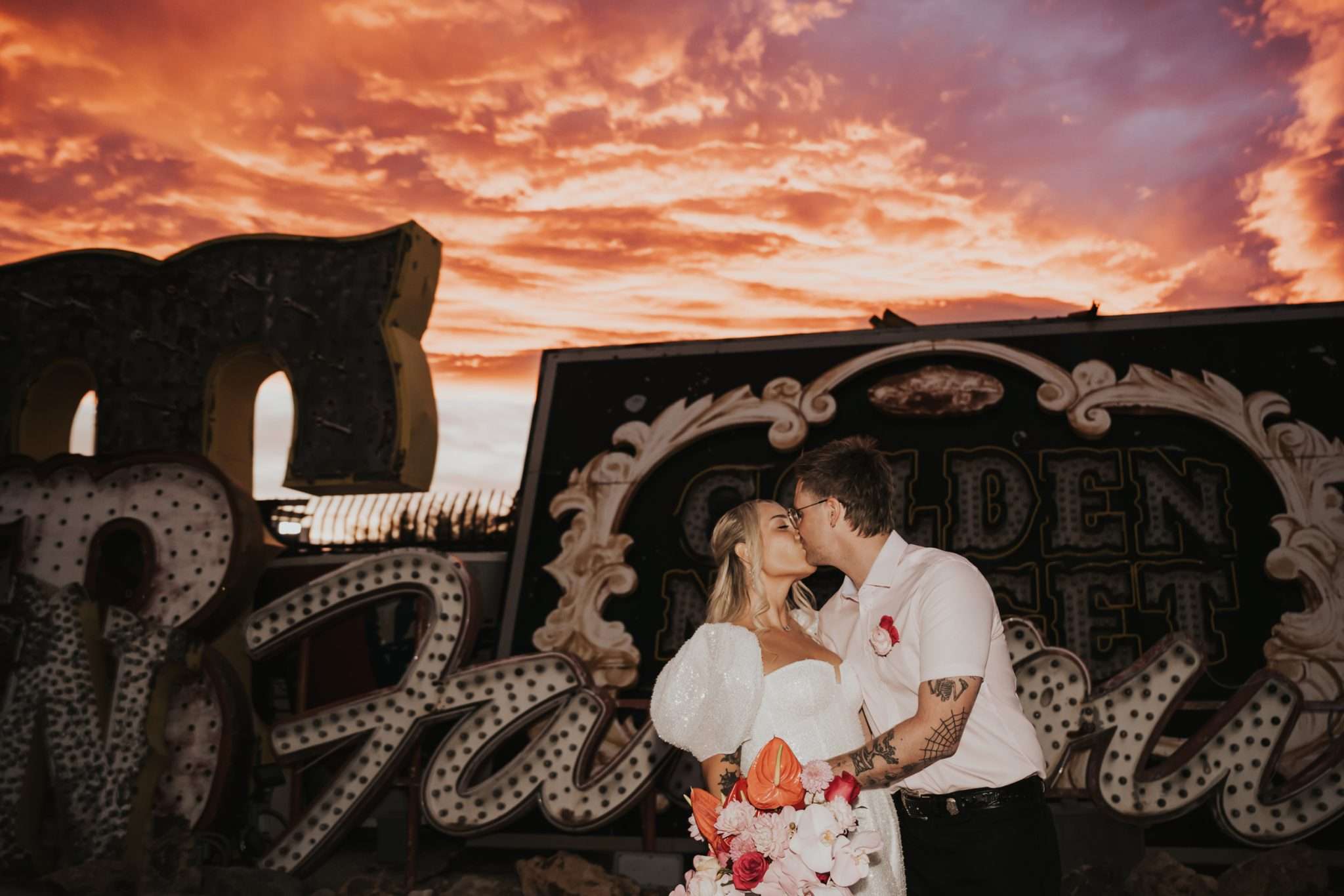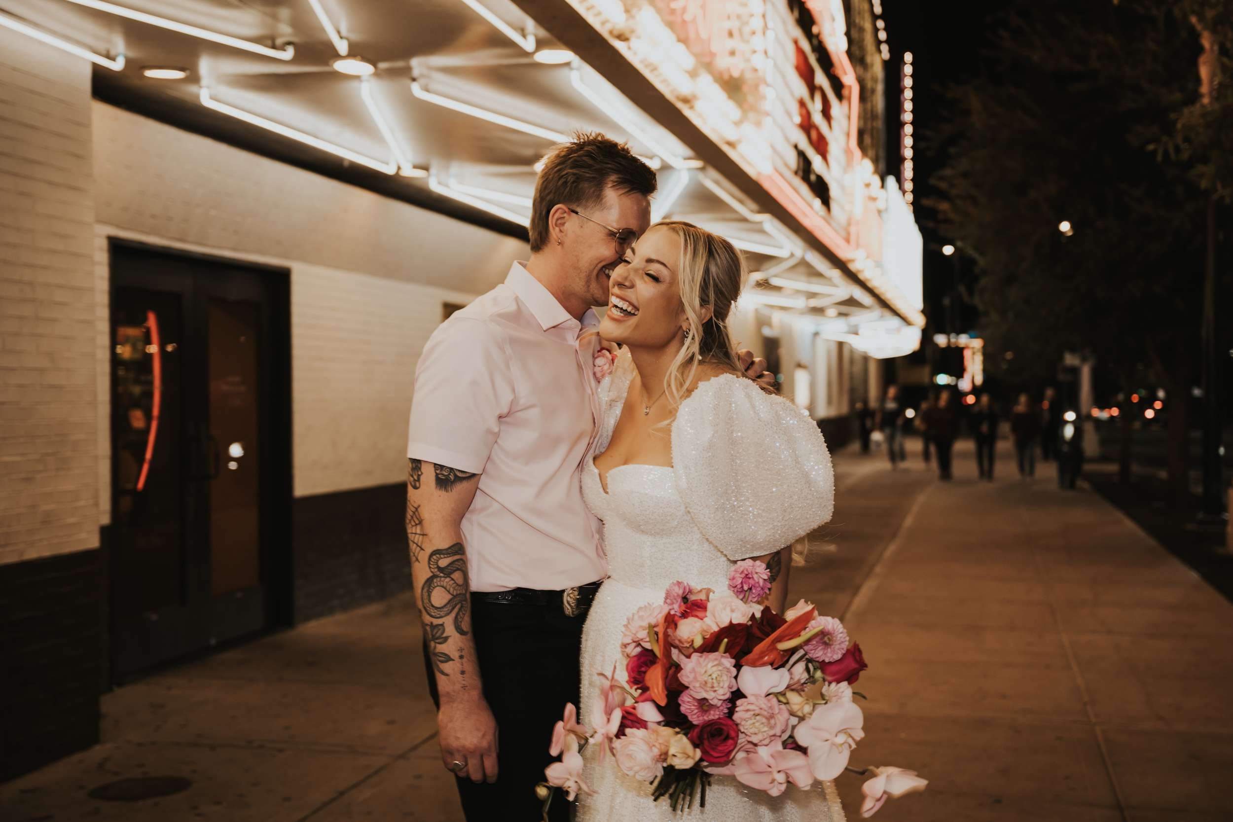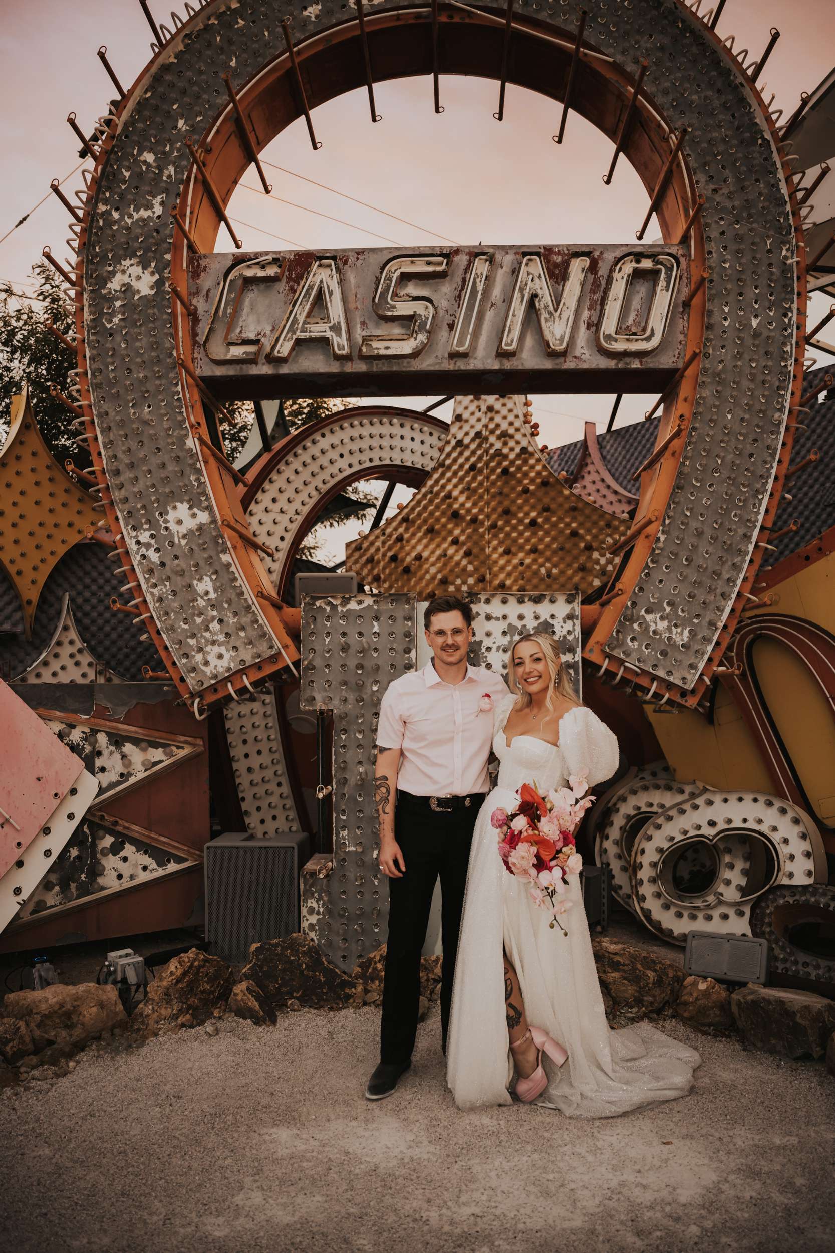 Beth and Elliott, who travelled to Vegas from the UK for their wedding, described their day as “Fun, flirty, and so Vegas!” They brought some close friends and family members with them and treated the whole experience like a holiday. “Honestly, we just know what we like and ran with it.” Beth told us. “We work so hard in our everyday lives we just wanted a big break. A day for us, about us and overflowing with love!”