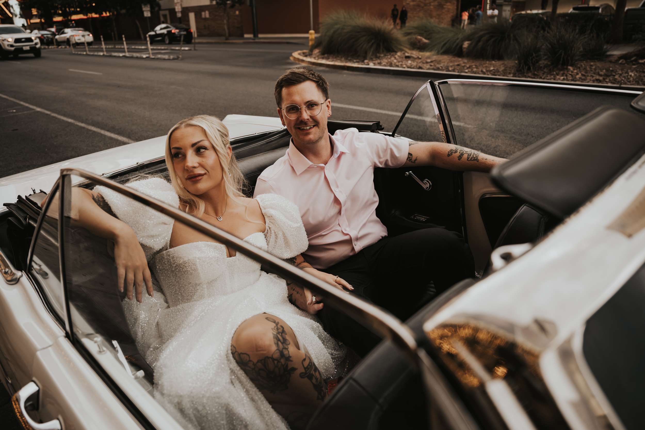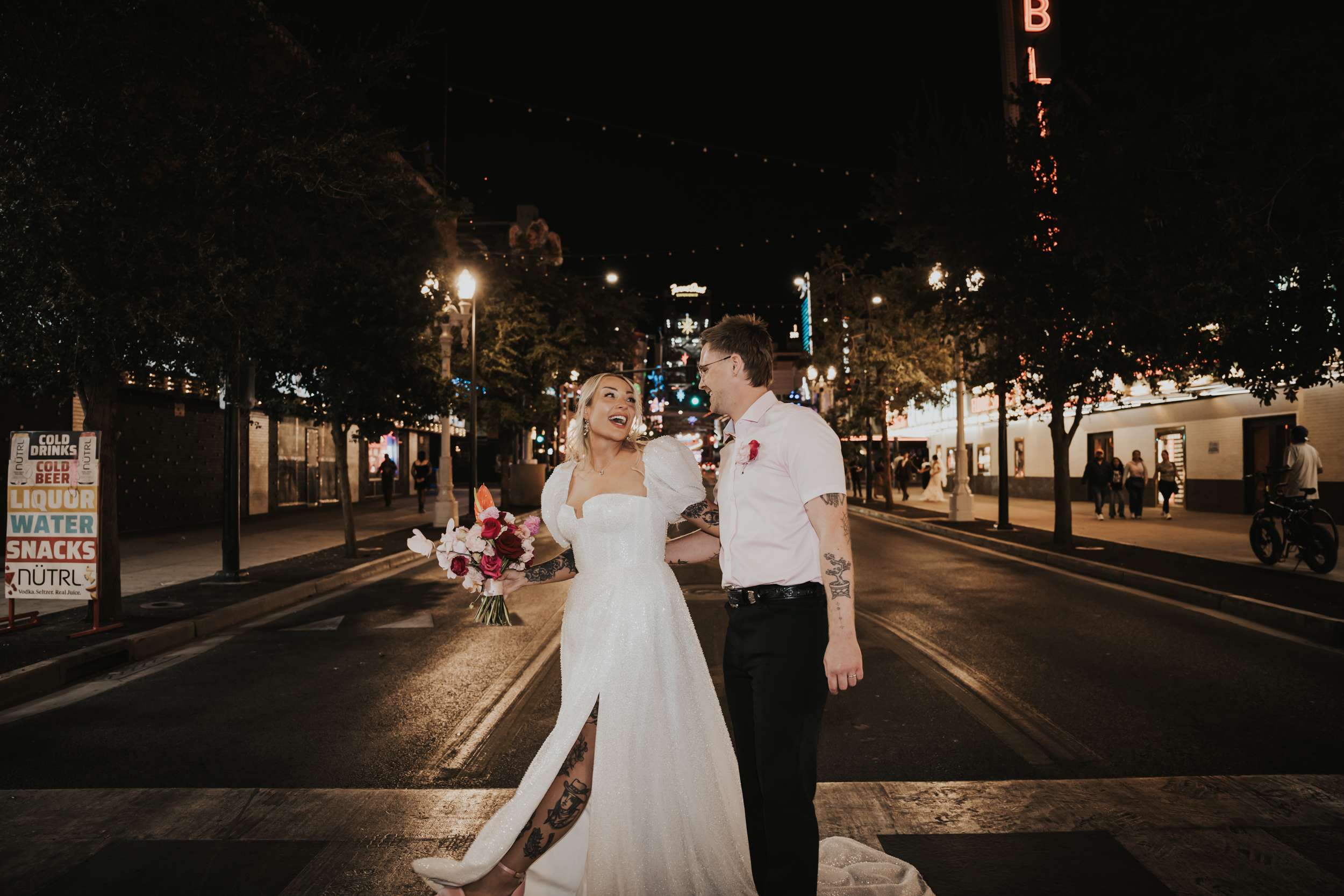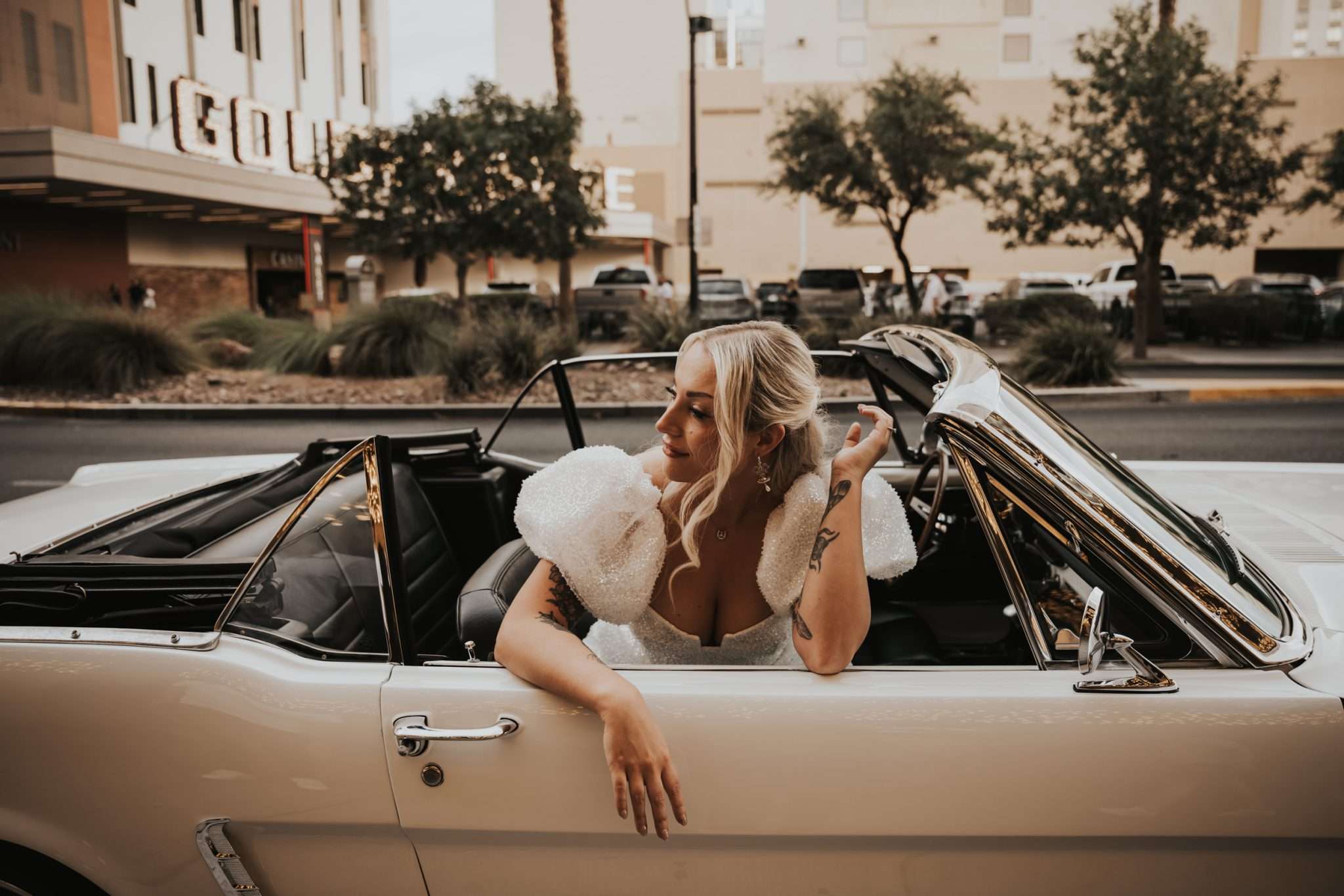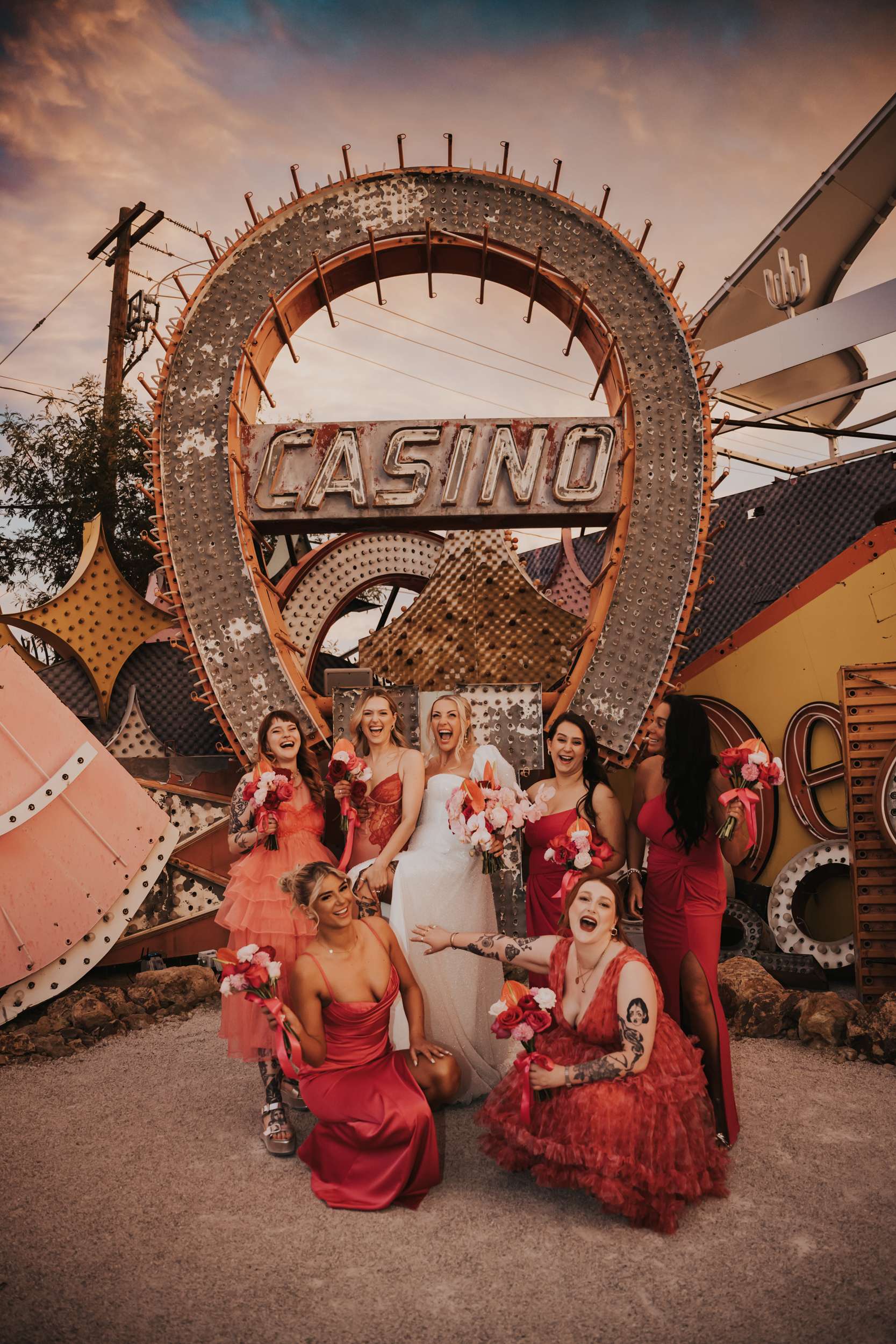 Beth and Elliott, who travelled to Vegas from the UK for their wedding, described their day as “Fun, flirty, and so Vegas!” They brought some close friends and family members with them and treated the whole experience like a holiday. “Honestly, we just know what we like and ran with it.” Beth told us. “We work so hard in our everyday lives we just wanted a big break. A day for us, about us and overflowing with love!”