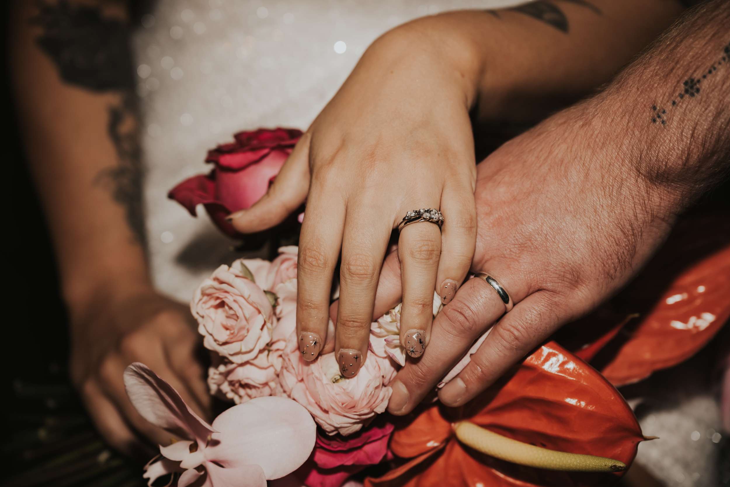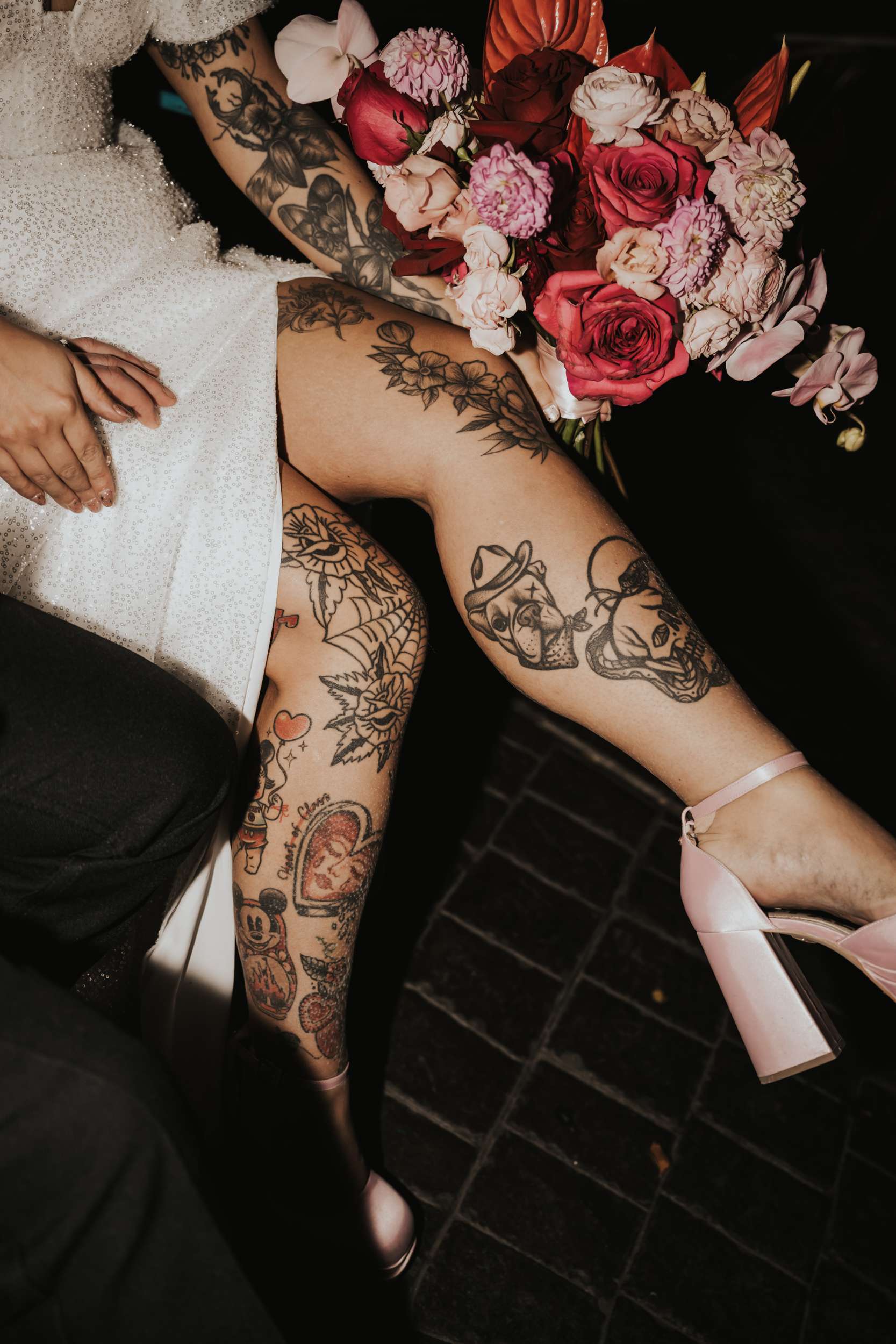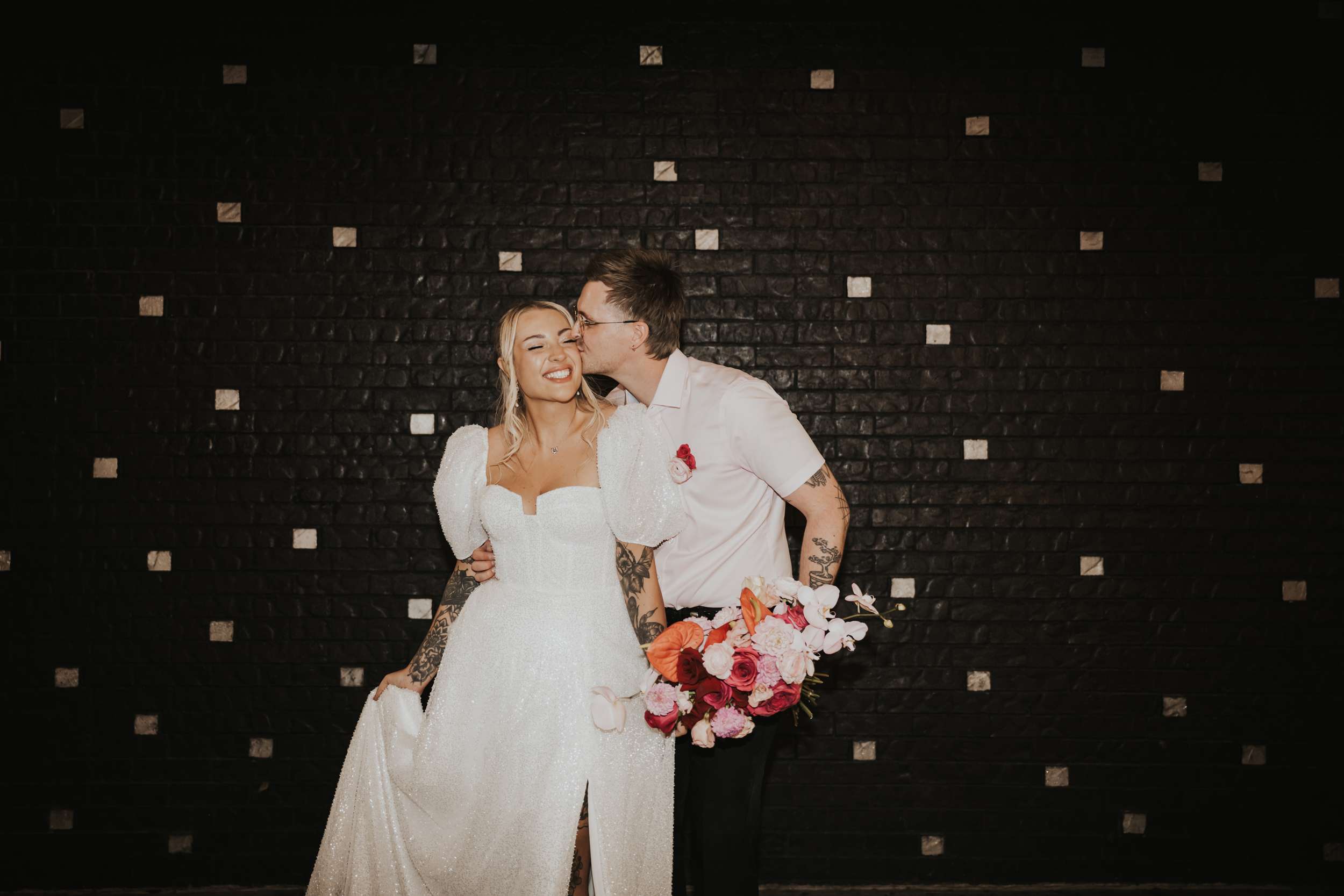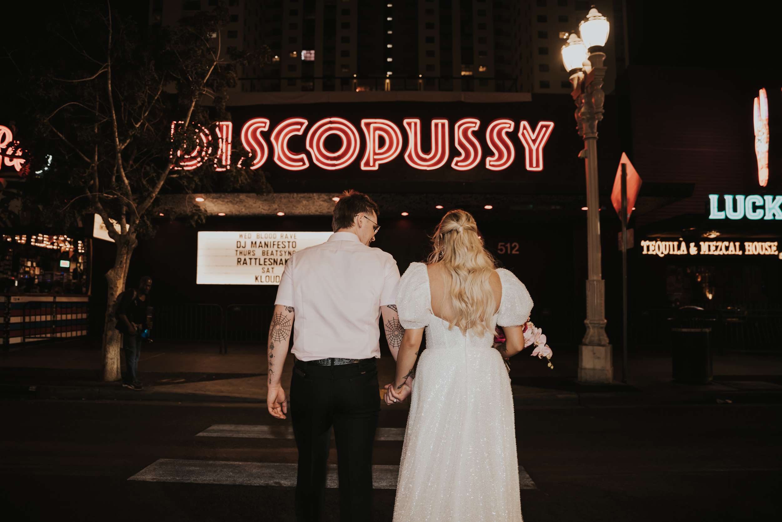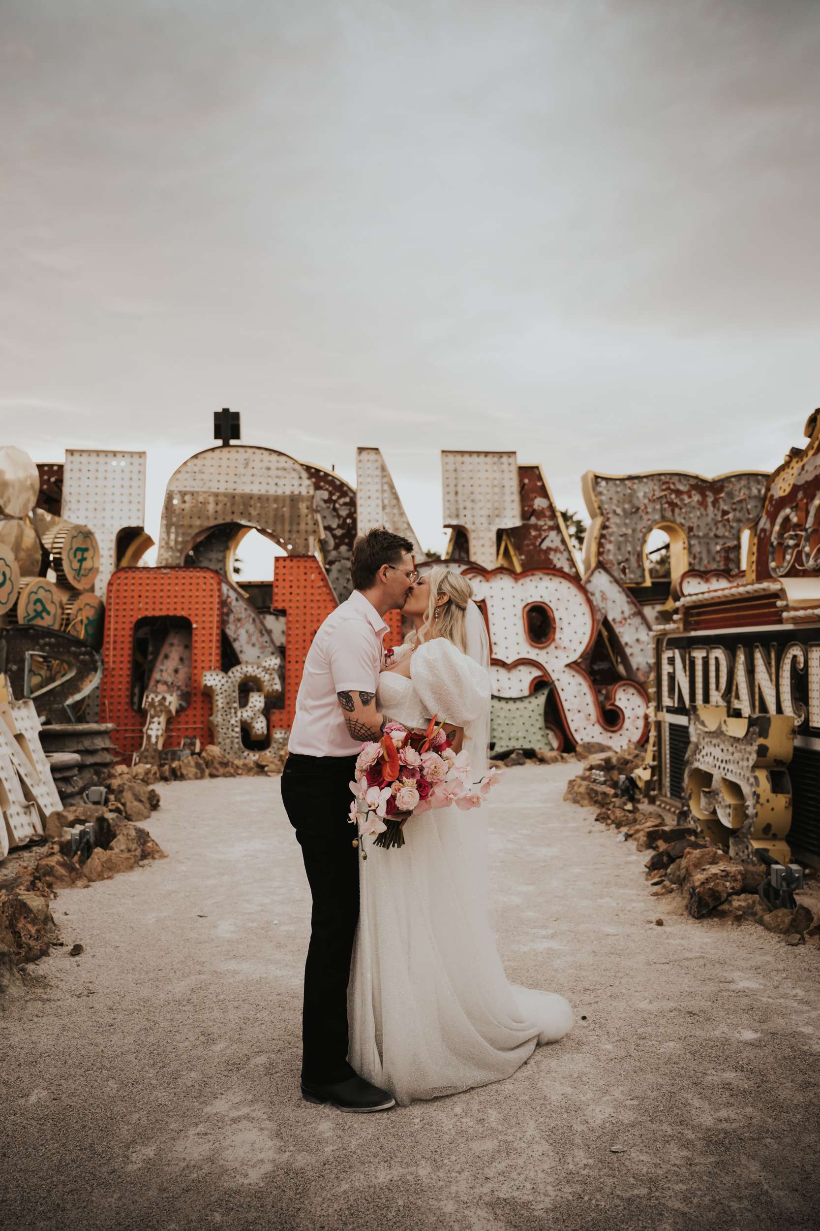 The ceremony, held at the Neon Museum, began with guests being seated to Happily Ever After from the Disney World Magic Kingdom fireworks show. “We are huge Disney people so that was so lovely to hear and share.” Beth then walked down the aisle to Jamie T’s Bonnie & Clyde, a song that supported her through a life changing surgery in the early days of their relationship.