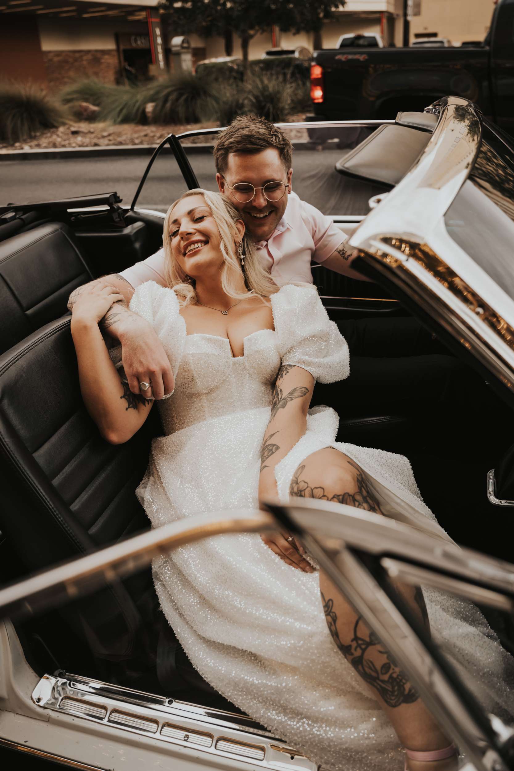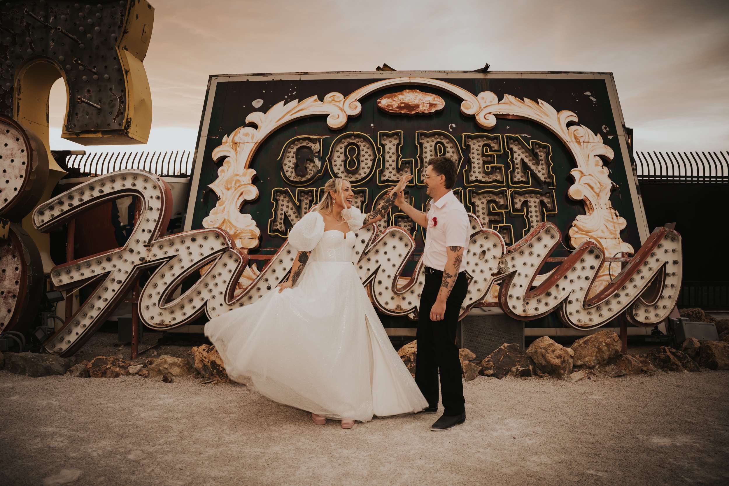 Planning from overseas could have felt daunting but they worked with Rock N Romance Elopements who made the whole process so easy and stress-free. “Getting married in Vegas is easier than you think!” she continued. “This is maybe because we and kept things small but also the amazing team at Rock N Romance made us feel so reassured even from miles away.” They planned for two years and built real relationships with their suppliers. By the time they arrived in Nevada, it felt like meeting up with friends.