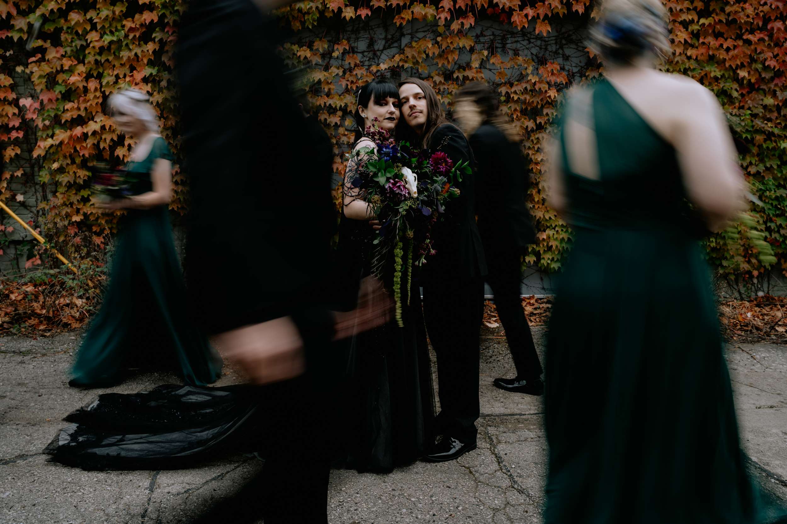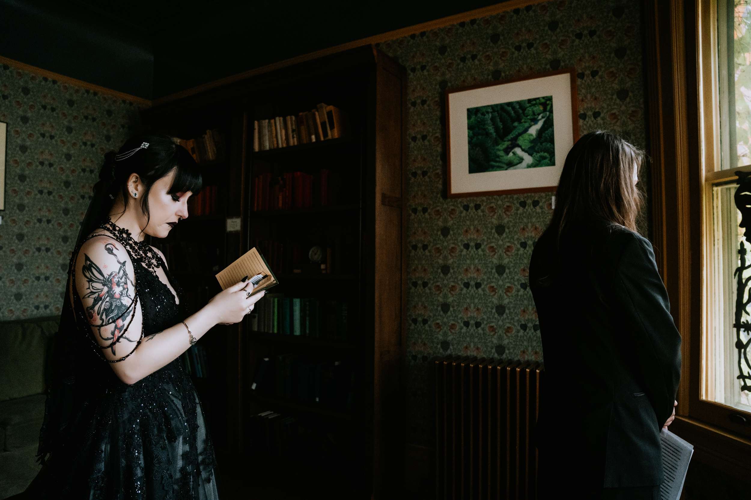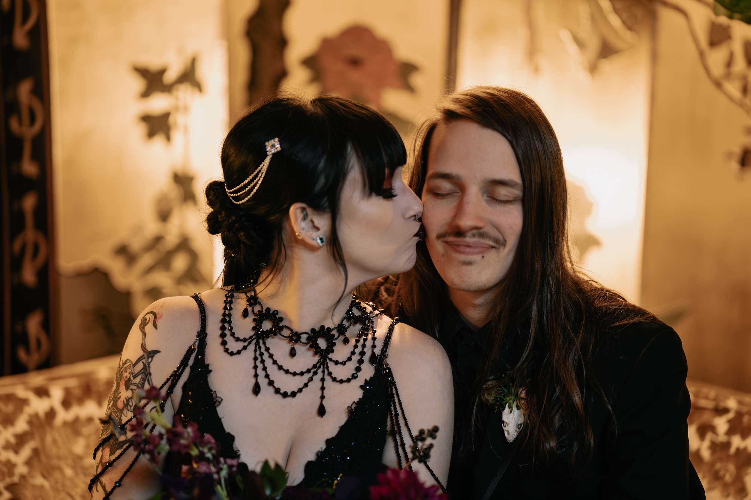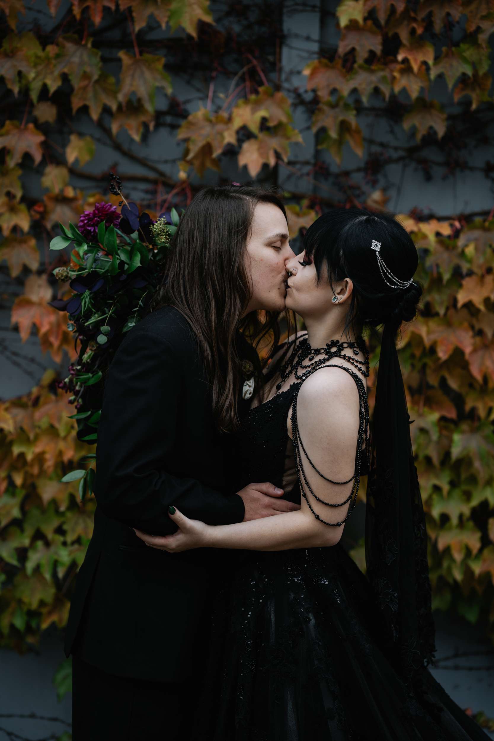 “The hunt for more alternative vendors and things we actually liked was quite tedious but well worth it”, admitted Sam. “It was hard to find vendors in my area that either cater to or have portfolios that exhibit ‘alternative’ work. We were so happy with Alisa Grieve Photography, Memory Poets, who did our video and B-Style Floral in particular. They were all affordable, kind, great to work with and had quick response times to our emails!”
