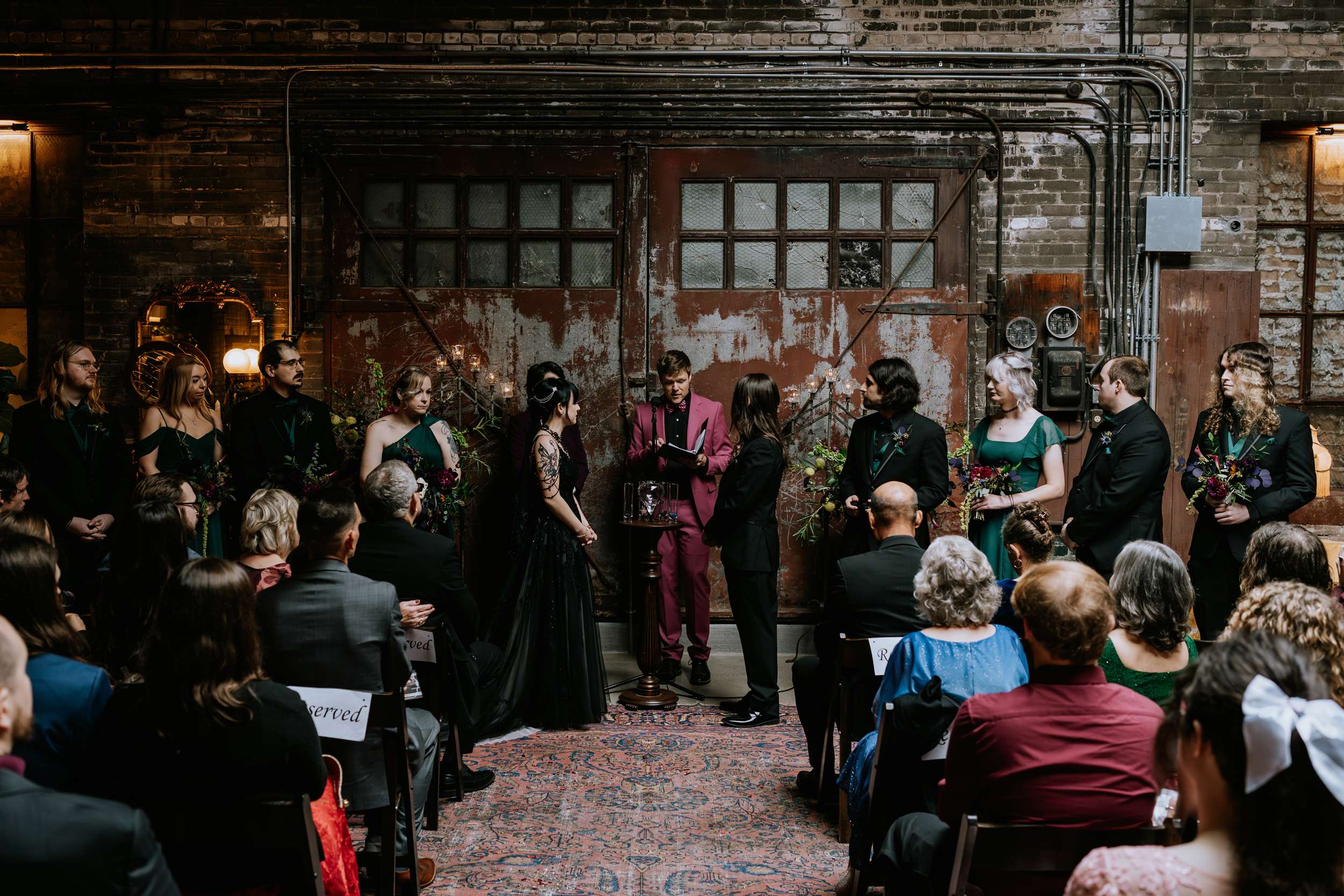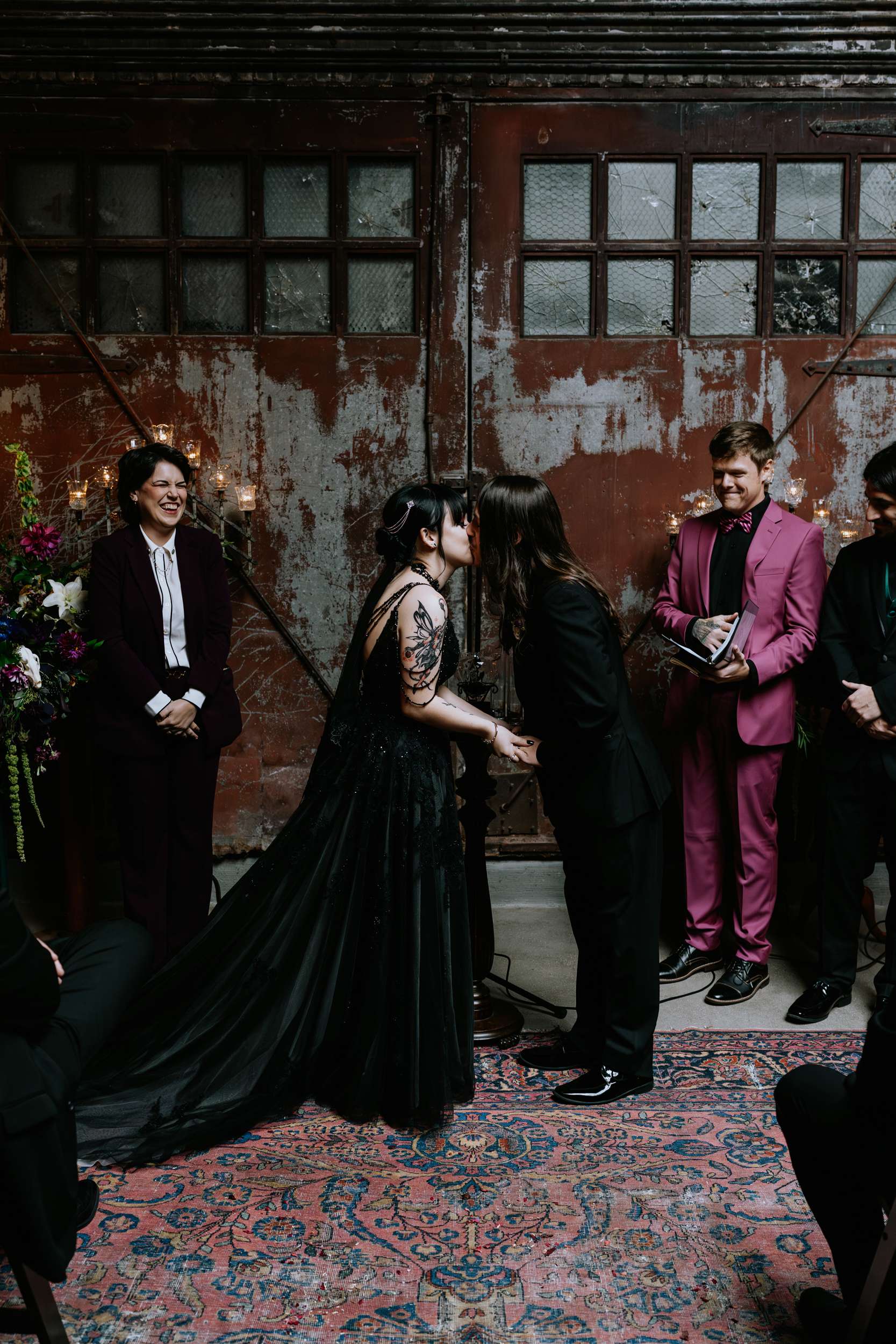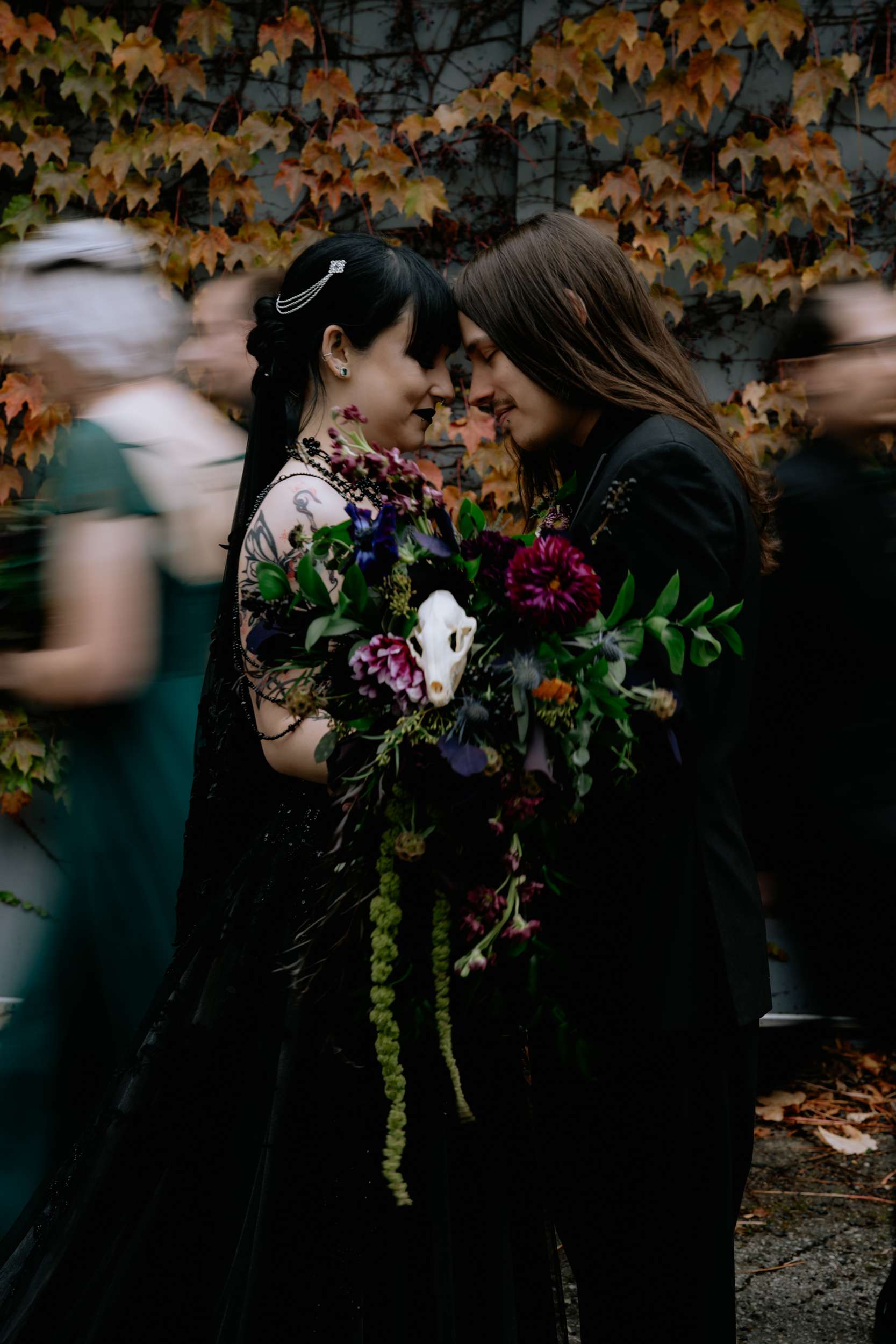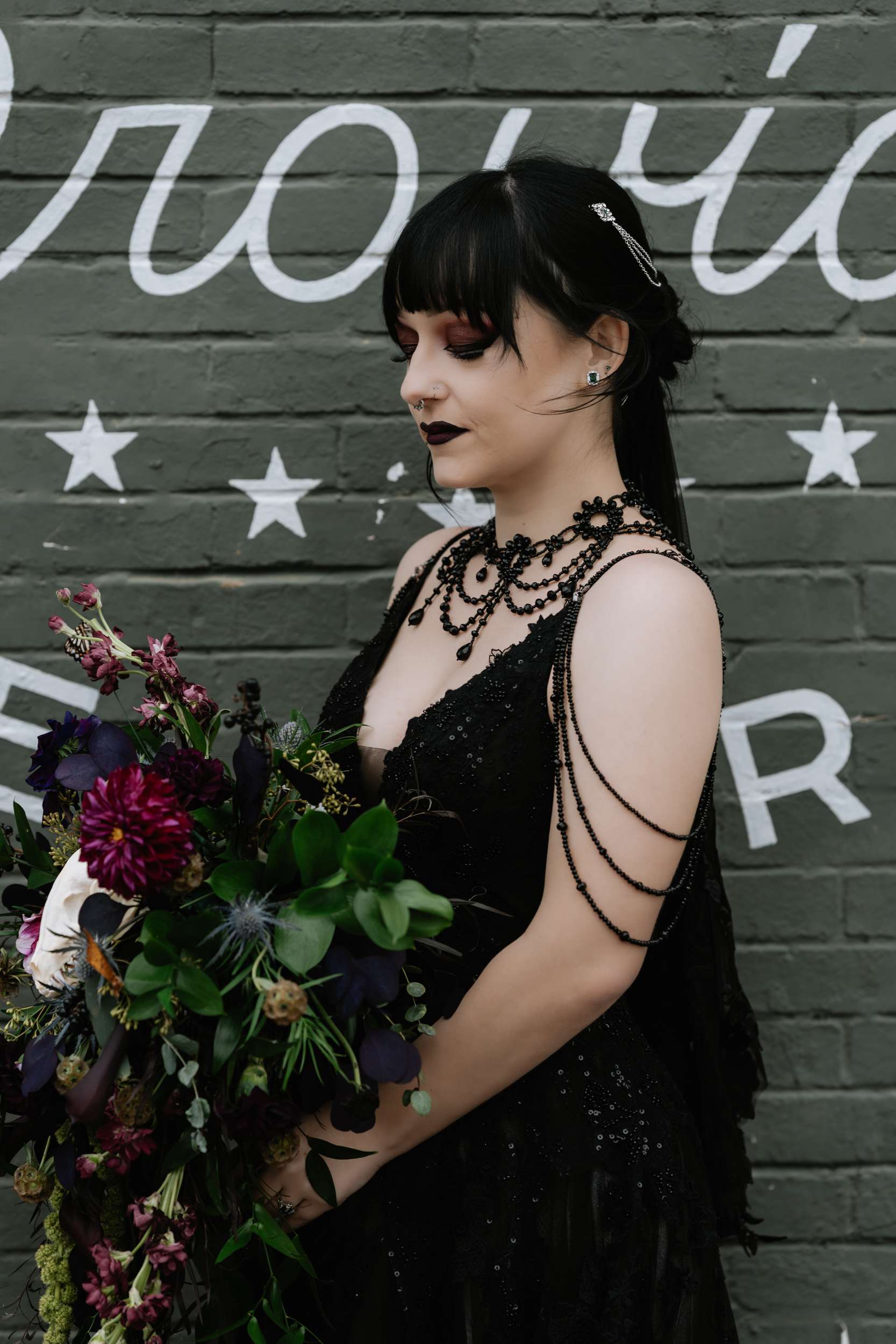 “The hunt for more alternative vendors and things we actually liked was quite tedious but well worth it”, admitted Sam. “It was hard to find vendors in my area that either cater to or have portfolios that exhibit ‘alternative’ work. We were so happy with Alisa Grieve Photography, Memory Poets, who did our video and B-Style Floral in particular. They were all affordable, kind, great to work with and had quick response times to our emails!”