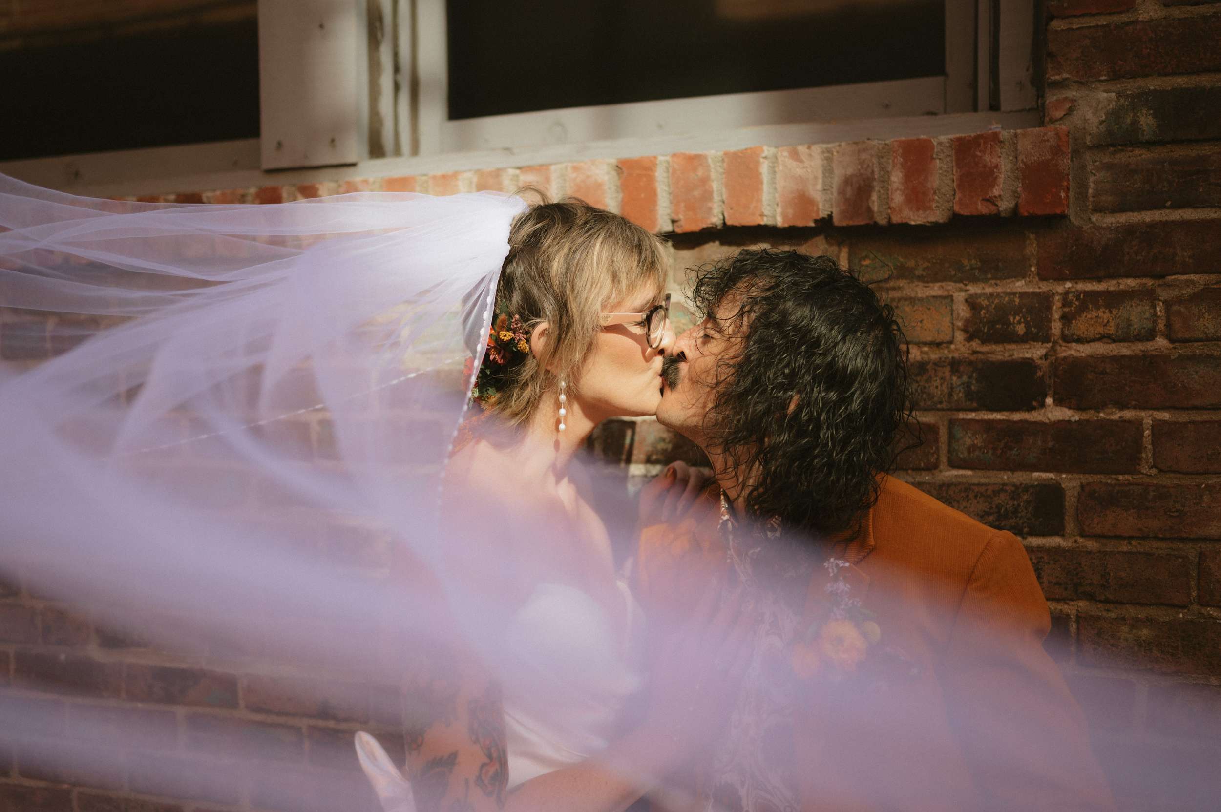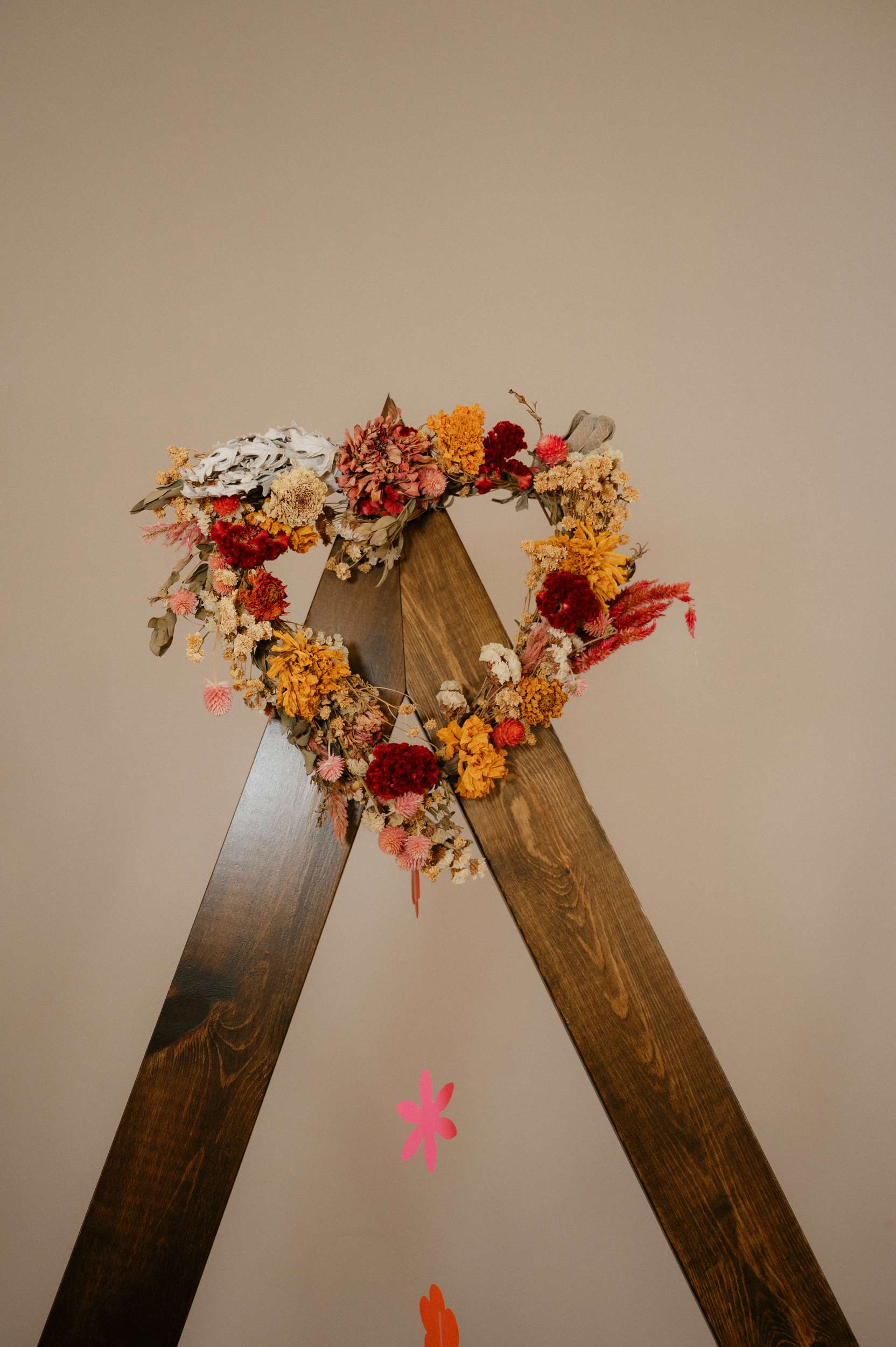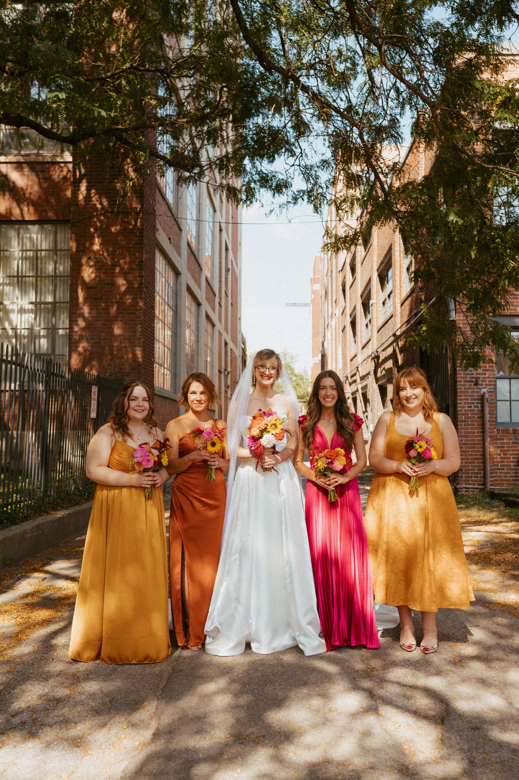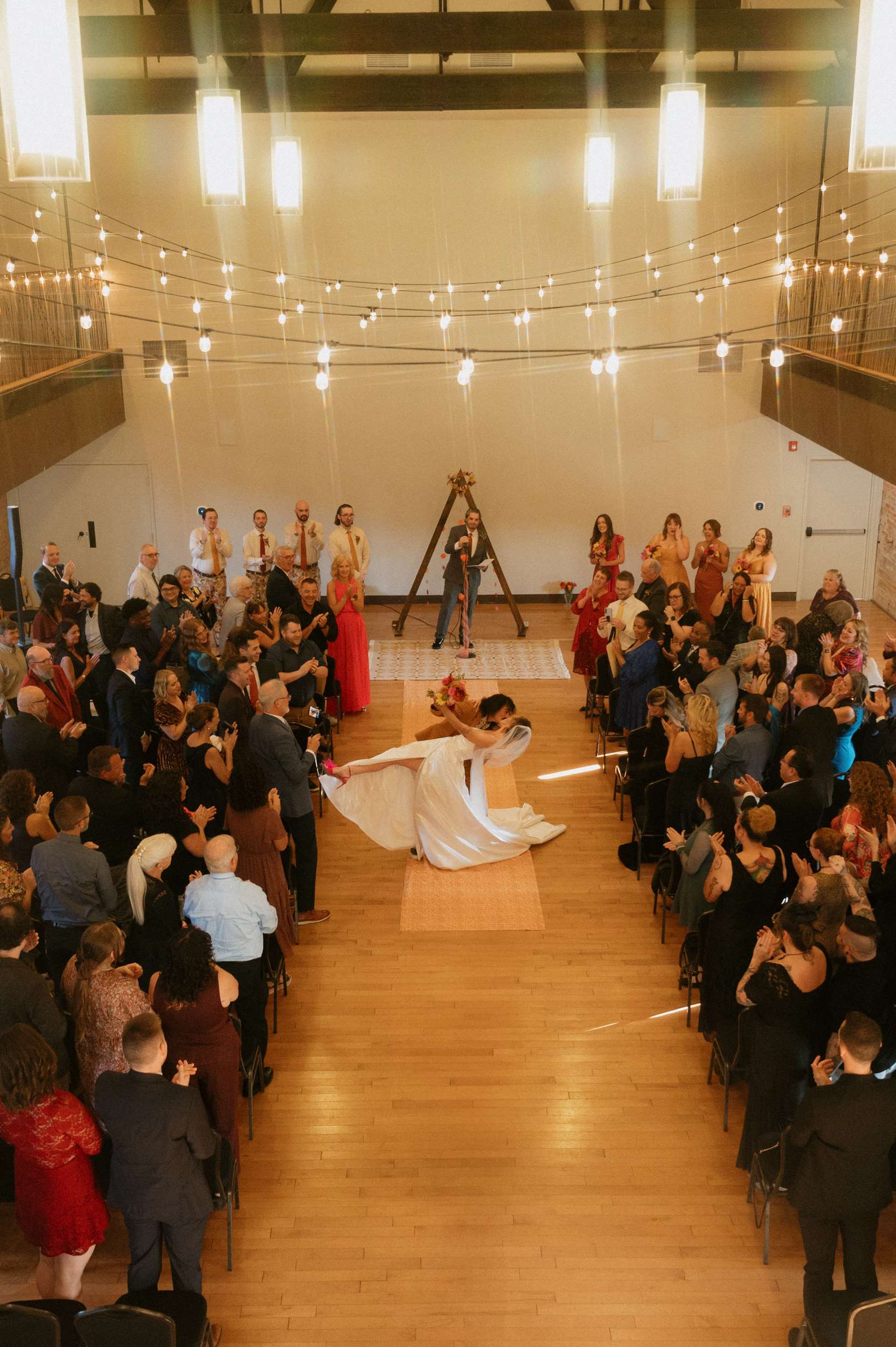 Ella and Brian pulled loosely from 70s motifs for their Indianapolis wedding, but mostly focused their planning on atmosphere they wanted to create. “Our biggest goal was to curate a vibe – fun, colourful, laid-back, open-hearted, and full of love”, Ella said. “We wanted our friends to become friends with our other friends they didn’t know yet. We wanted it to feel like a PARTY, not a stuffy event that you HAVE to go to. All the people there were people we WANTED to be there, and we wanted them to want to be there, too!!!”