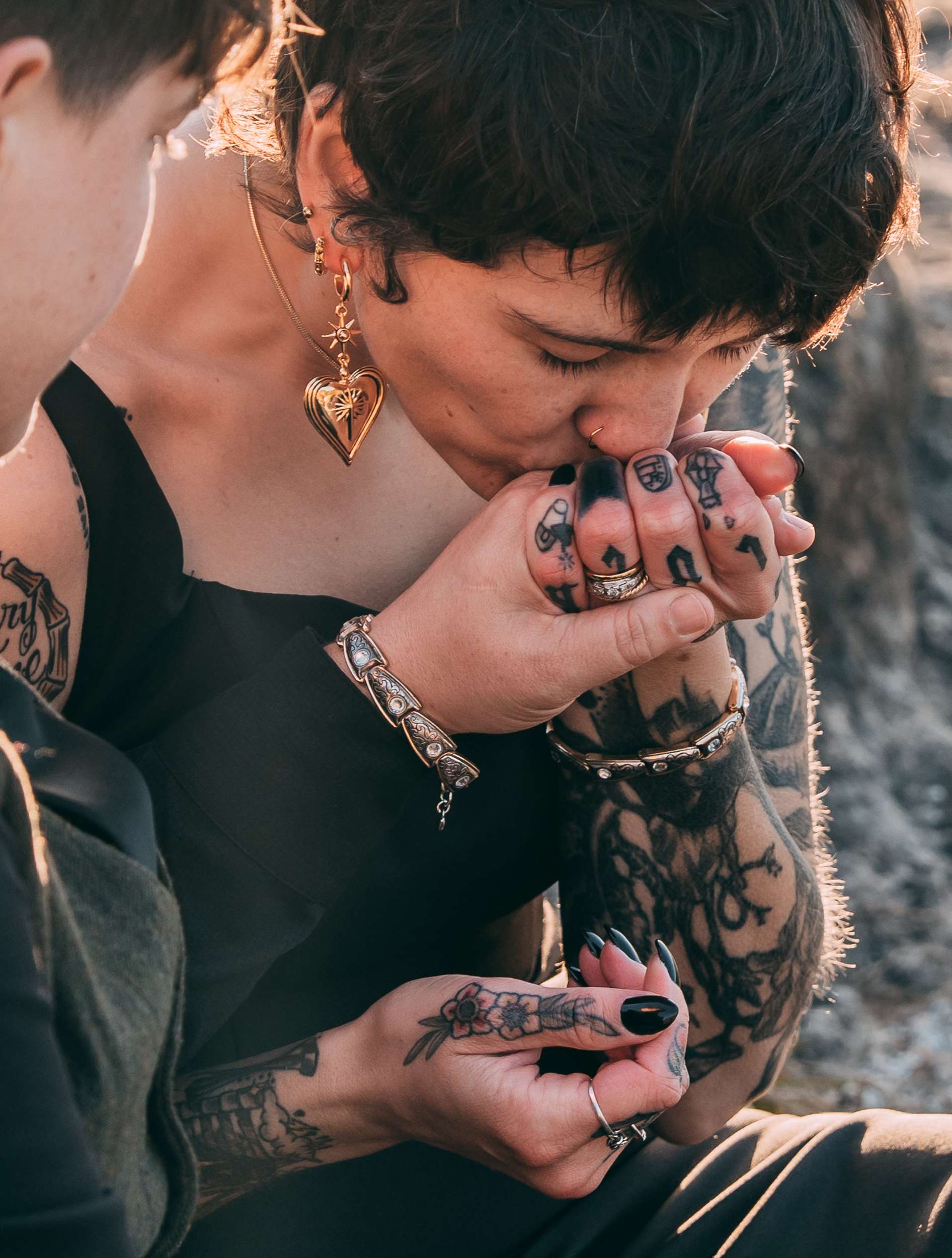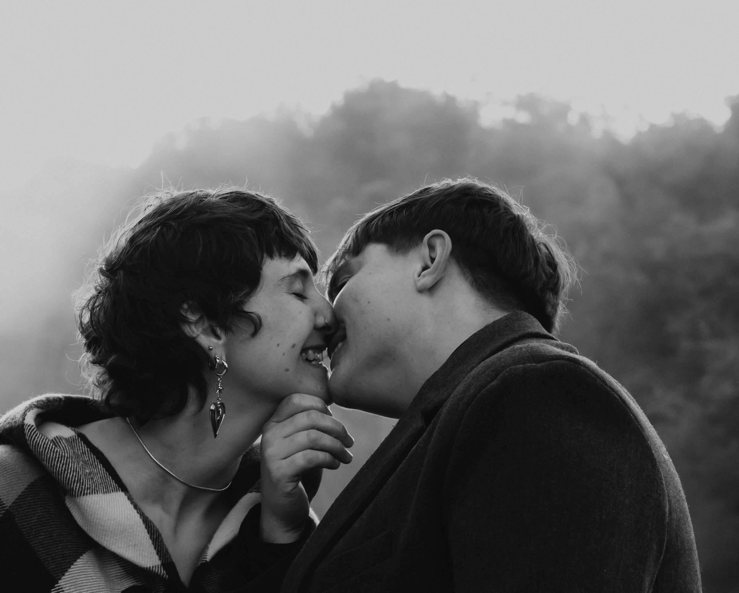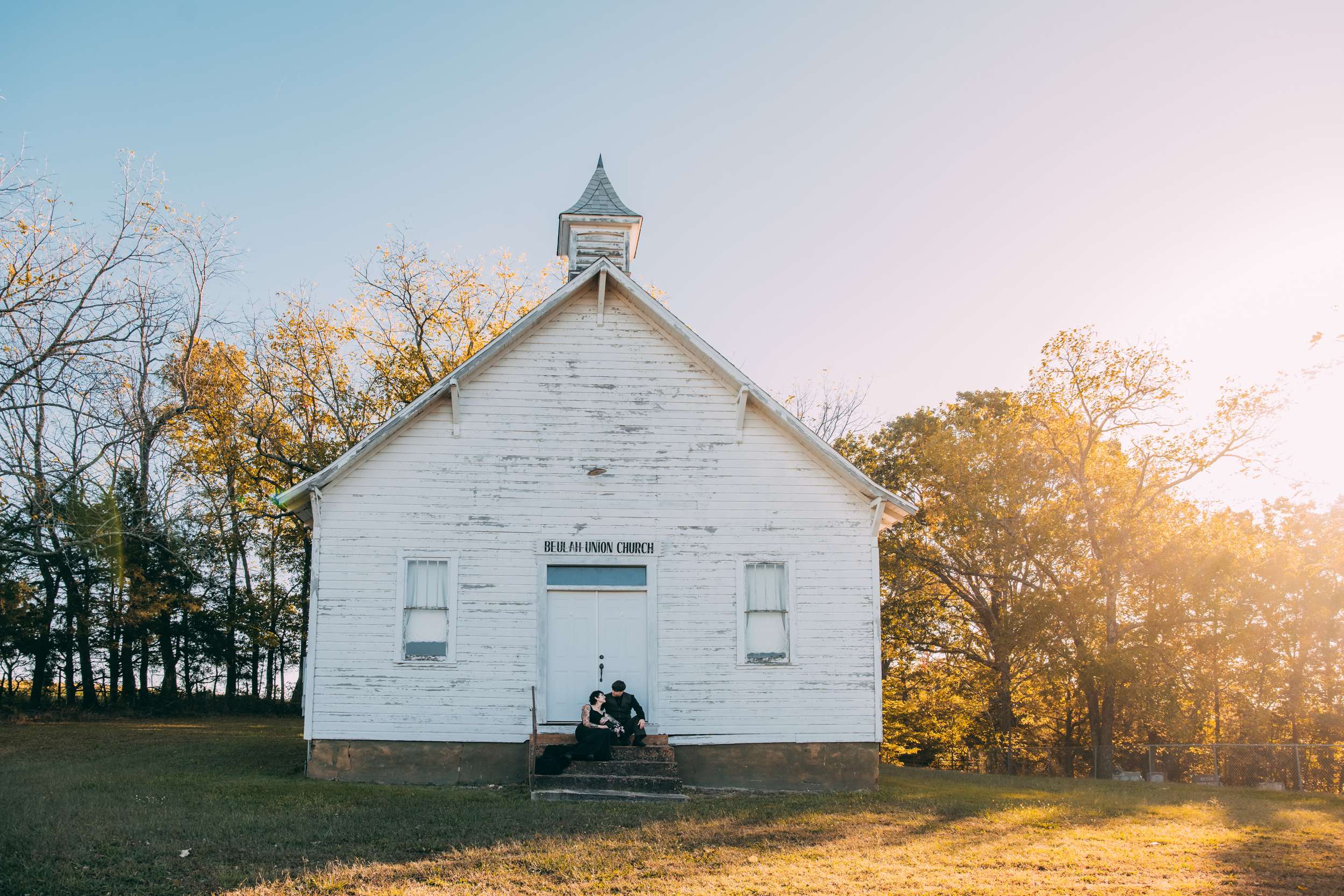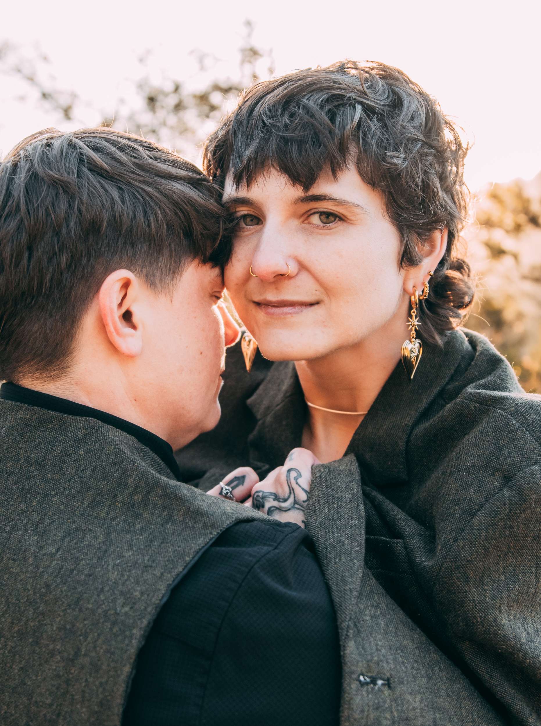April and Brandy married twice, both in ways that made sense for them. In July, under a willow tree in the garden of their friend and photographer Courtney of Stag and Bird, the couple made it official. By autumn, they decided they wanted a second day that marked the marriage in a different way. So, in October they drove four hours south from where they live in Kansas City to Eureka Springs, Arkansas. Waiting for them were Courtney and her assistant Kendal, along with a loose plan to say some vows at sunrise at Lover’s Leap, a scenic overlook just outside the town.