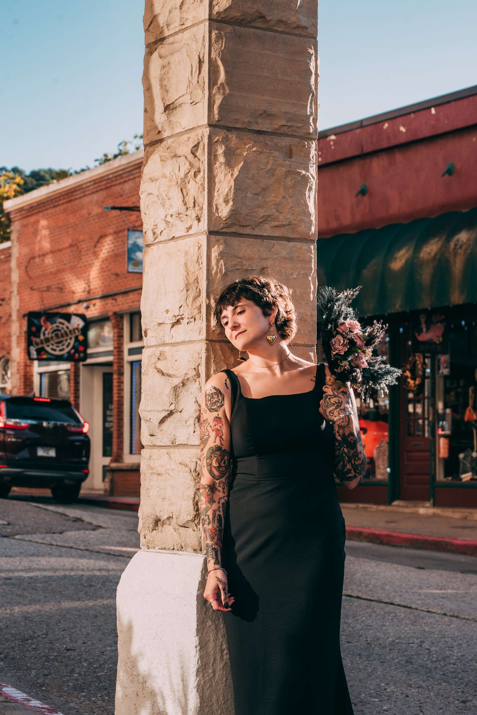 Once the vows were done they wandered around the overlook, smoked, and watched the sun come up. They then headed into Eureka Springs for breakfast and more photos.
