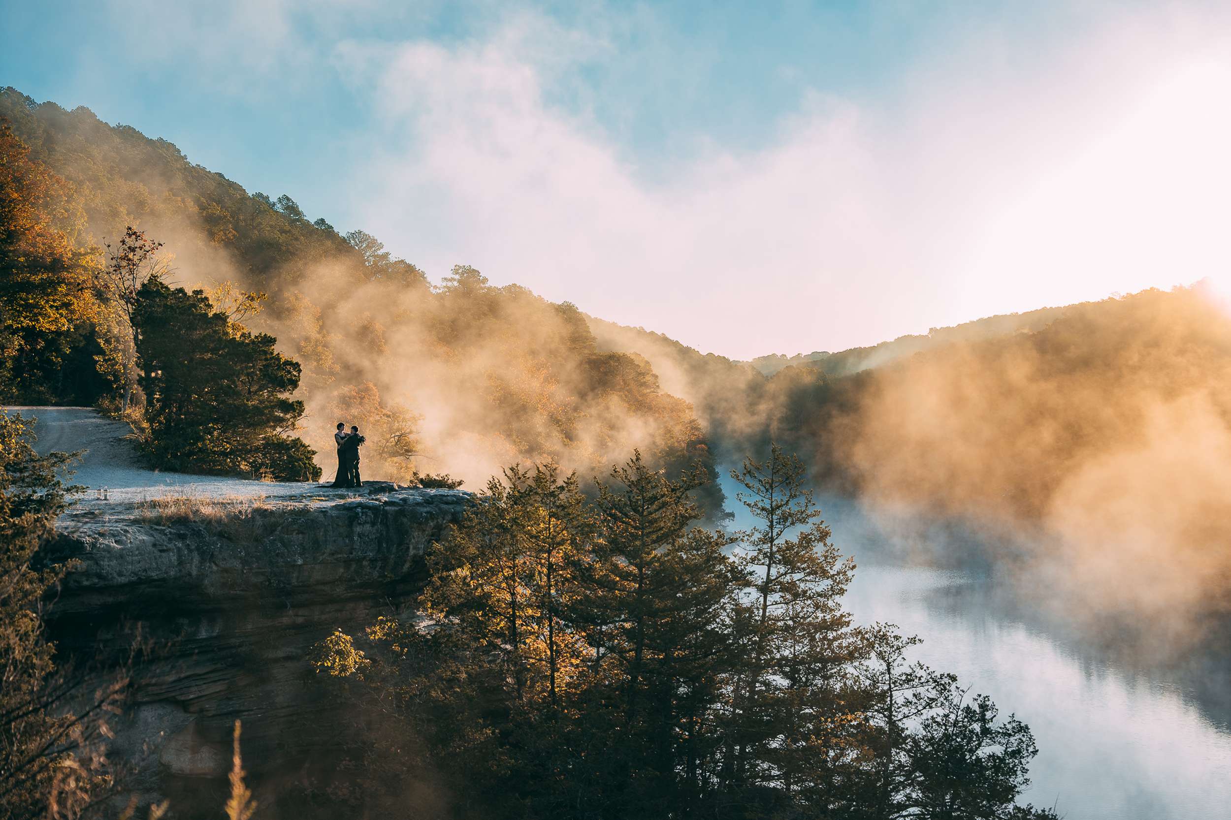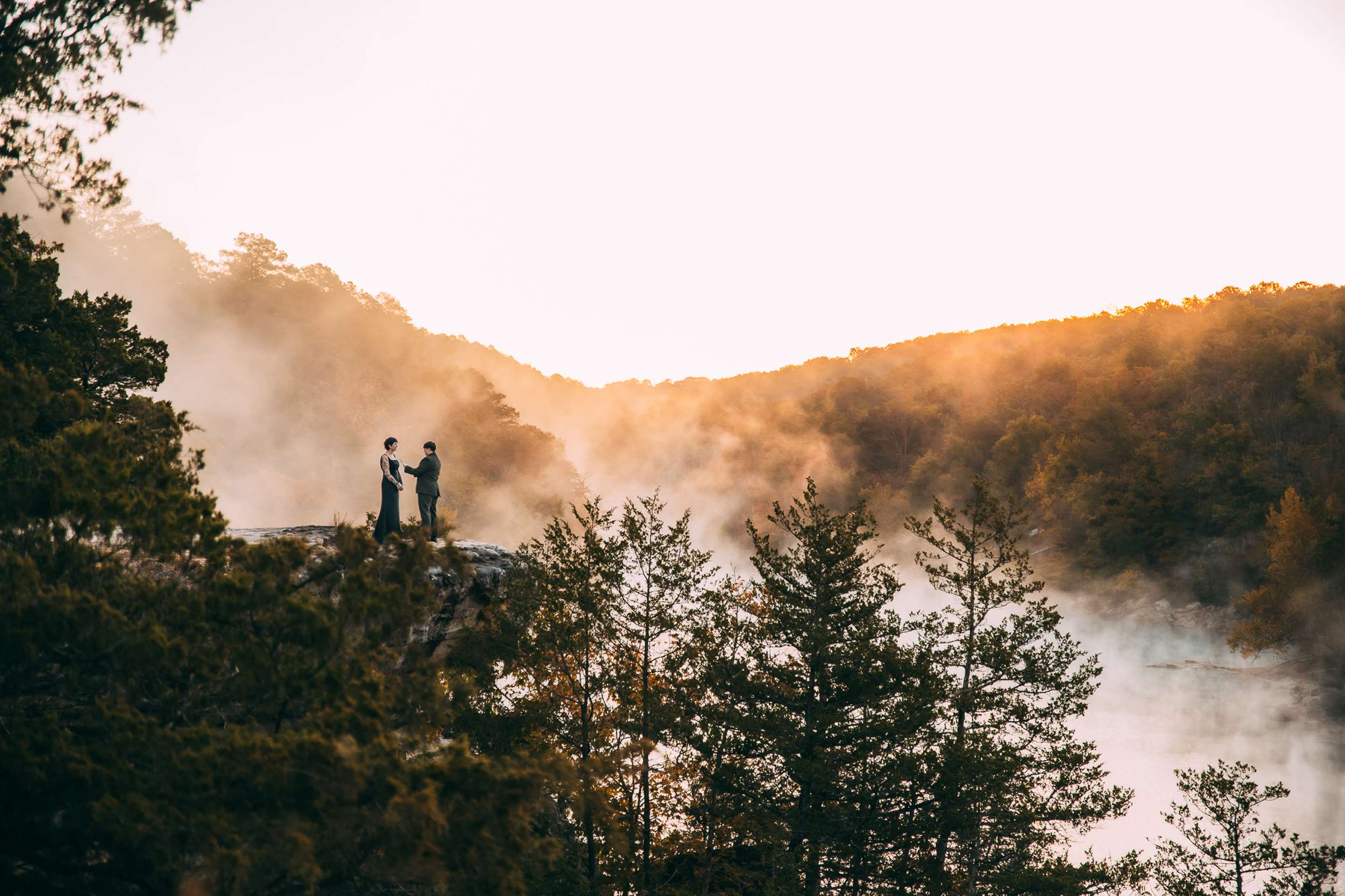 “Walking up to Lover’s Leap and seeing the sun just rising with the mist hanging in the air was breathtaking,” Brandy said. “Courtney timed it so perfectly with the sunrise, but that mist was a magical surprise for all of us.”