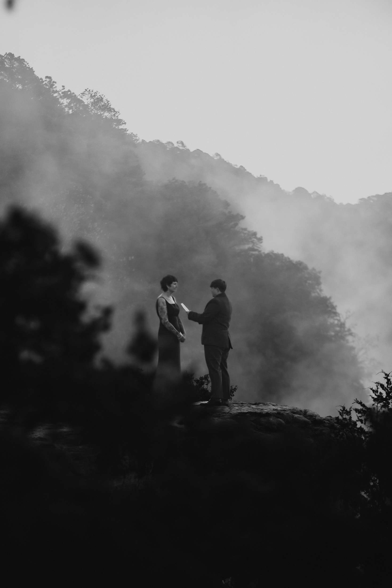 The morning started slowly at their Airbnb where they got ready together. Then, the couple walked to the overlook and took their time as Courtney snapped photos from a distance. As they had already signed the paperwork months earlier, there was nothing they ‘had’ to do. Instead of exchanging traditional wedding bands, they swapped bracelets.