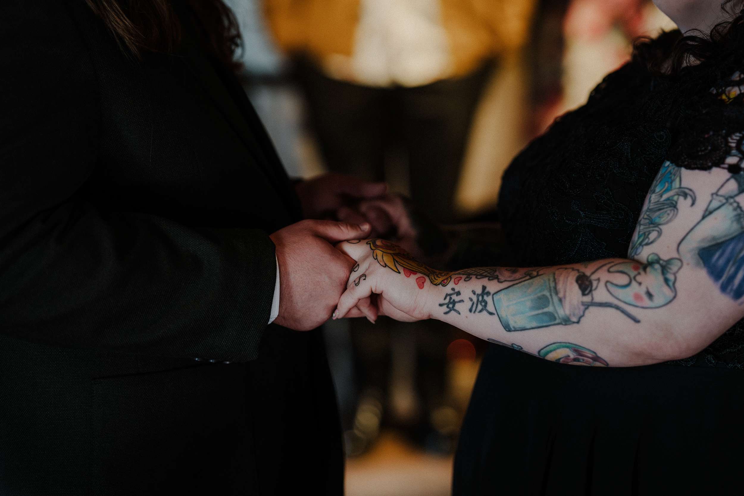 They entered the ceremony to Dandelions (slow + reverb) by Ruth B. Their original plan had been to walk in to I Would by Lower Than Atlantis, but the venue could not find it on Spotify. The change ended up being perfect. Dandelions had been their planned first dance song when a bigger wedding was originally set to happen in Edinburgh.