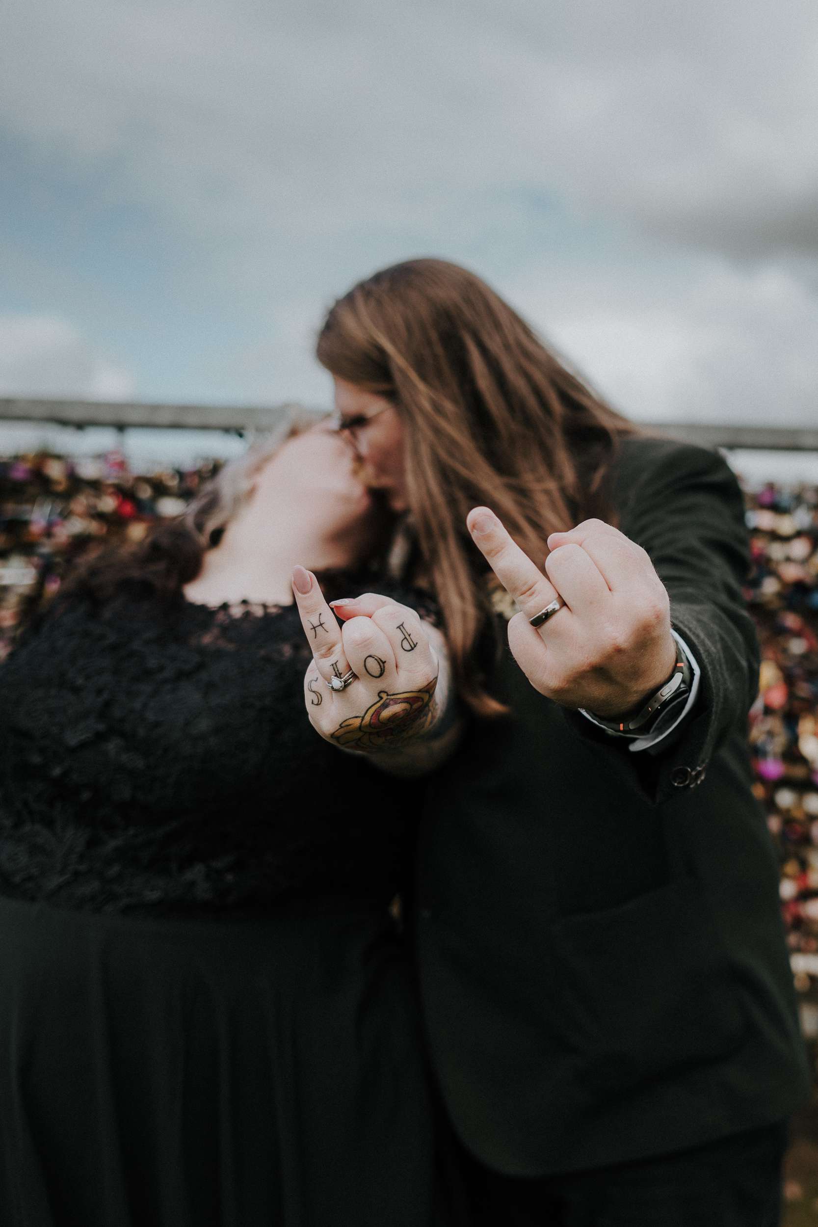 Planning had its challenges, mainly letting go of the original vision. Laura had imagined wearing the Zelda skirt from Lucy Can’t Dance with one of their lace tops for the Edinburgh wedding. “I couldn’t justify it in my head for just a ceremony and a meal”, she said. “Having to change the wedding and bring it forward was a big challenge. But, in the end, we learned that bigger doesn’t always mean better. I don’t like how its normal to get yourself into debt to have ‘the dream wedding’. Most big weddings are all the same anyway.”