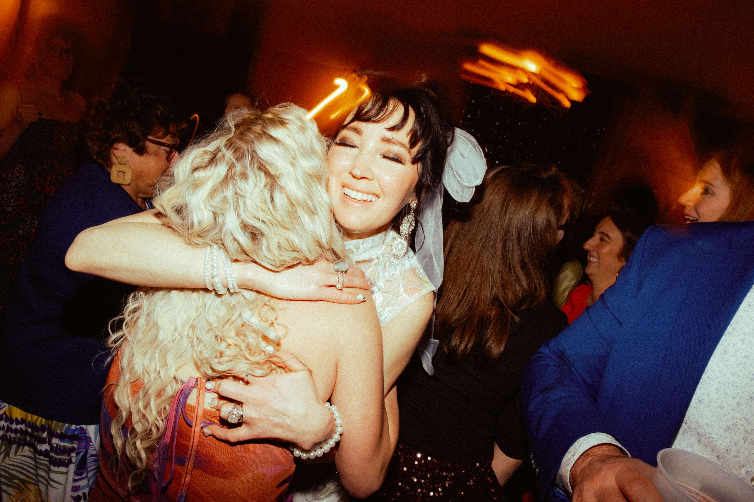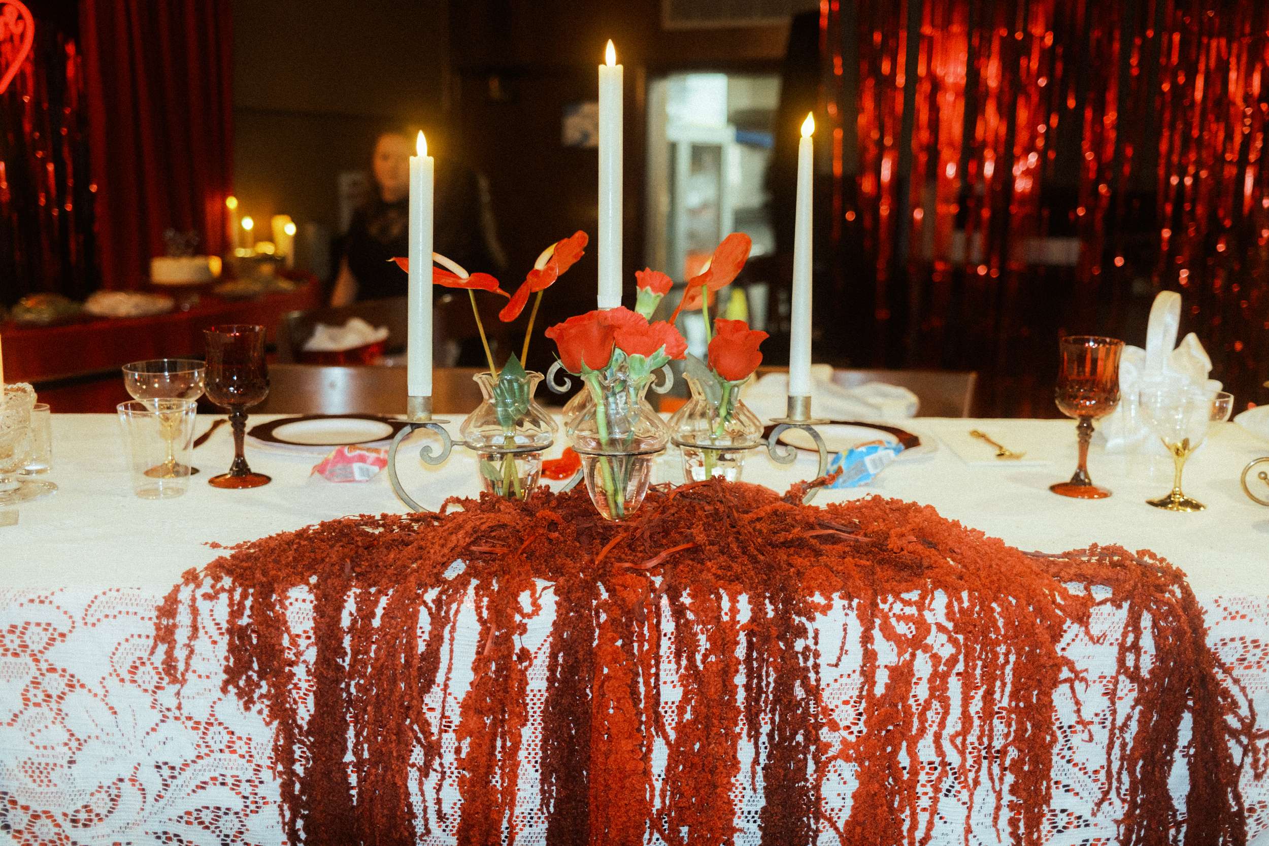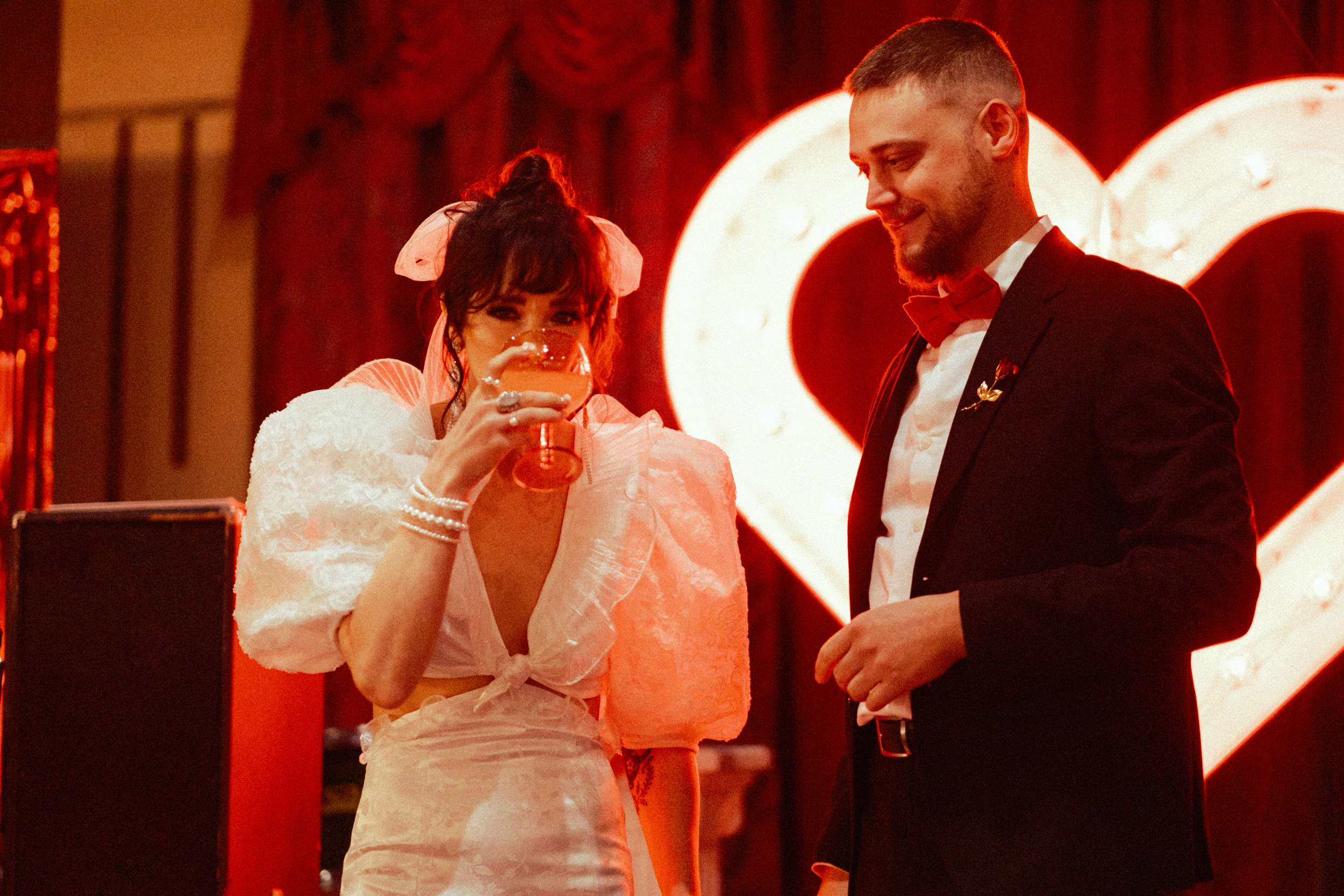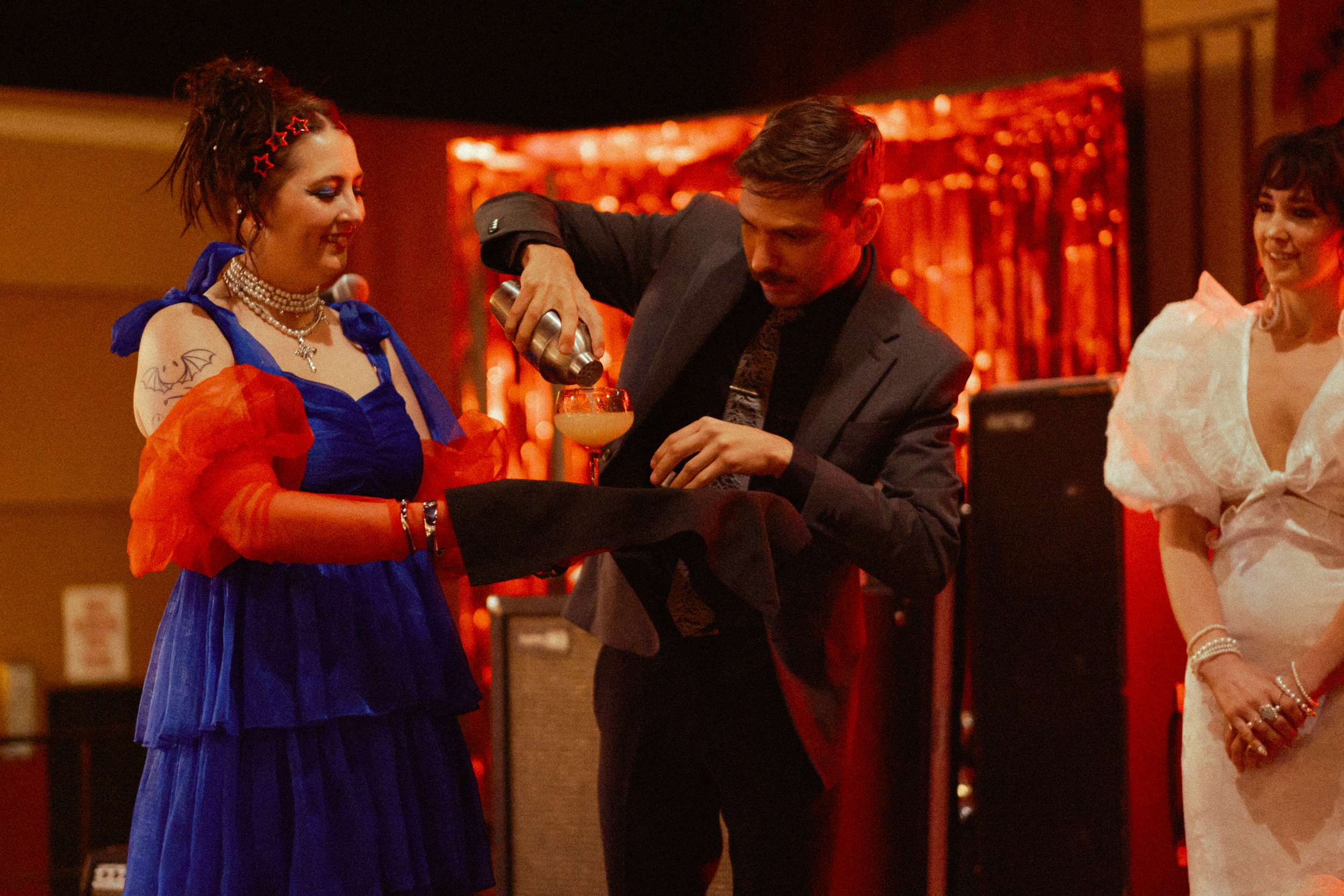 They kept costs down where they could, spending around $13k in total. The venue made a big difference. Not being a traditional wedding venue meant it was really affordable. “Neither of us ever really dreamed about marriage or our dream weddings in the traditional sense, but we deeply love each other and the community we’ve built, so we felt strongly about celebrating that with everyone we love in place that means something to us. The Elks is an incredible organisation, but on top of that, their rental rates are beyond reasonable. Between that and thrifting, Mac Bids, DIY-ing, and not worrying about spa days, hair, make-up, etc. helped us pinch pennies where it mattered.”