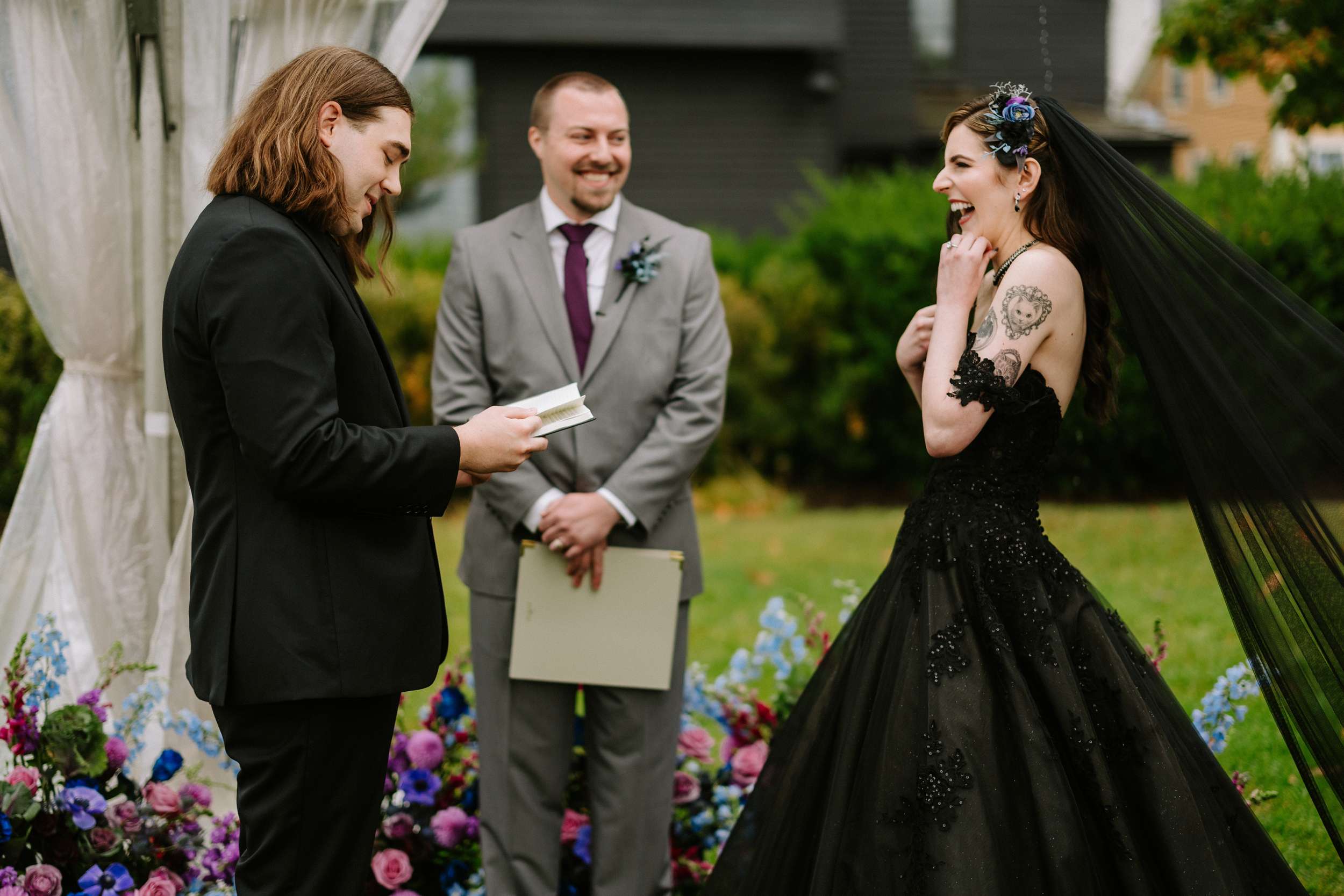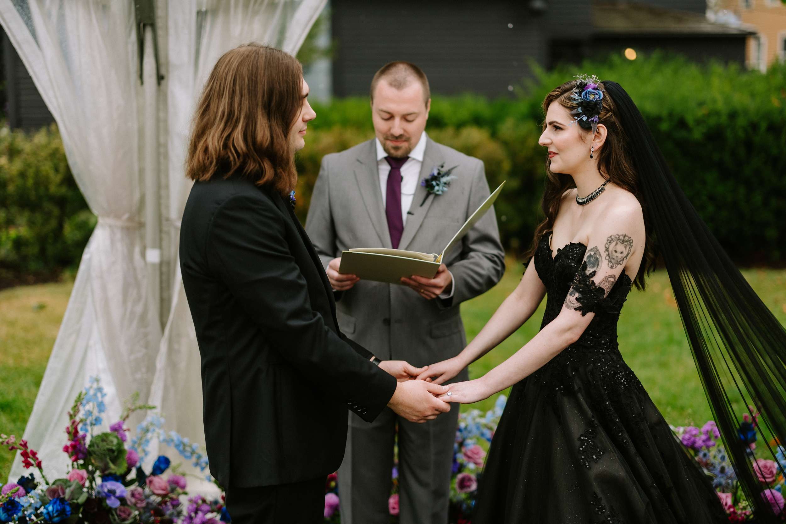 The ceremony opened with the bridal party walking in to a piano version of Welcome to the Black Parade. Casey followed to The Only Exception. They chose not to include religion in the ceremony. Both families are religious, but they are not. They wrote their own vows and Johnathan’s incorporated 25 of their favourite song lyrics which made Casey literally laugh out loud!