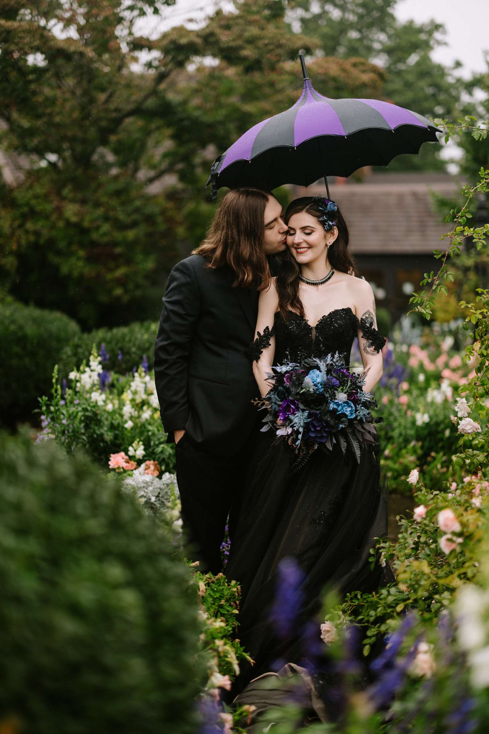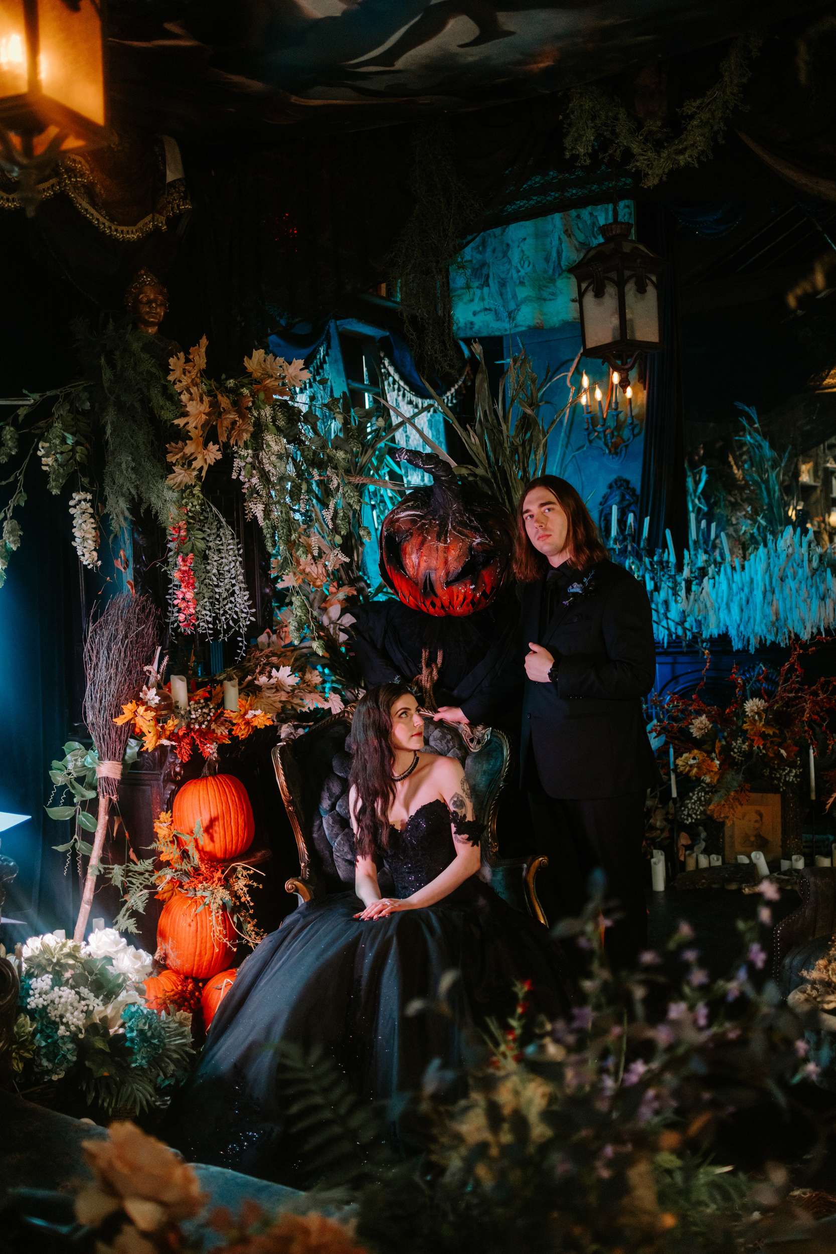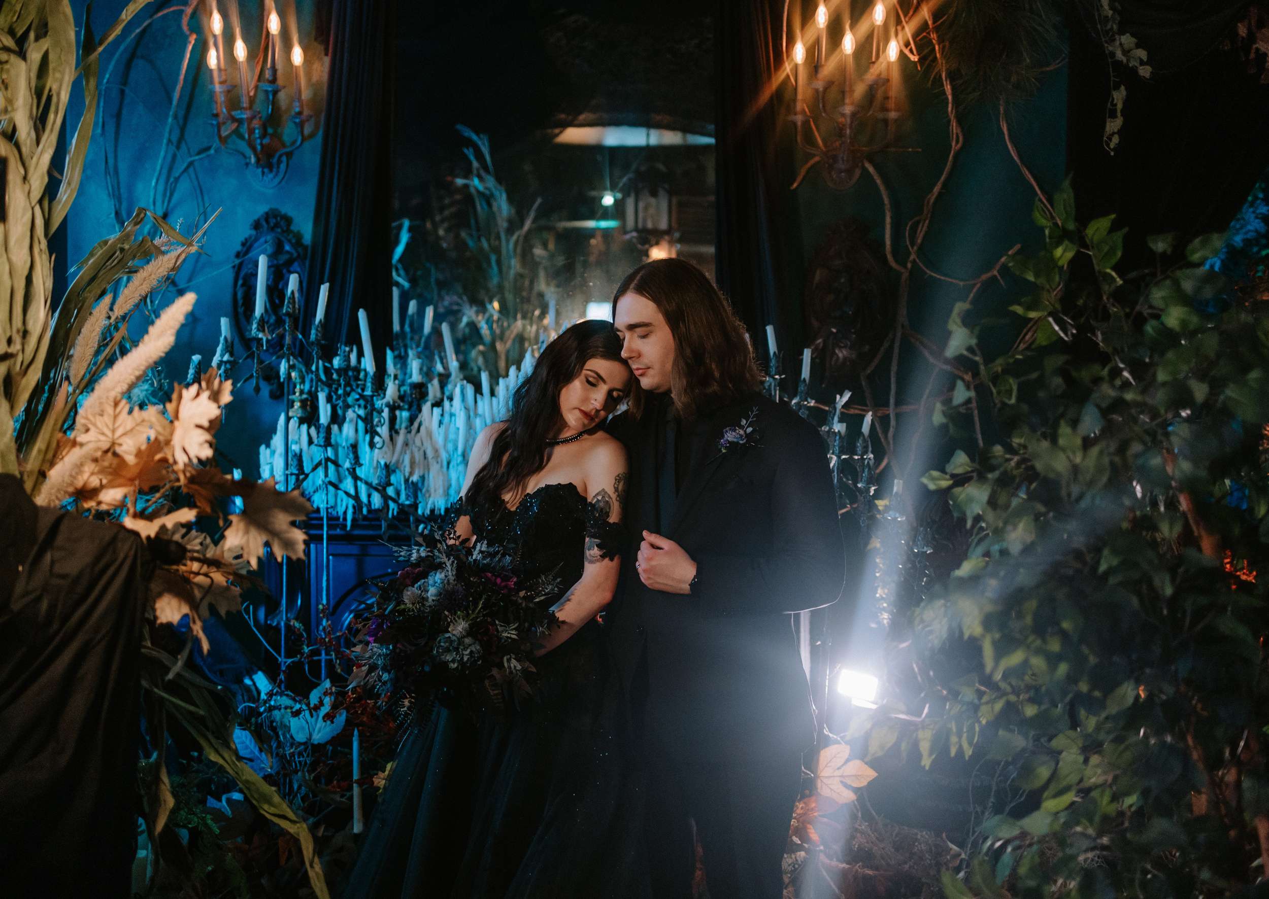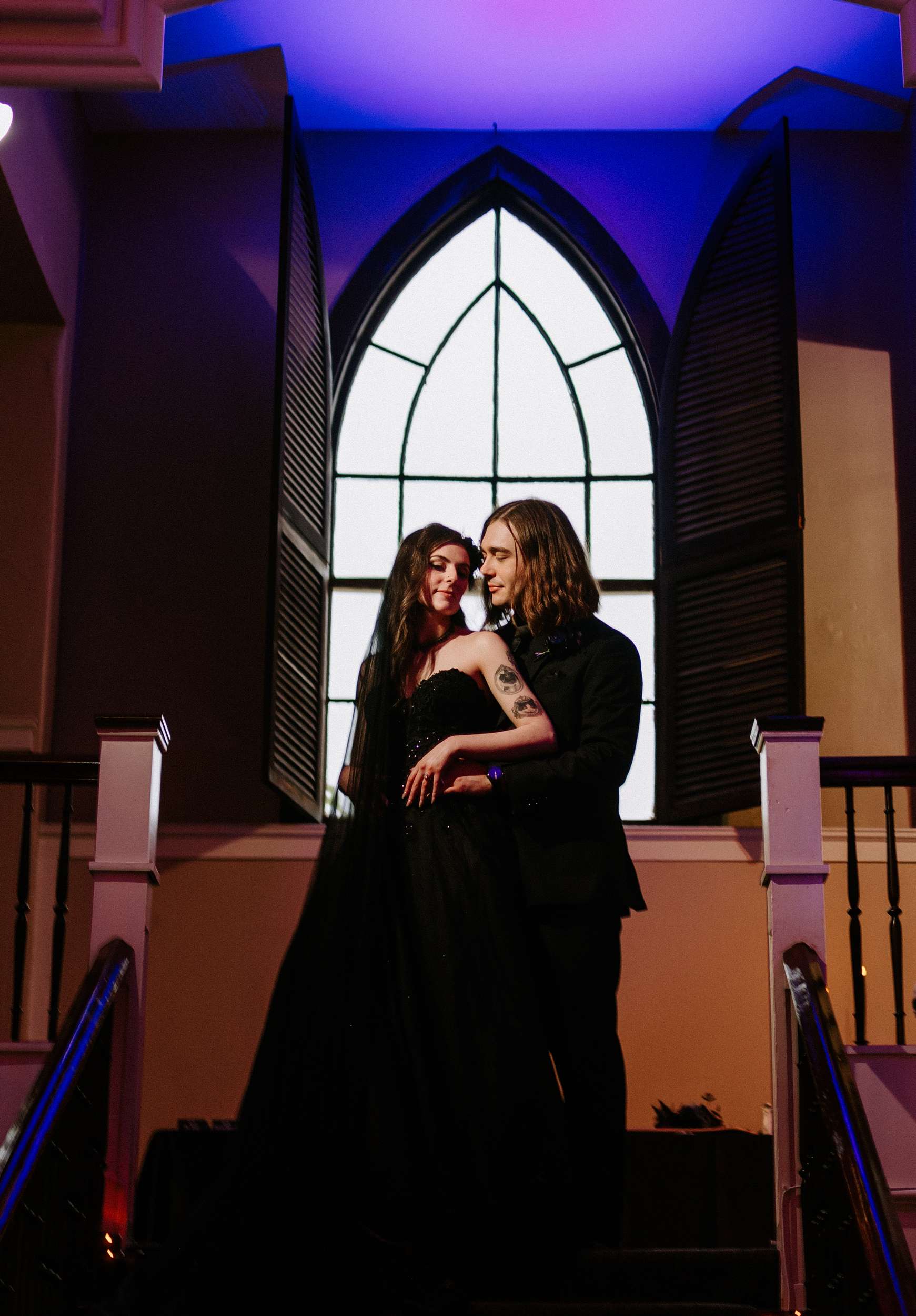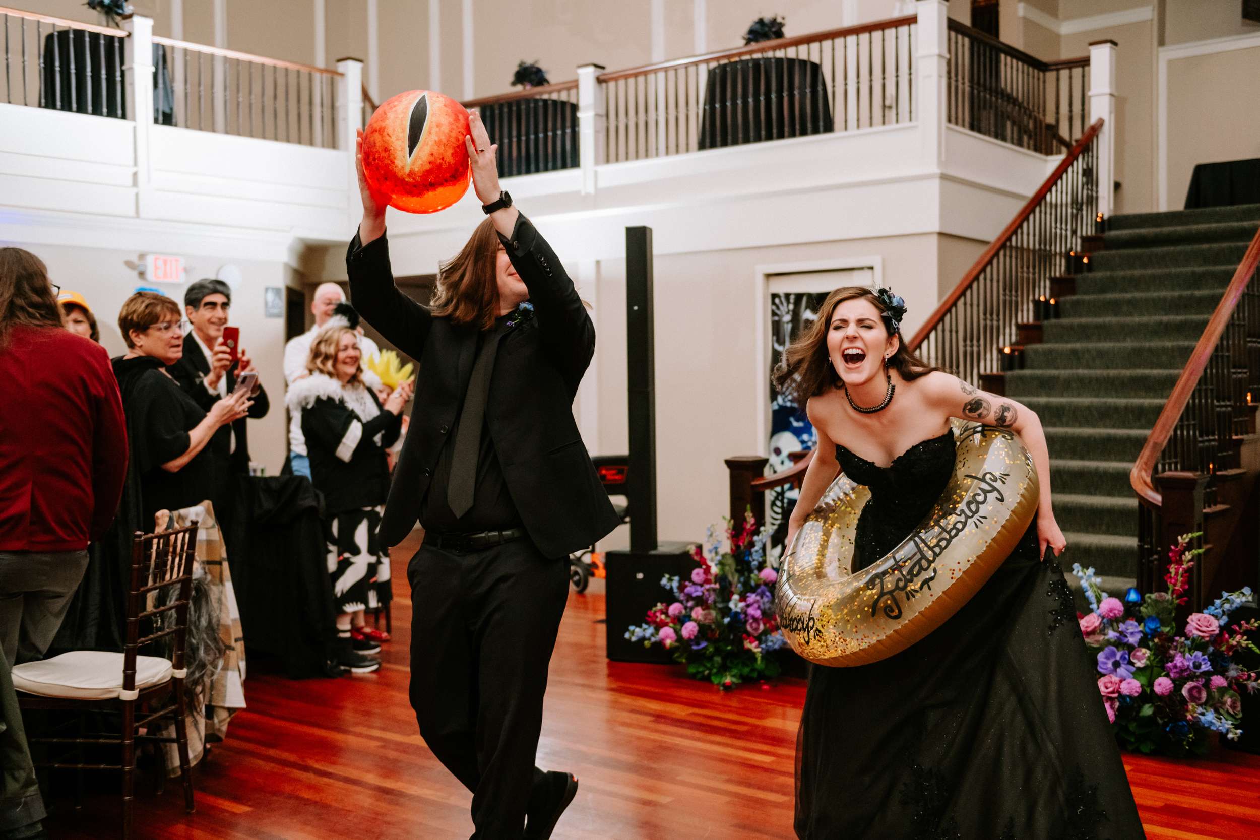 “Our wedding theme was a mixture of moody, eerie, spooky, and dark romance with an alternative music twist”, Casey said. “Being in Salem with The House of the Seven Gables as the ceremony backdrop really helped us lean into our theme. We chose to have our reception at Colonial Hall. It was a costume party because we wanted an element of silliness and lightness that our day to balance everything out. We never take ourselves too seriously and we didn’t want our big day to feel ‘serious’ in that sense either.”
