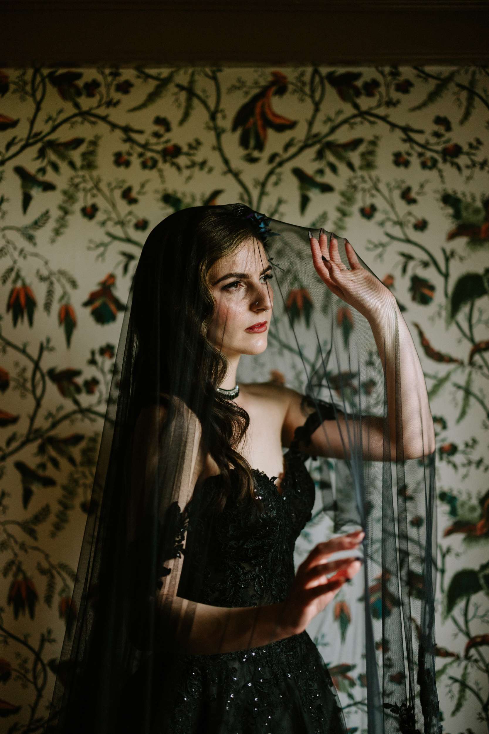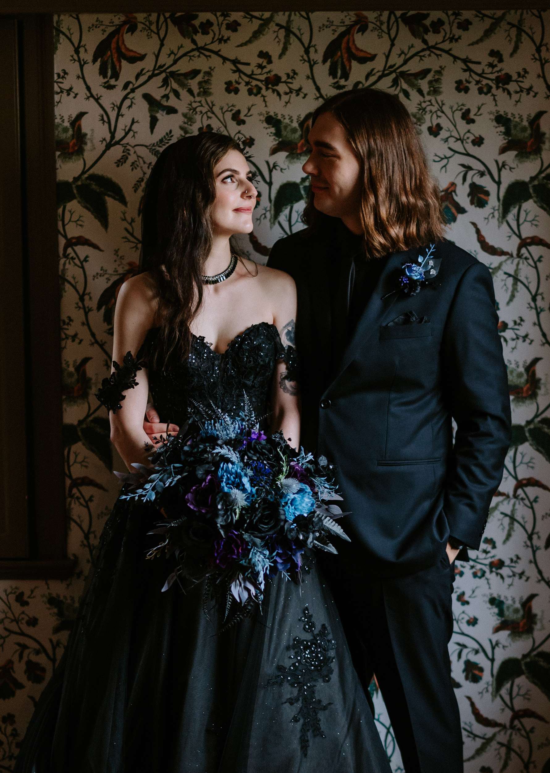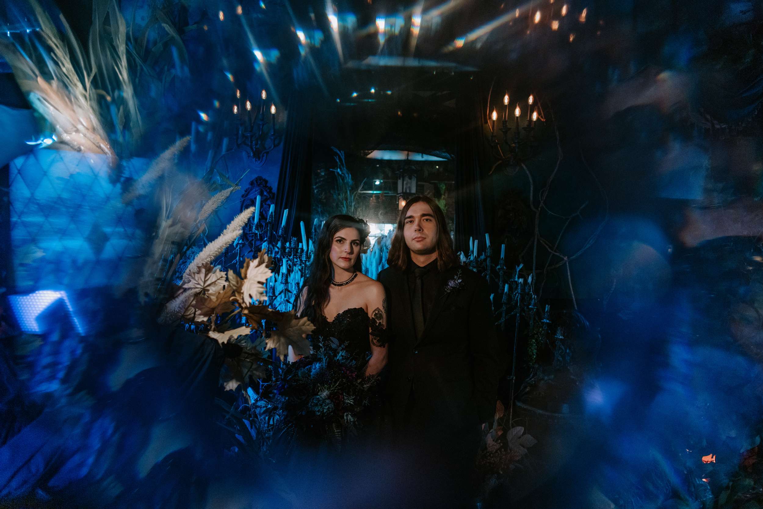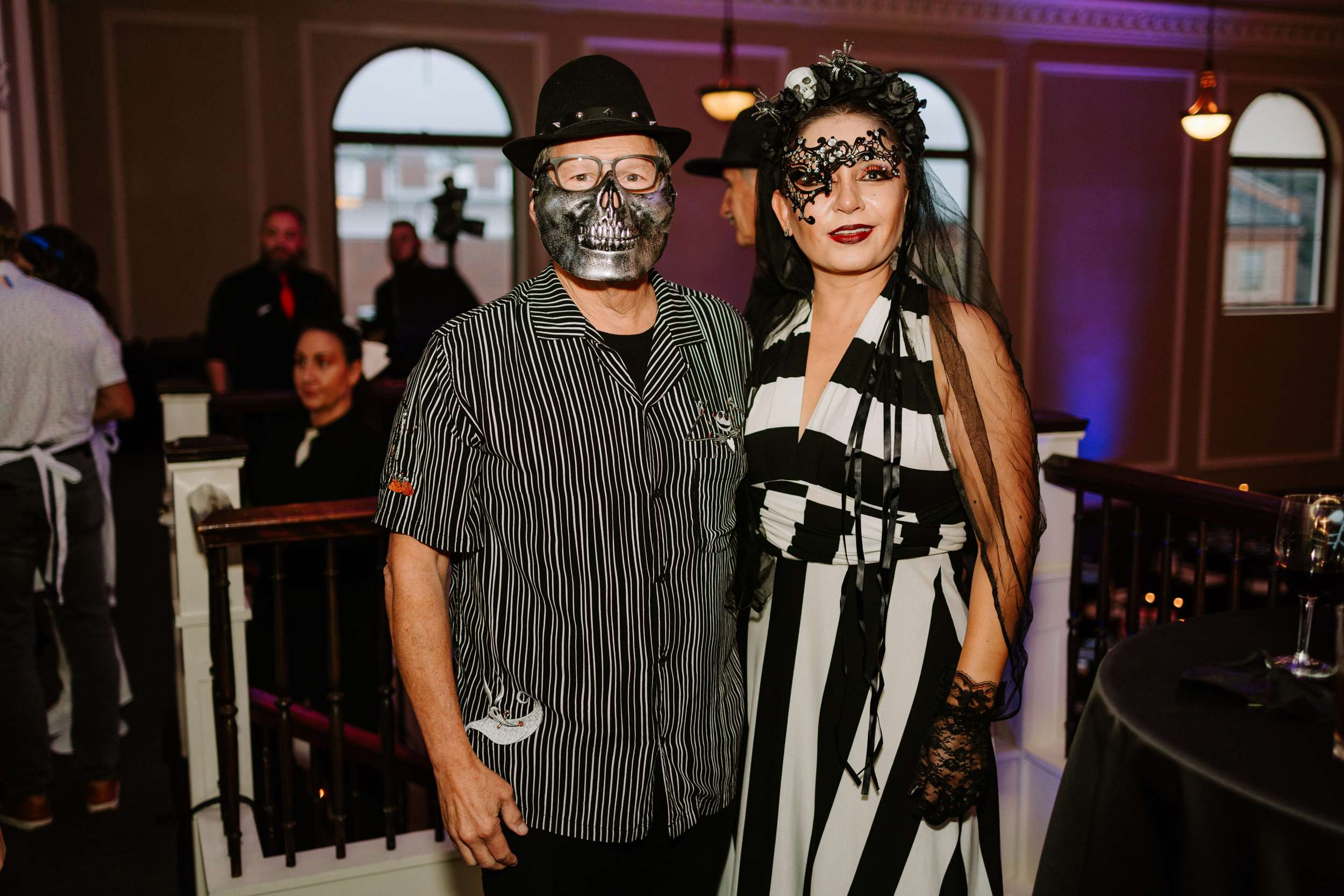 “Our wedding theme was a mixture of moody, eerie, spooky, and dark romance with an alternative music twist”, Casey said. “Being in Salem with The House of the Seven Gables as the ceremony backdrop really helped us lean into our theme. We chose to have our reception at Colonial Hall. It was a costume party because we wanted an element of silliness and lightness that our day to balance everything out. We never take ourselves too seriously and we didn’t want our big day to feel ‘serious’ in that sense either.”