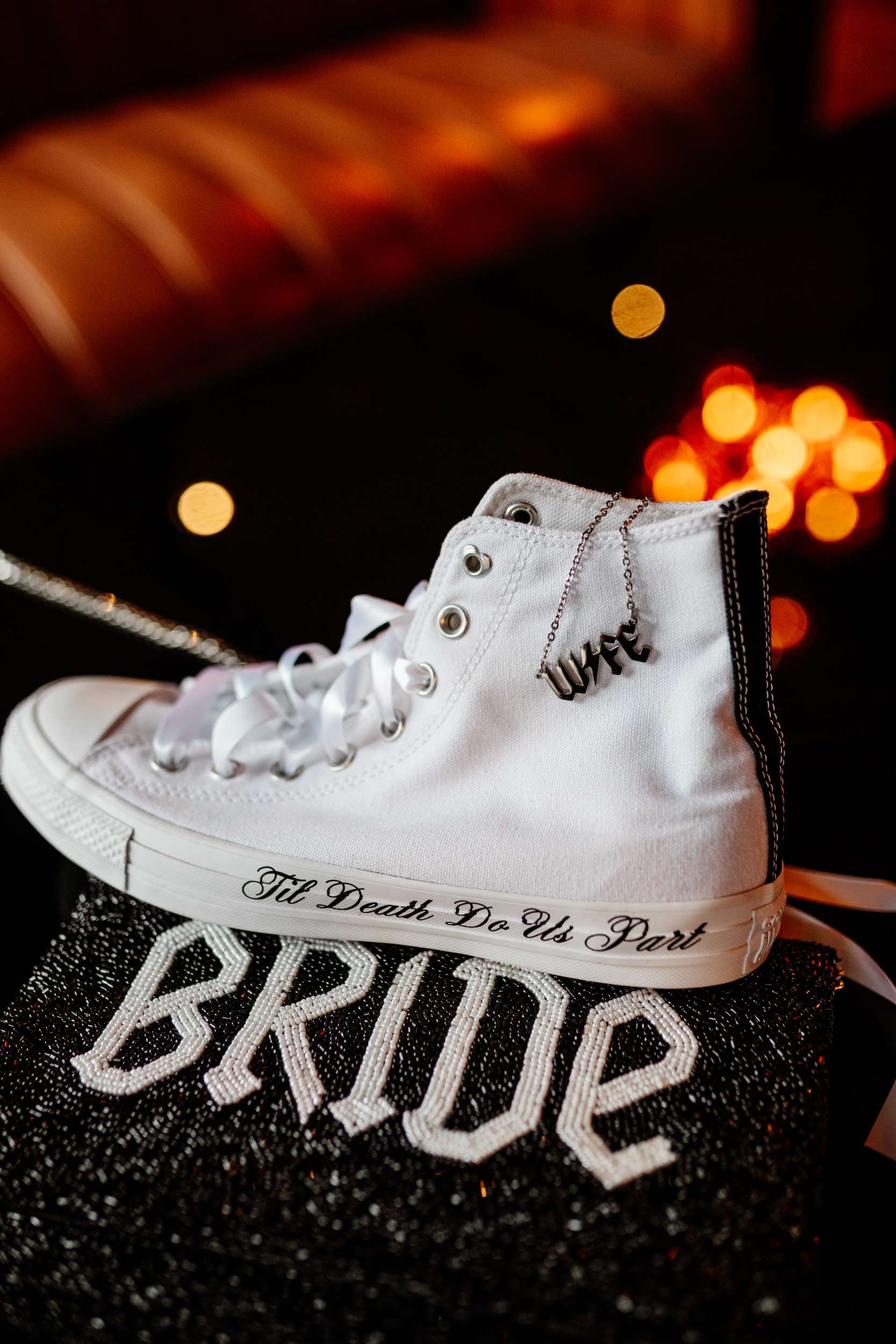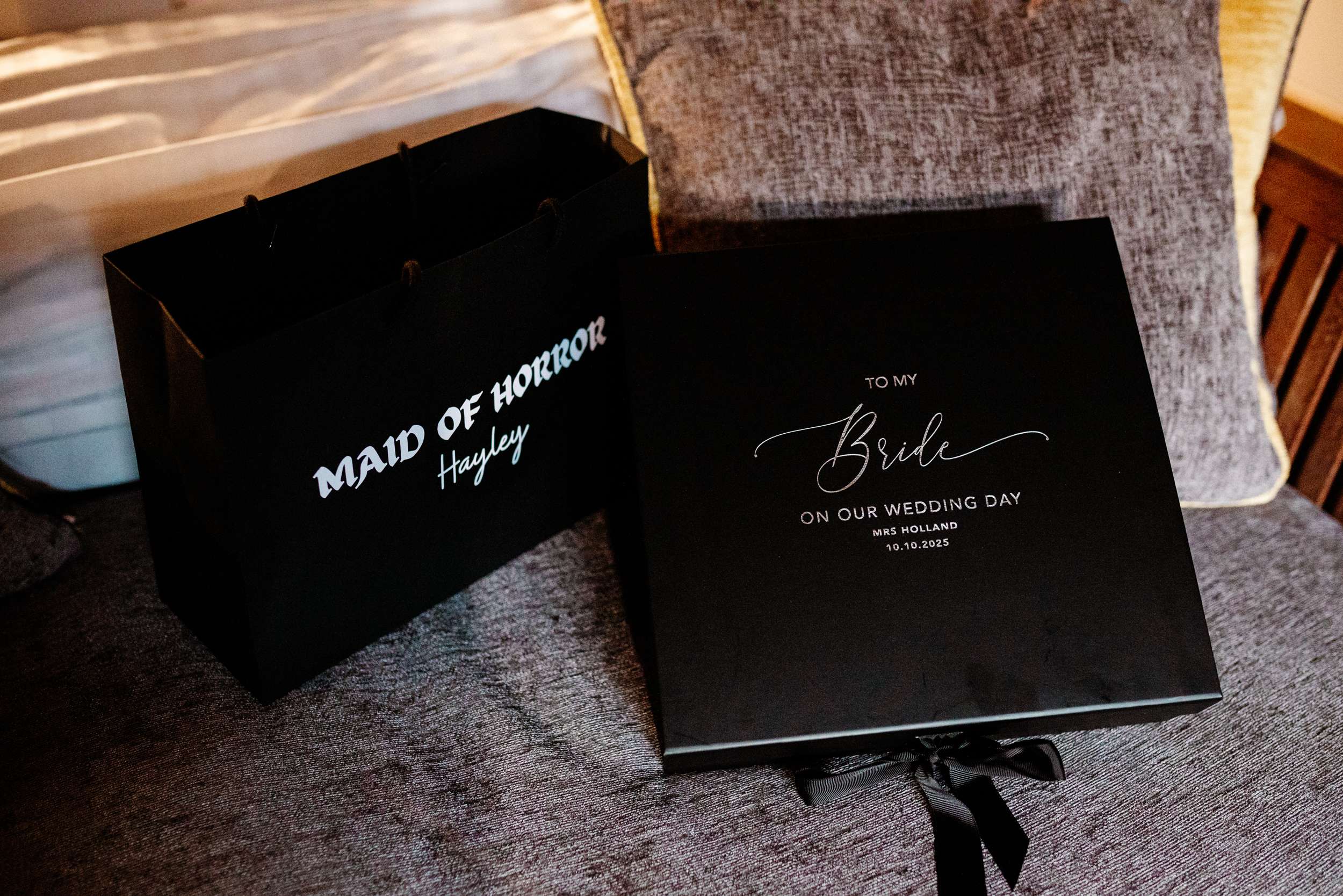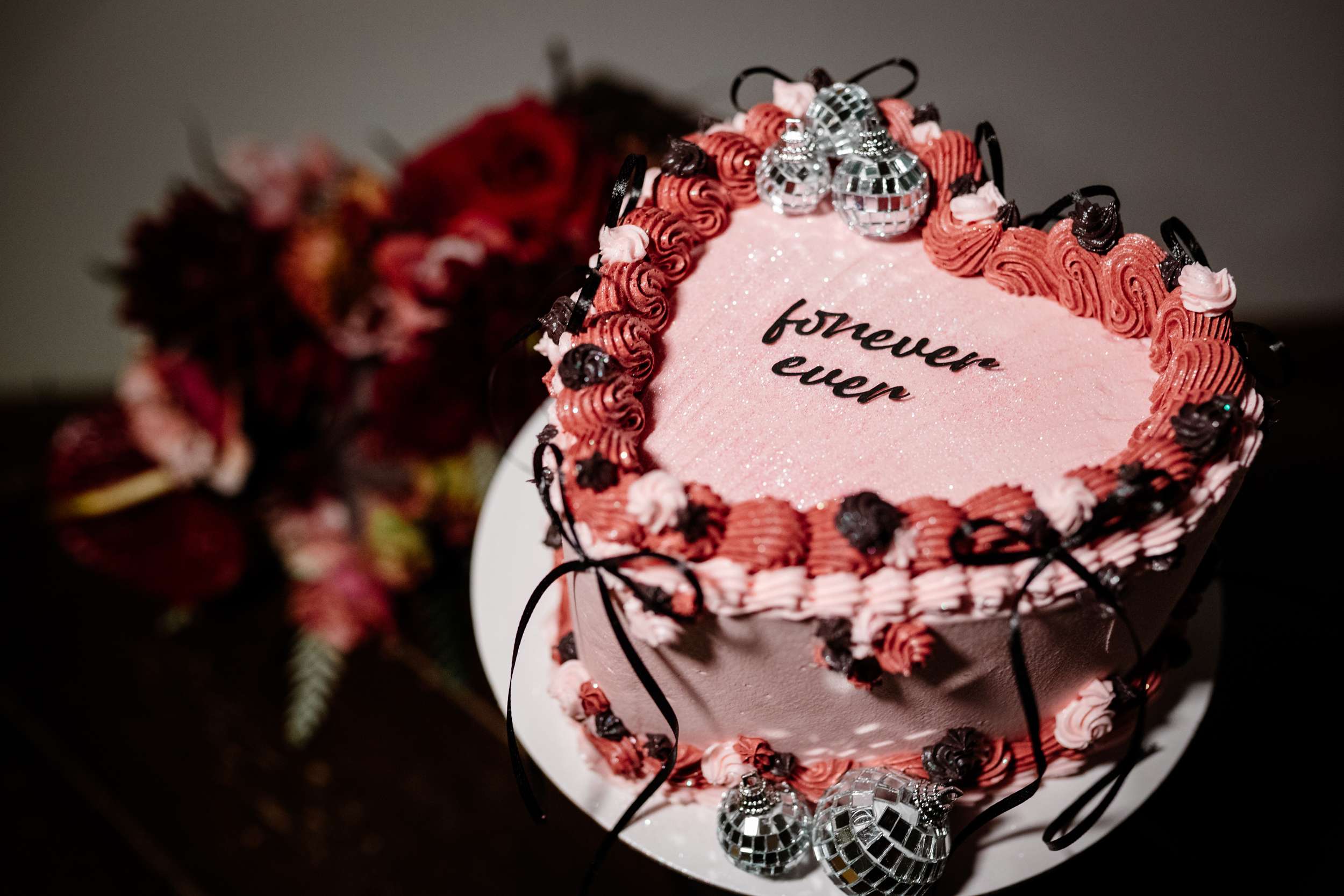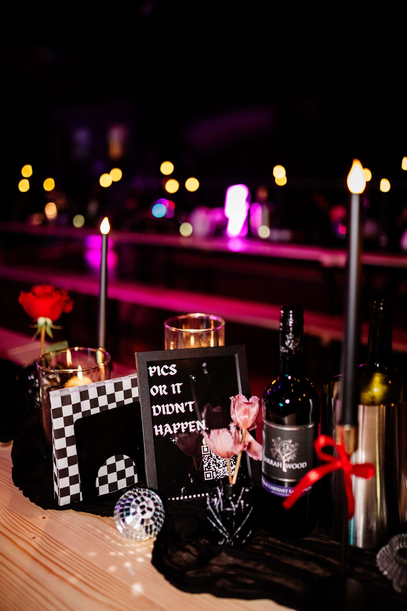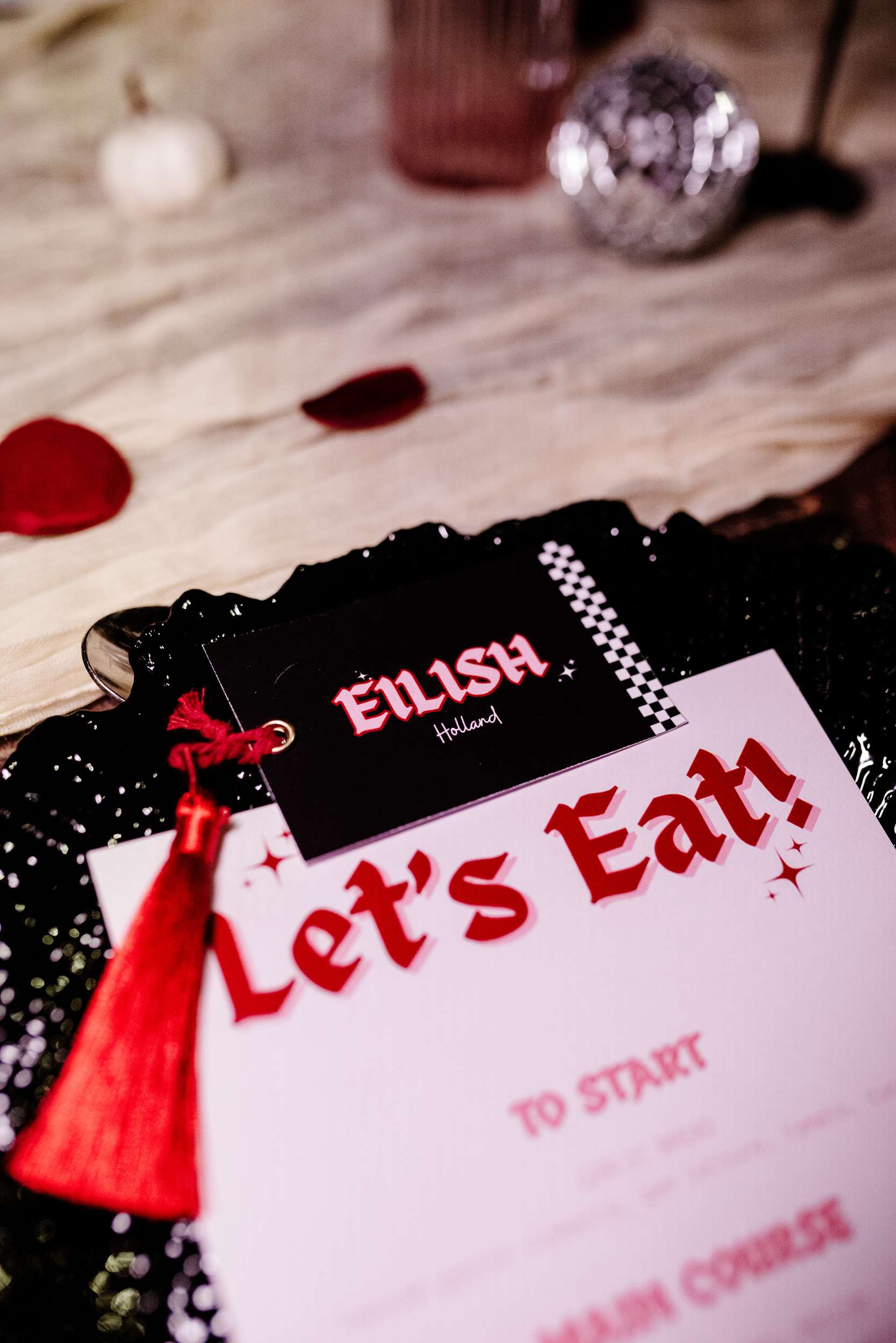“I really wanted emo to be the main vibe of the day”, Laura said. “We really didn’t want to have a traditional, copy and paste wedding. We wanted our favourite colours, lots of checkerboard, gothic fonts, disco balls and moody vibes! I feel we managed to achieve this perfectly with the help from Rebecca at R&R Weddings and Events. I contacted our photographer, Amy, and asked if she could recommend a room dresser for us. I wanted someone who understood our vibe, but also had amazing ideas that we would love. Amy suggested Rebecca and when I found her Instagram, it looked just like my Pinterest board!”