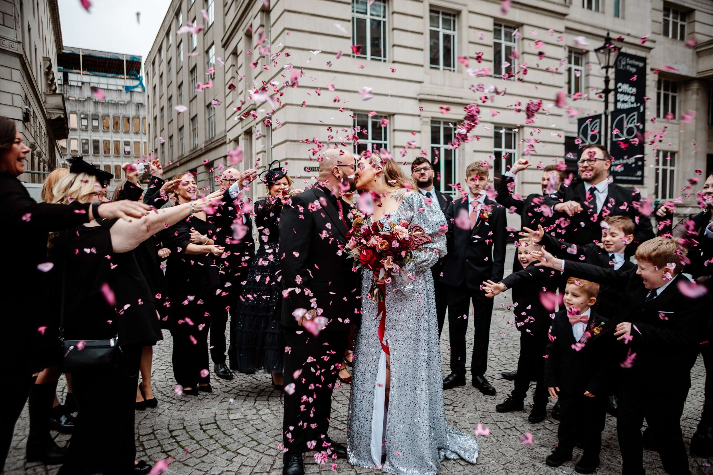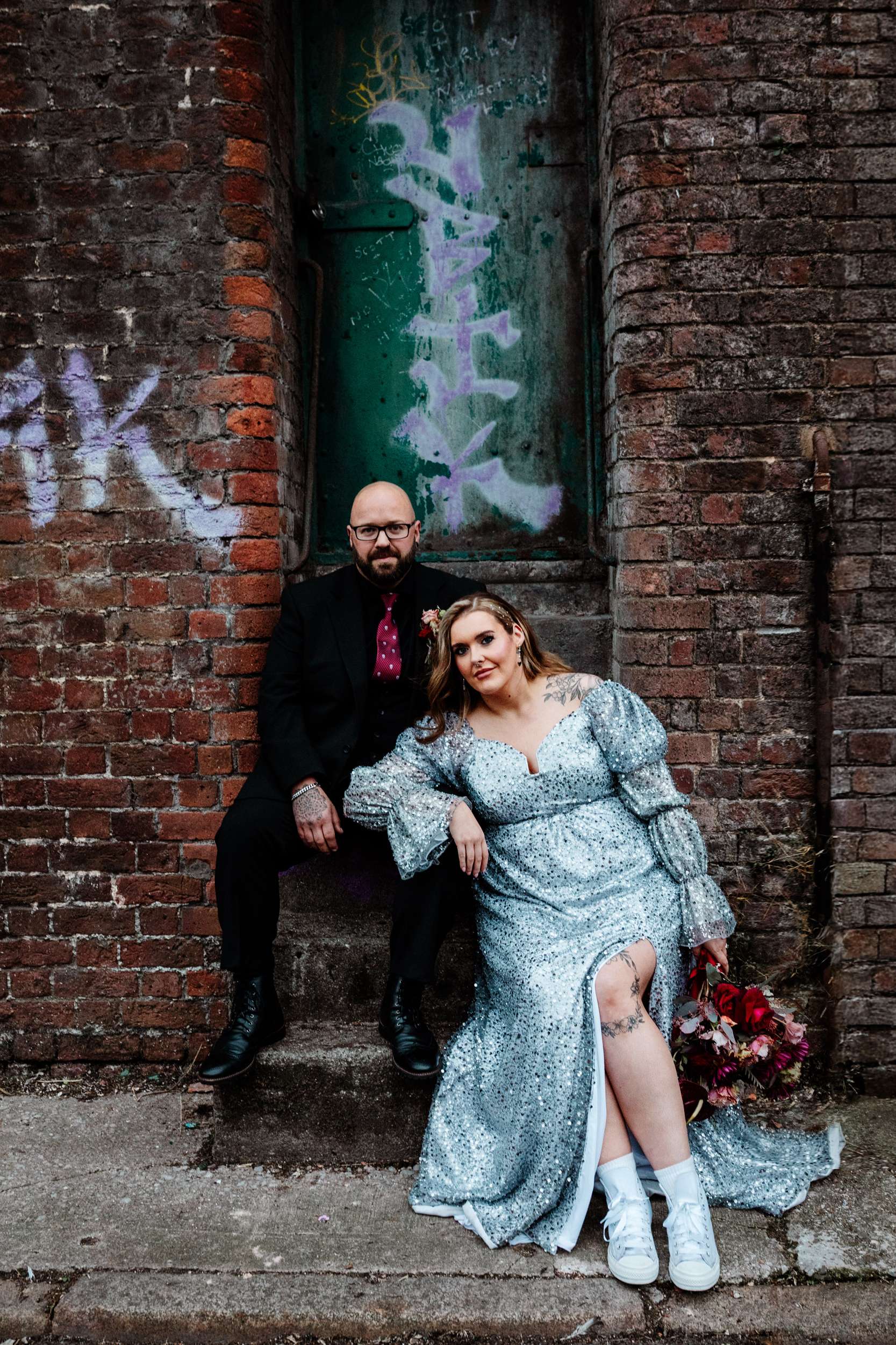 When Laura, a self-confessed elder emo, married Robin in Liverpool, she knew exactly what she wanted their wedding to be like. After a register office ceremony with just 20 guests, they had a huge live-gig inspired reception where they fully leaned into the theme – checkerboards, disco balls and live music all night long!