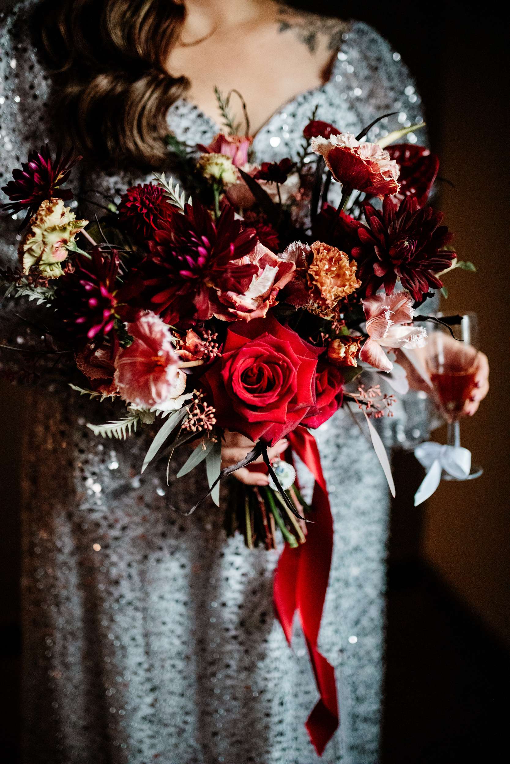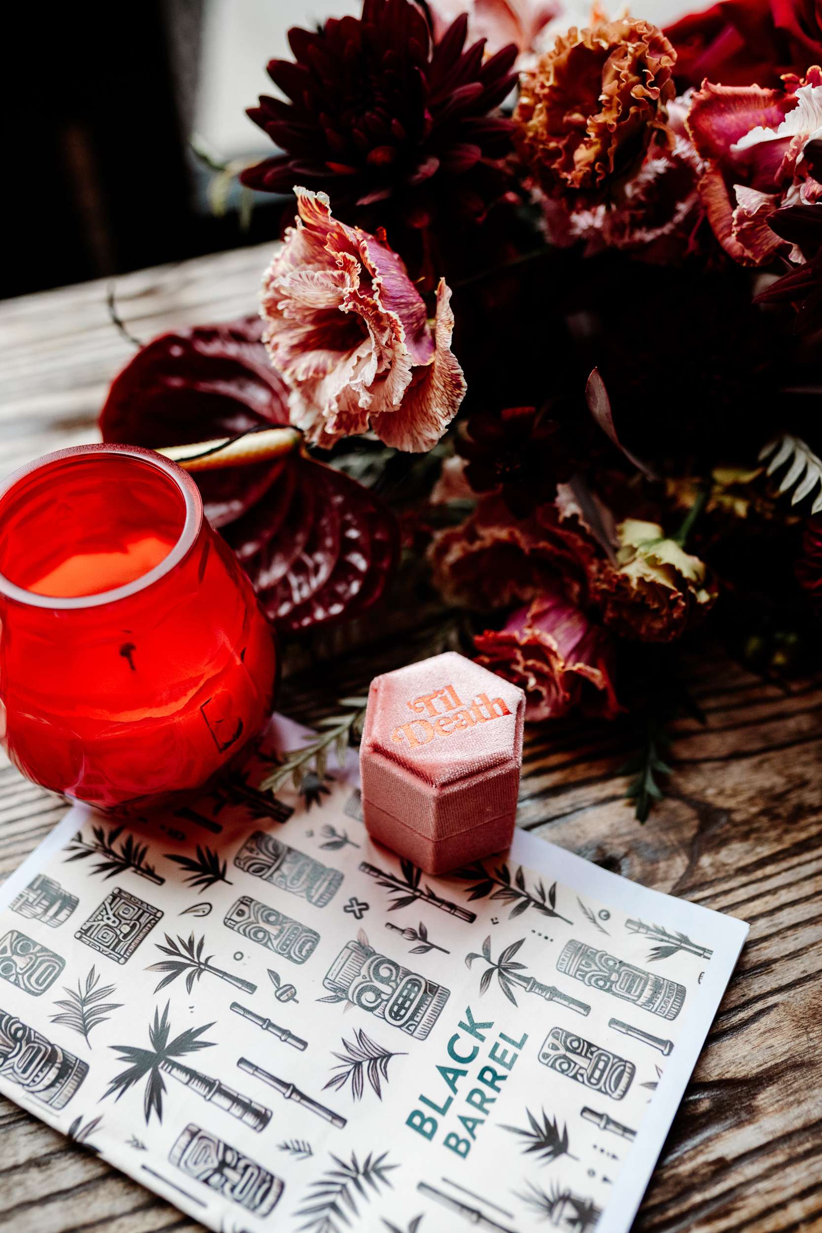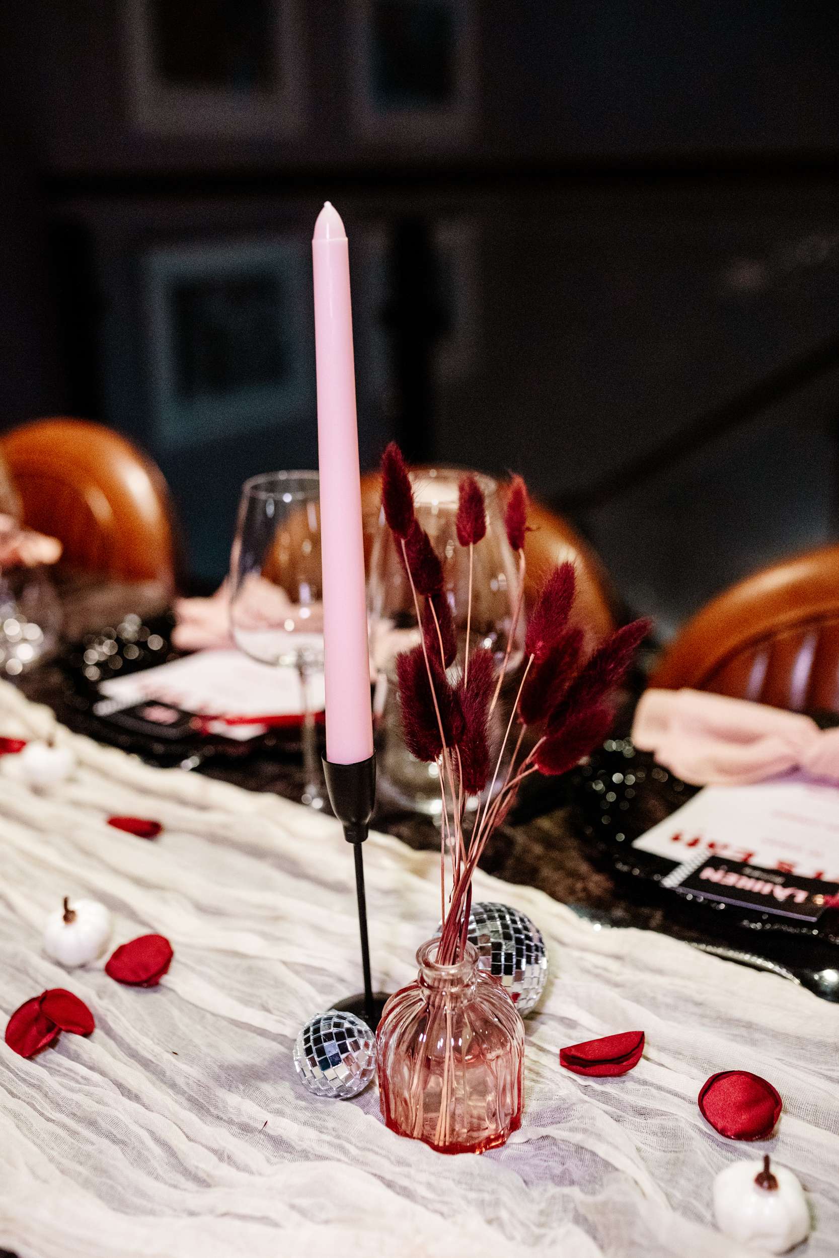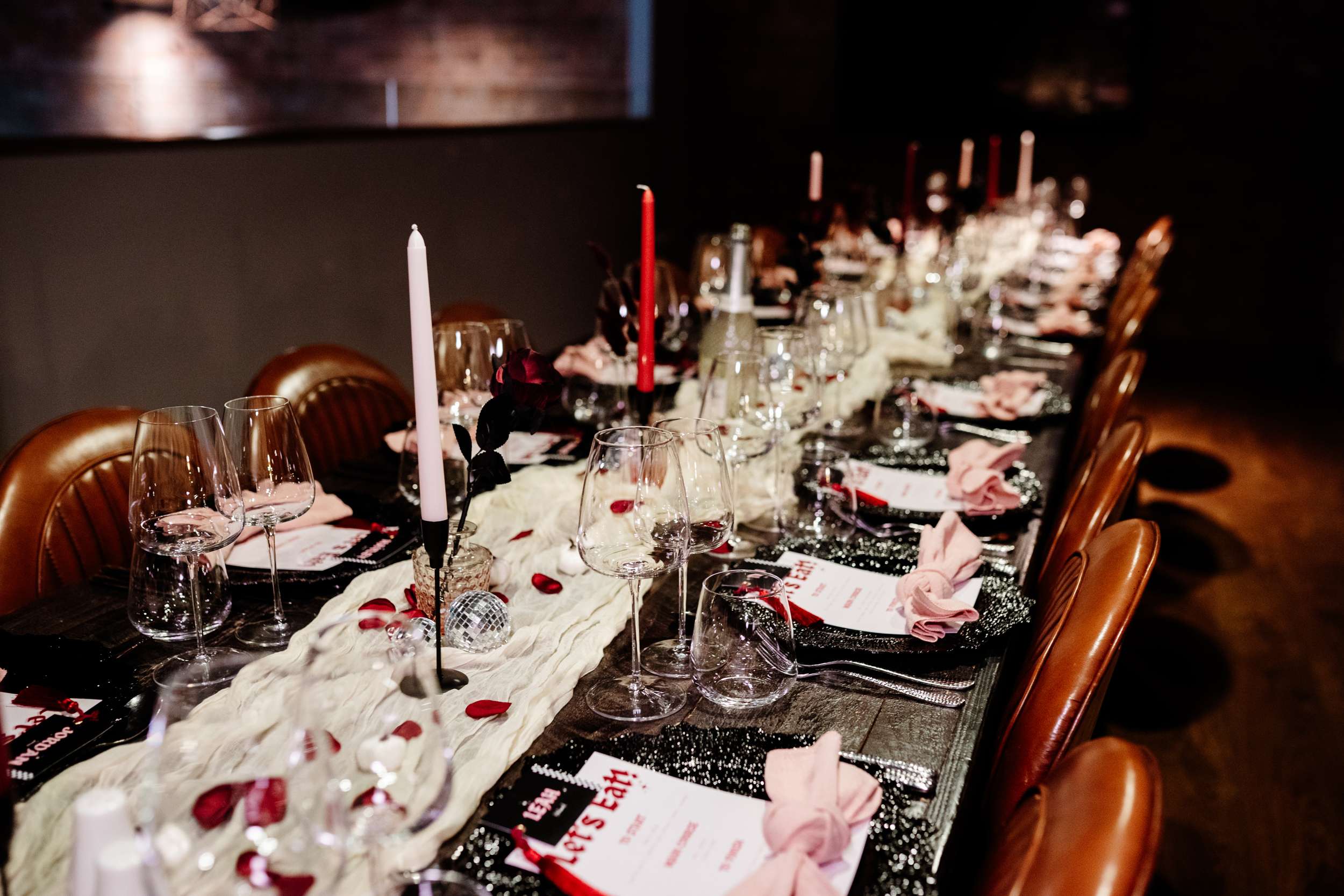 “Our evening reception was unreal! ” Laura said, “The room could be divided into two with the use of some curtains so guests arrived through the bar area where they gathered for a drinks reception first. We had Cranberry Aperol Spritz for welcome drinks which were stunning and fitted the autumn theme. During this time, Lily Kerbey sang two sets of nu-metal bangers acoustically, and our guests LOVED her. I once seen her describe her singing style as ‘singing a Slipknot song but your Nan thinks its Ed Sheeran’ and this was the perfect thing for us. I loved hearing our guests saying ‘wait, is she singing Korn?’ She was the most perfect addition to our drinks reception.”