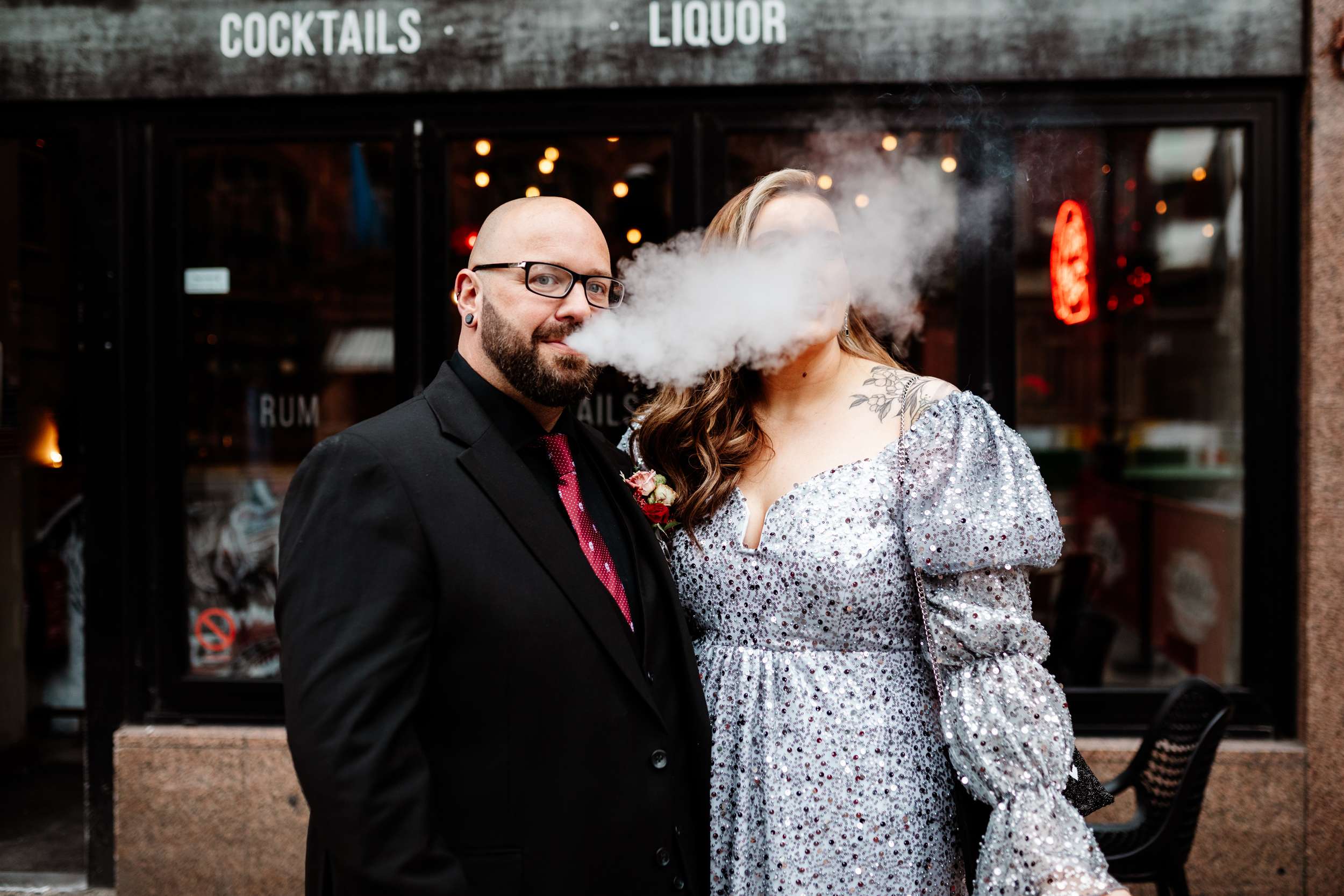 The ceremony was limited to parents, siblings, nieces and nephews. Robin’s brother played Mother Tongue by Bring Me The Horizon on piano as Laura walked in. They didn’t want a huge ceremony with everyone looking at them, so breaking the day into two parts worked perfectly.