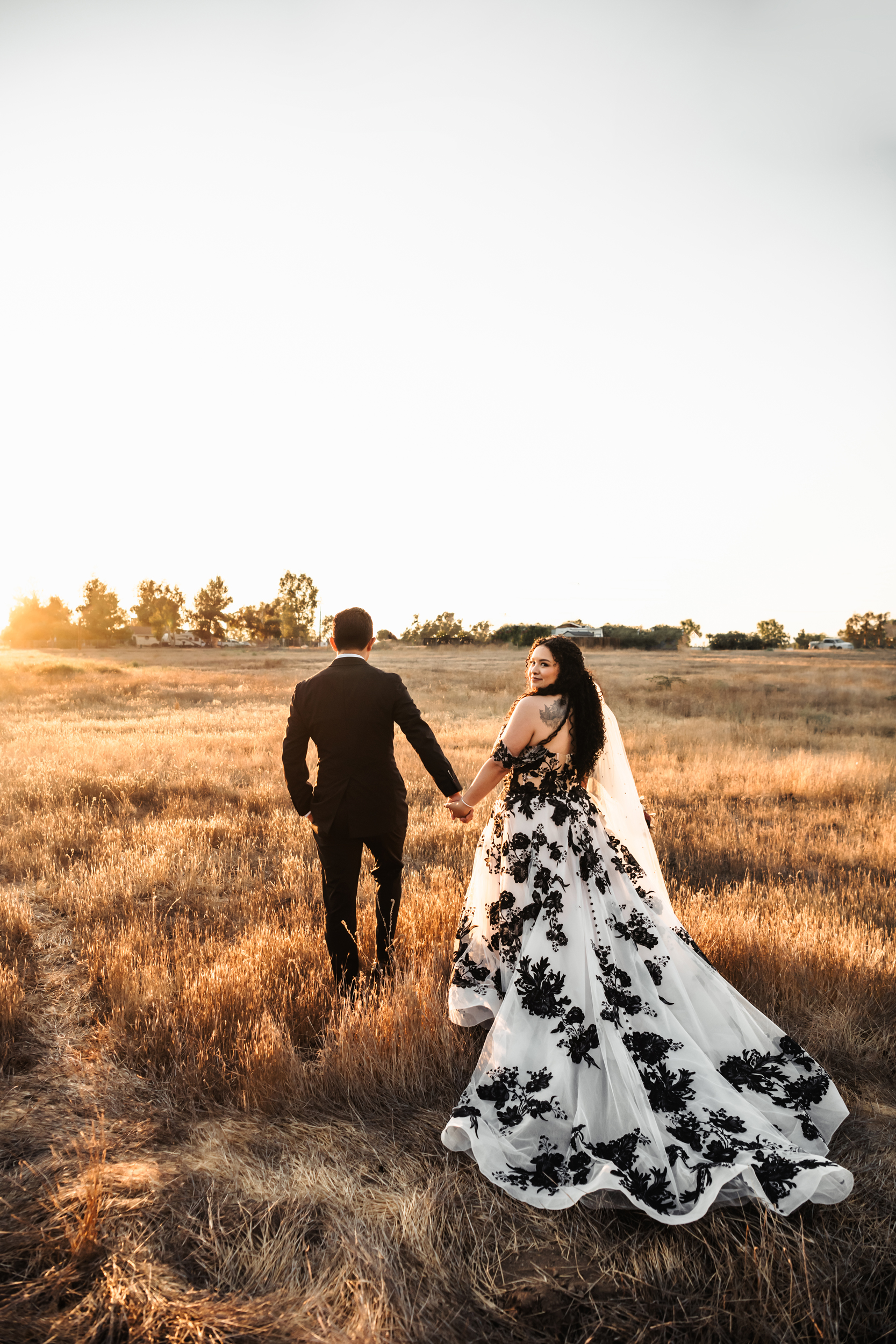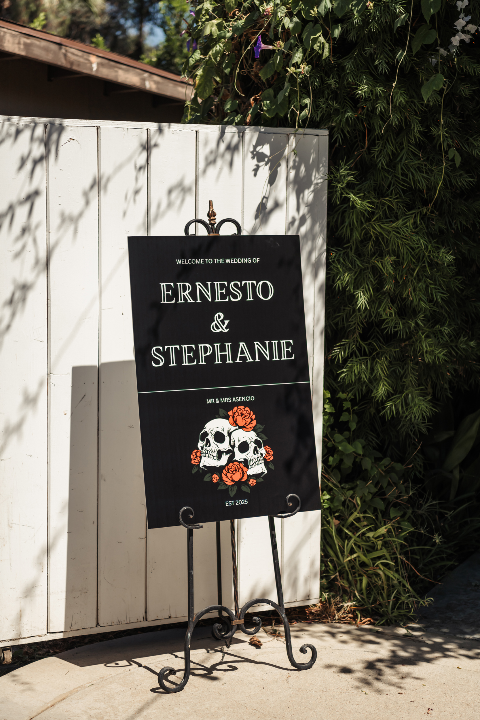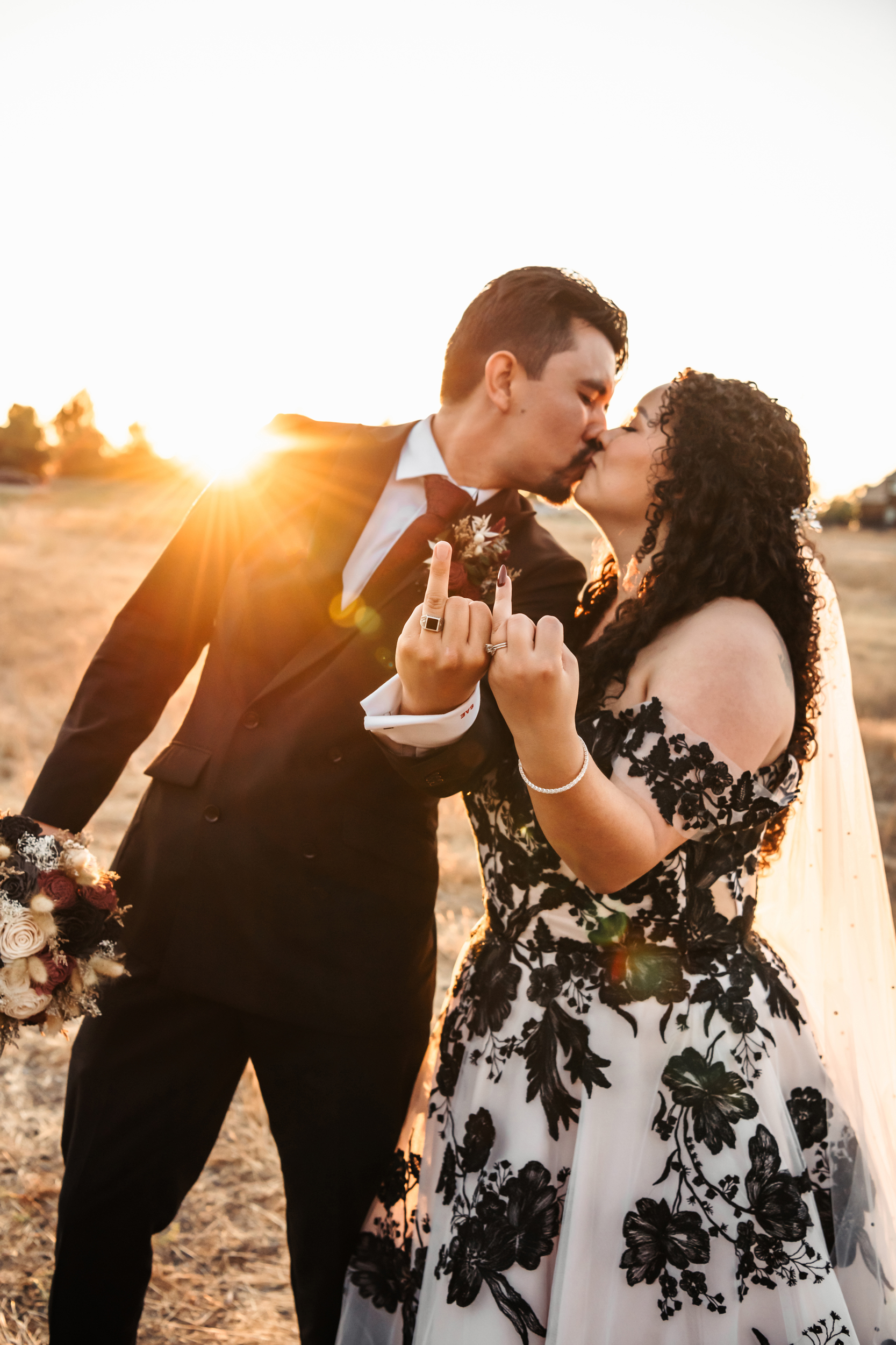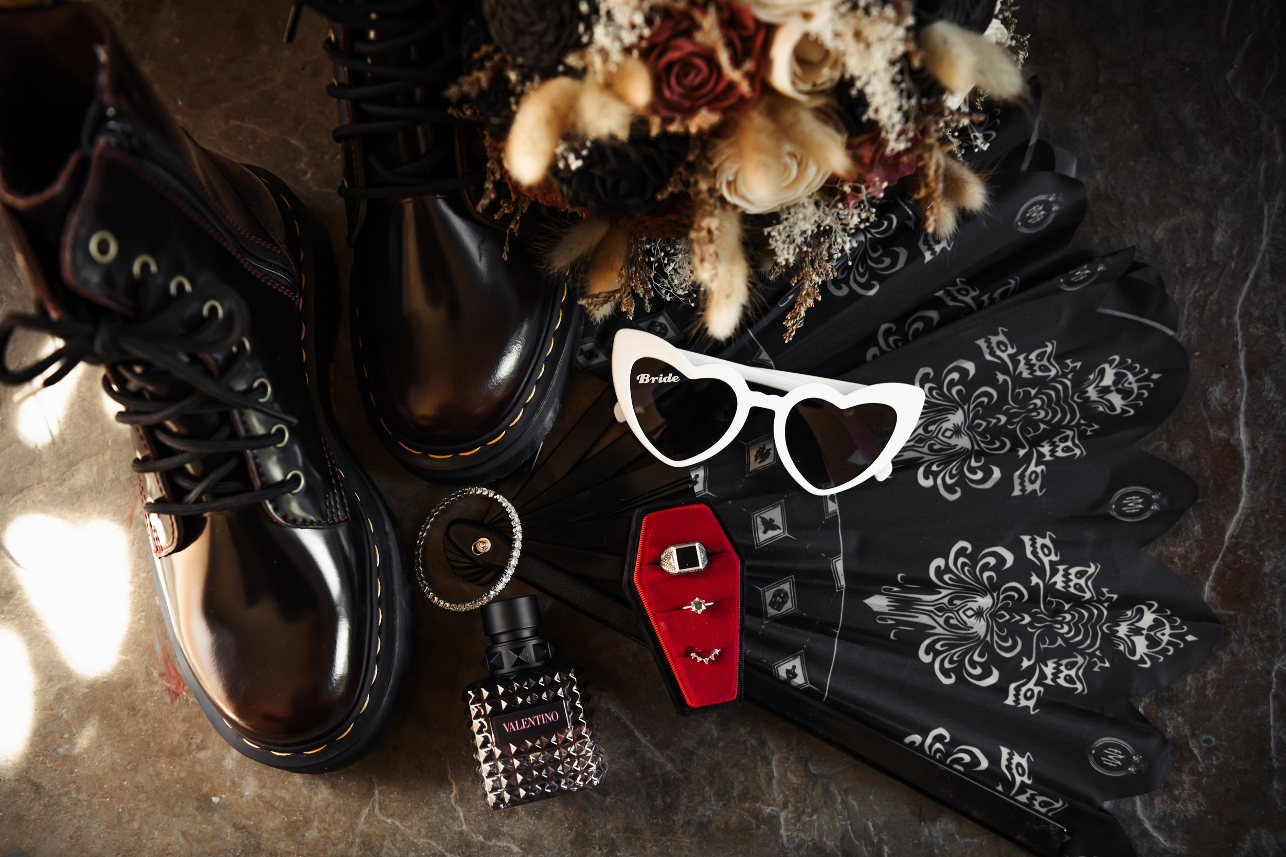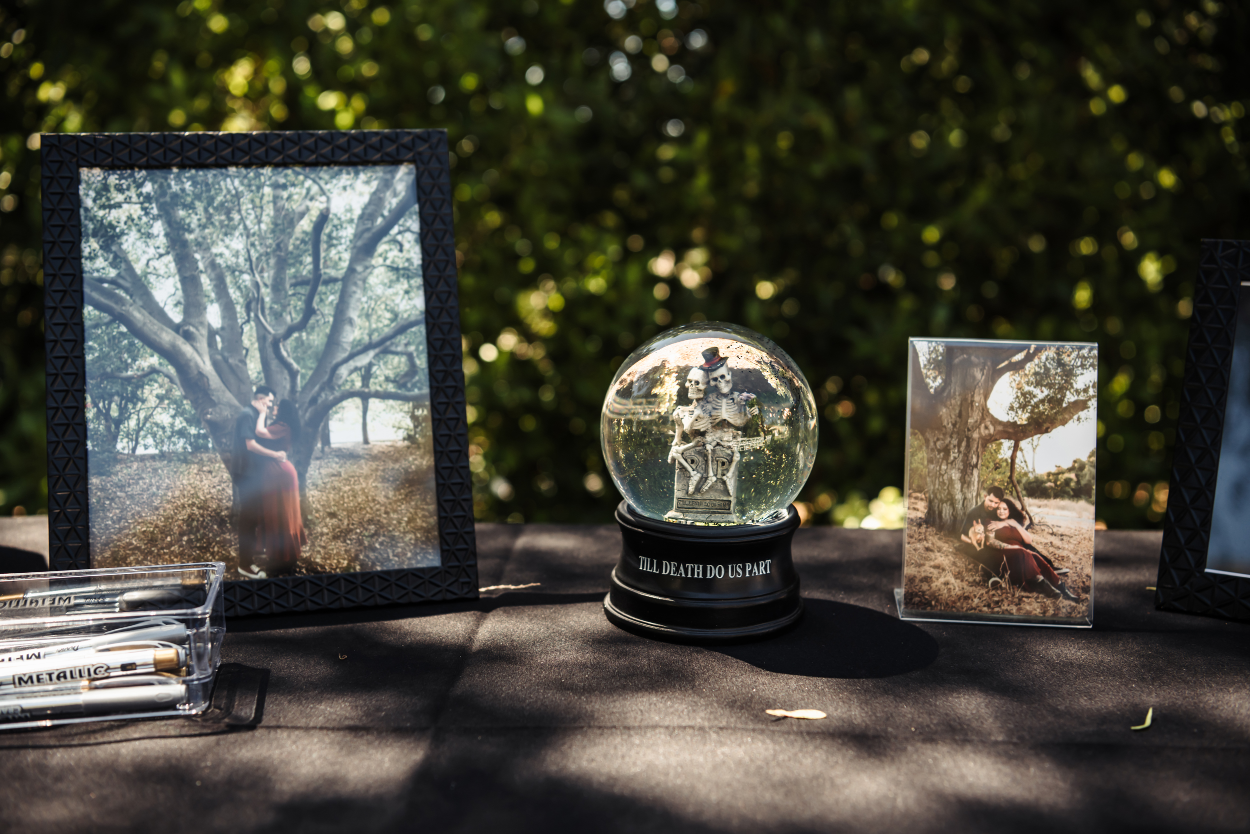 A traditional, all-white wedding was never on the cards for Stephanie and Ernesto. The couple based the day around Warped Tour, as well as all the other concerts they’ve been to over the years. The bride initially didn’t want to wear a white dress, but when she found one which was white, but with black lace accents, it just felt right. “We are elder emos and knew from the beginning that we wanted a rock festival theme,” she said.