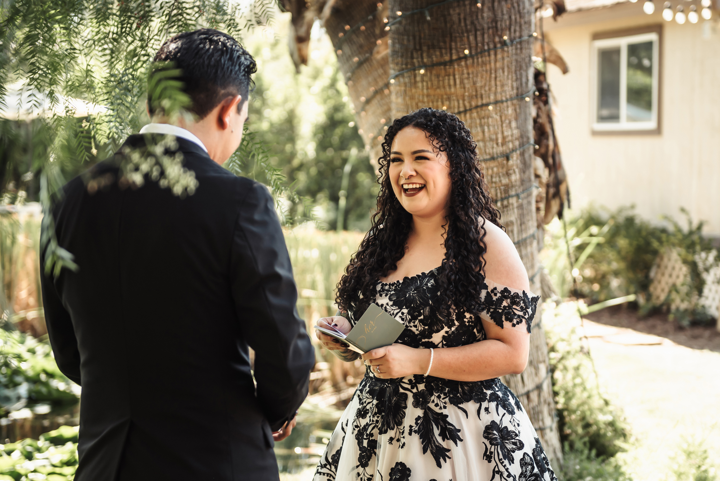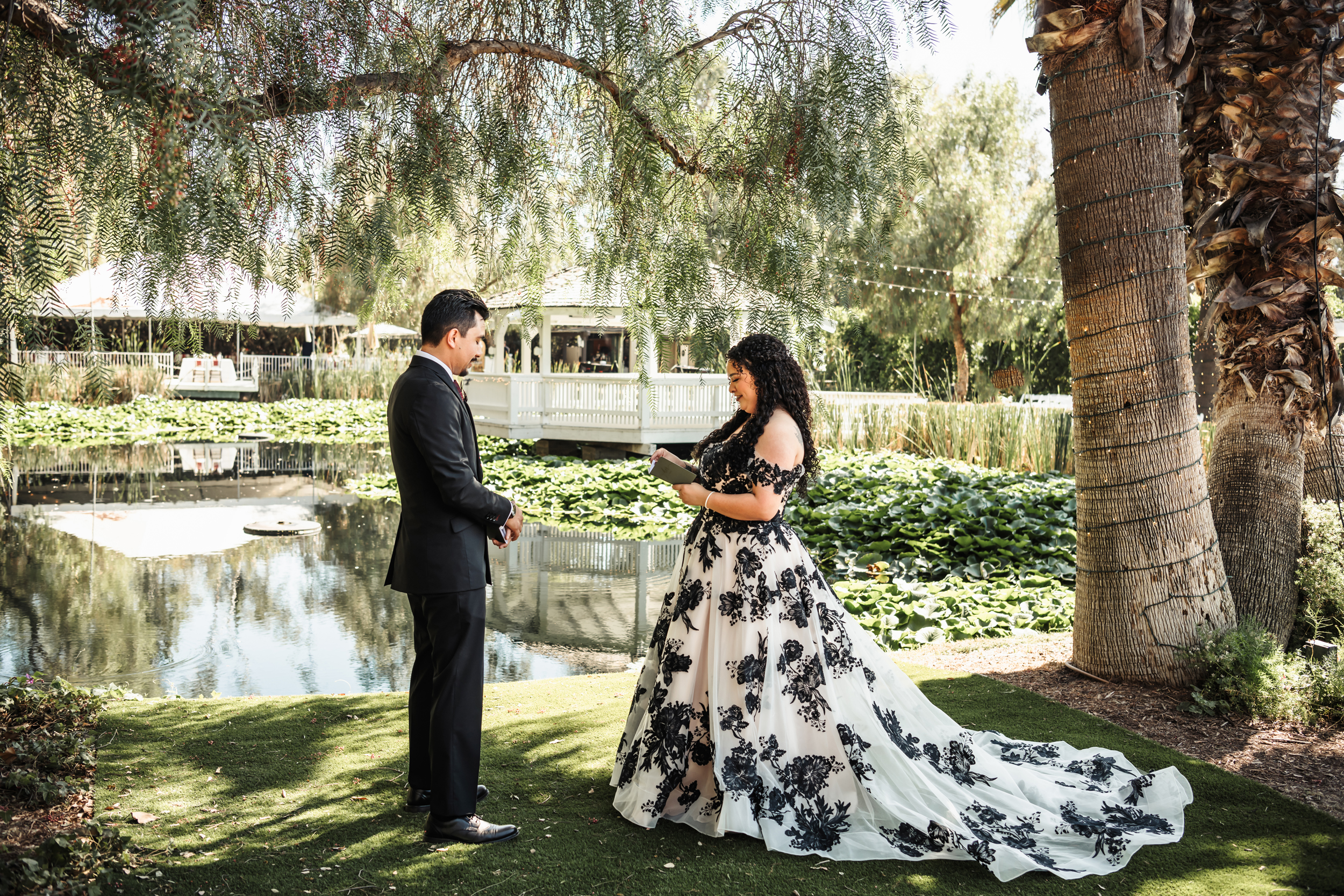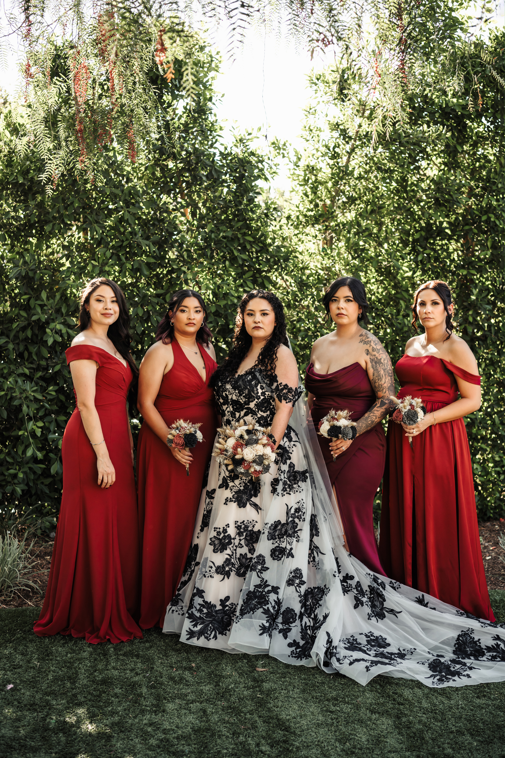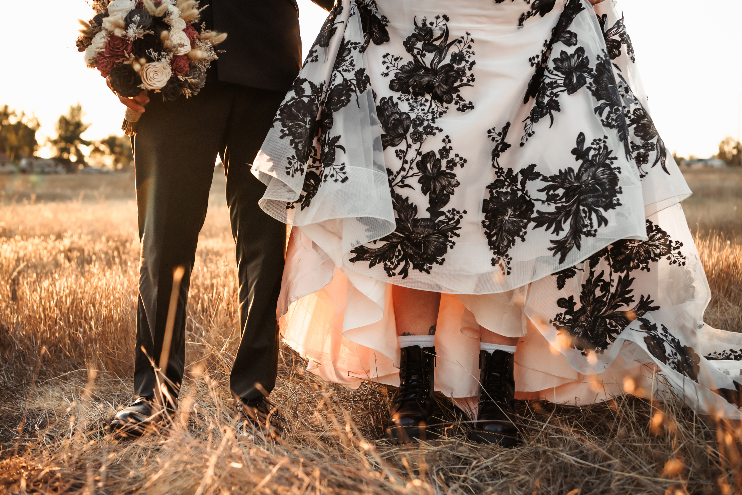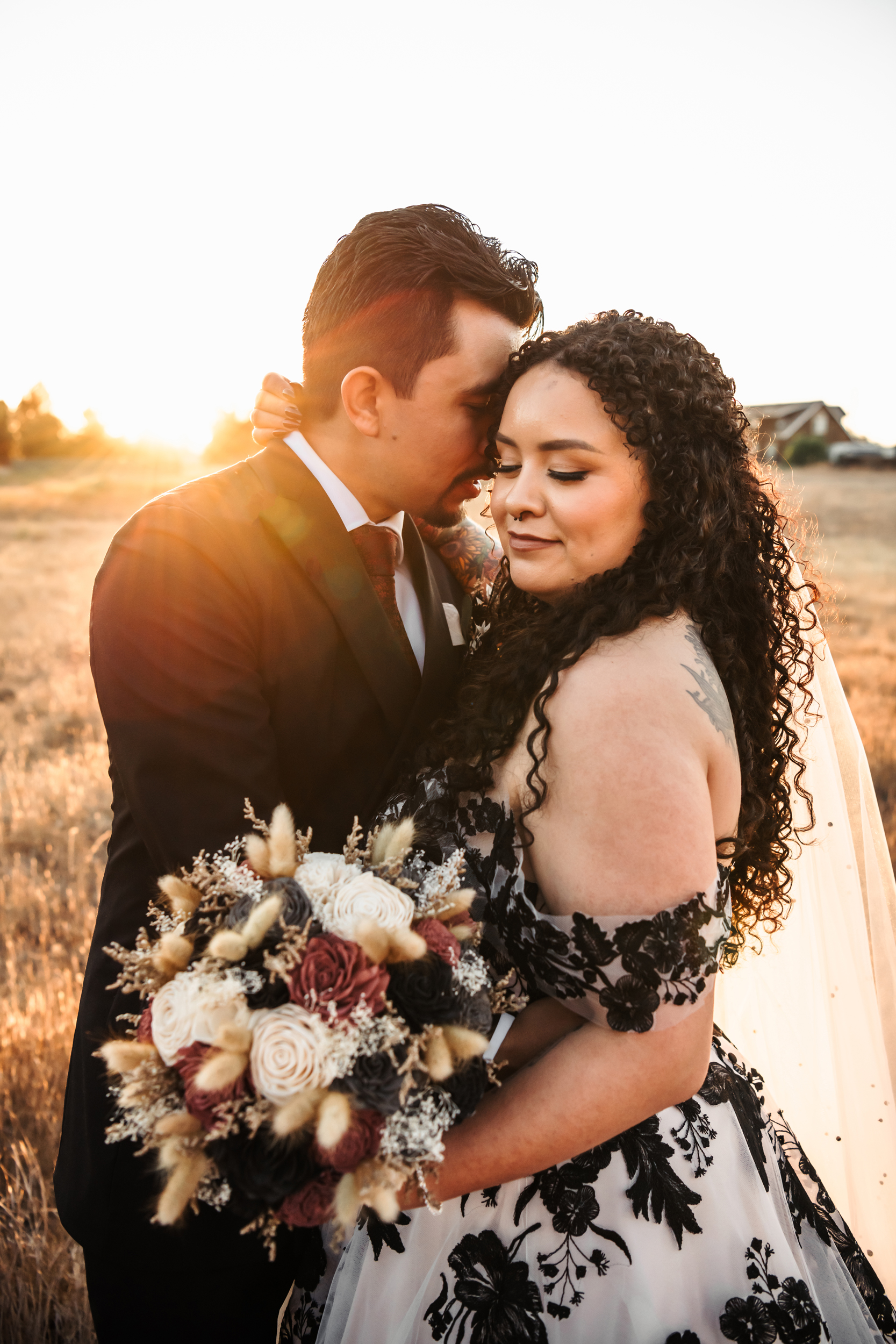 A traditional, all-white wedding was never on the cards for Stephanie and Ernesto. The couple based the day around Warped Tour, as well as all the other concerts they’ve been to over the years. The bride initially didn’t want to wear a white dress, but when she found one which was white, but with black lace accents, it just felt right. “We are elder emos and knew from the beginning that we wanted a rock festival theme,” she said.