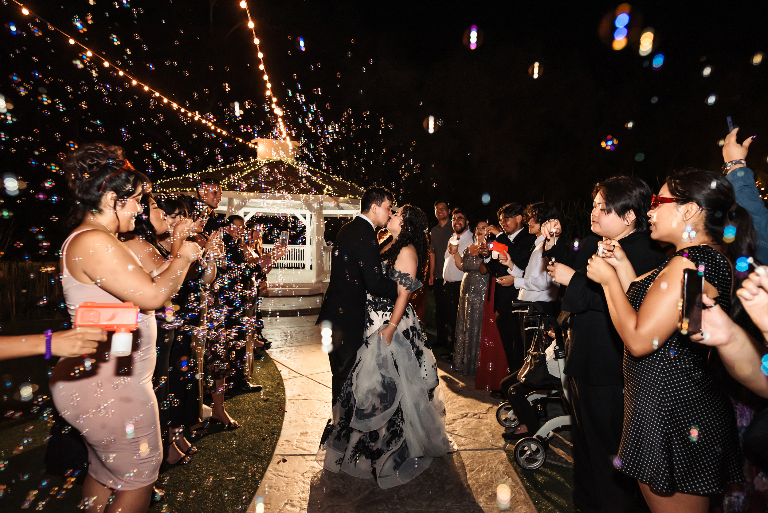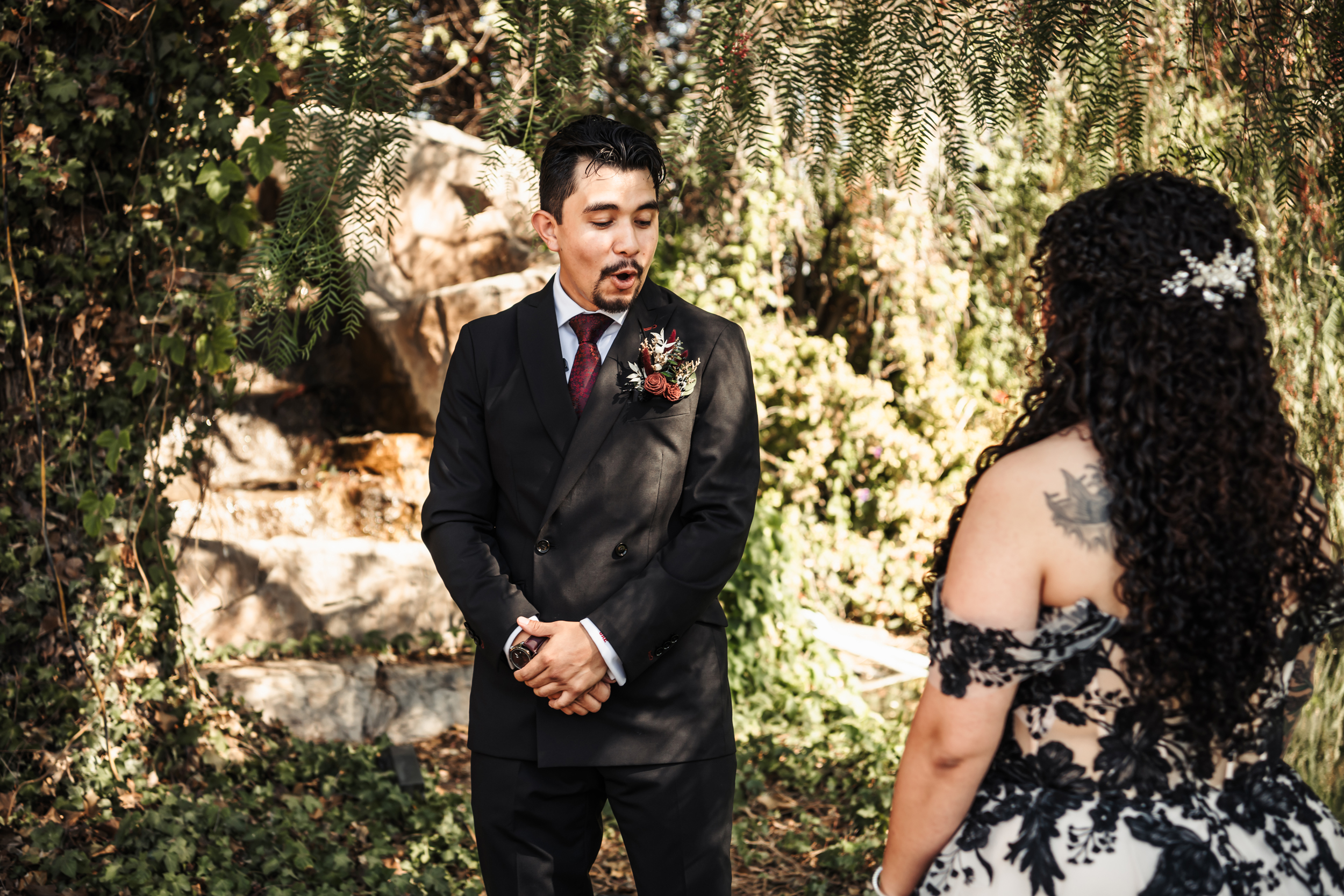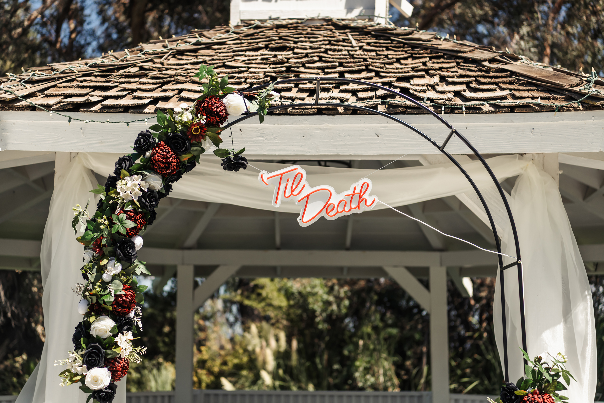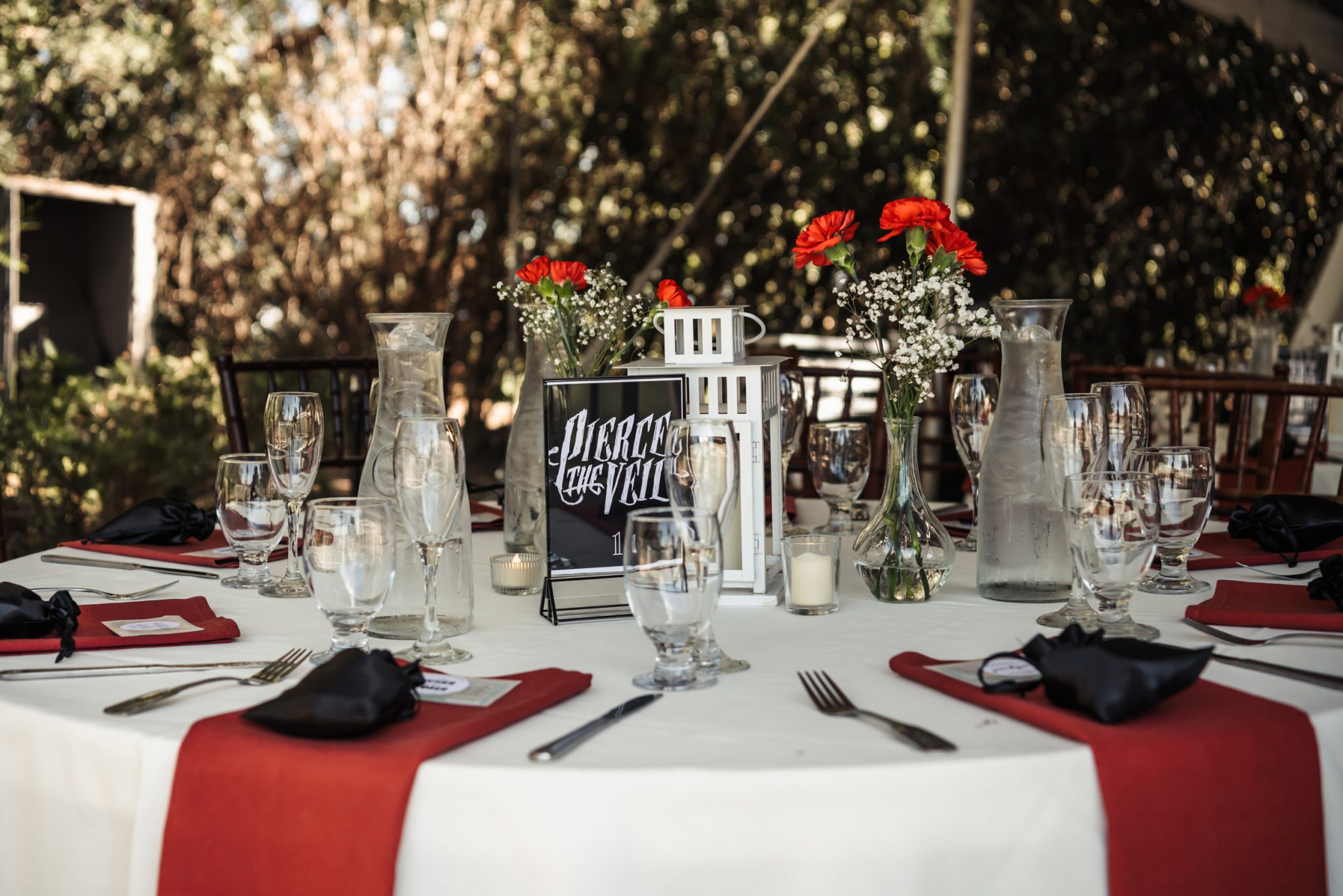 With a rock festival theme, of course the music was a huge consideration and the couple loved planning the playlist for each part of the day. Some particular highlights were the groom’s entrance Highway to Hell and the bride’s to Turning Page by Sleeping at Last. They entered their reception to Bad Bunny’s Despuez De La Playa and during the evening they did LA Vibora De La Mar, a Mexican traditional dance “It was fun getting to see family participate. It functions kind of like a conga line where guests dance through an arch formed by the bride and groom standing on chairs, holding onto each other by the veil. It symbolises support and the couple navigating life’s challenges together.”