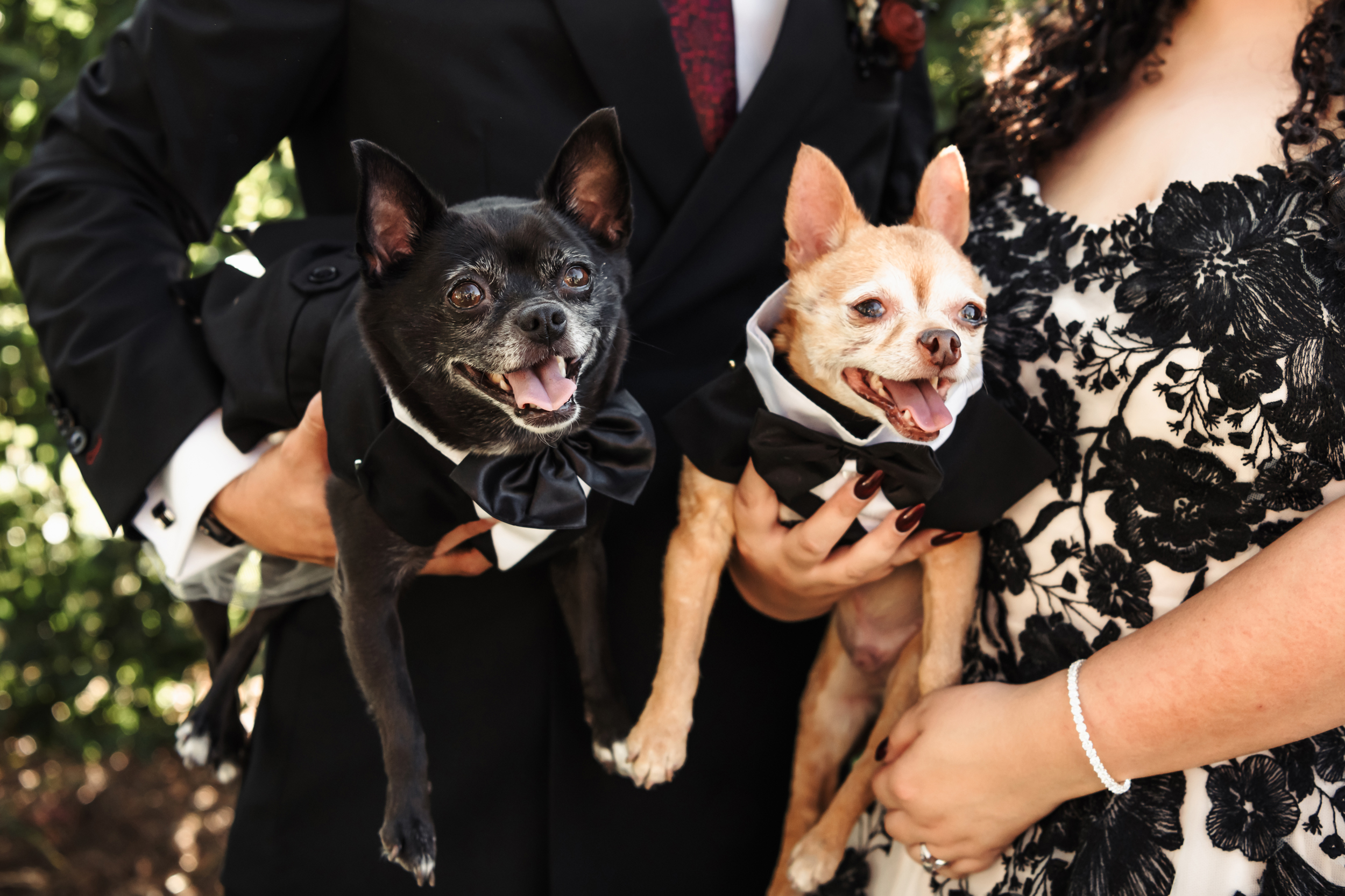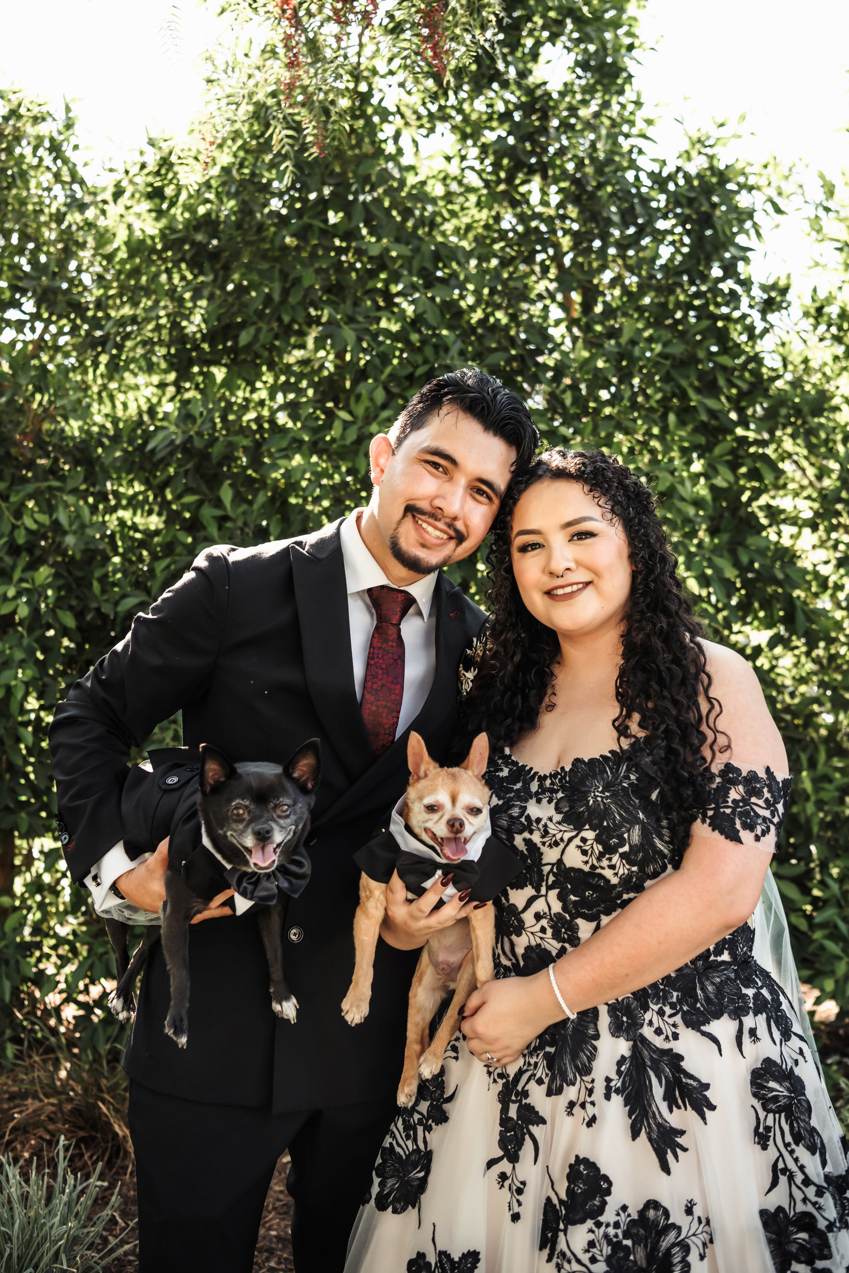 They removed any parts of a wedding that did not fit. They read their vows privately to each other before the ceremony. Their dog, Peanut, and Stephanie’s sister’s dog, Pepper, were the ring bearers.