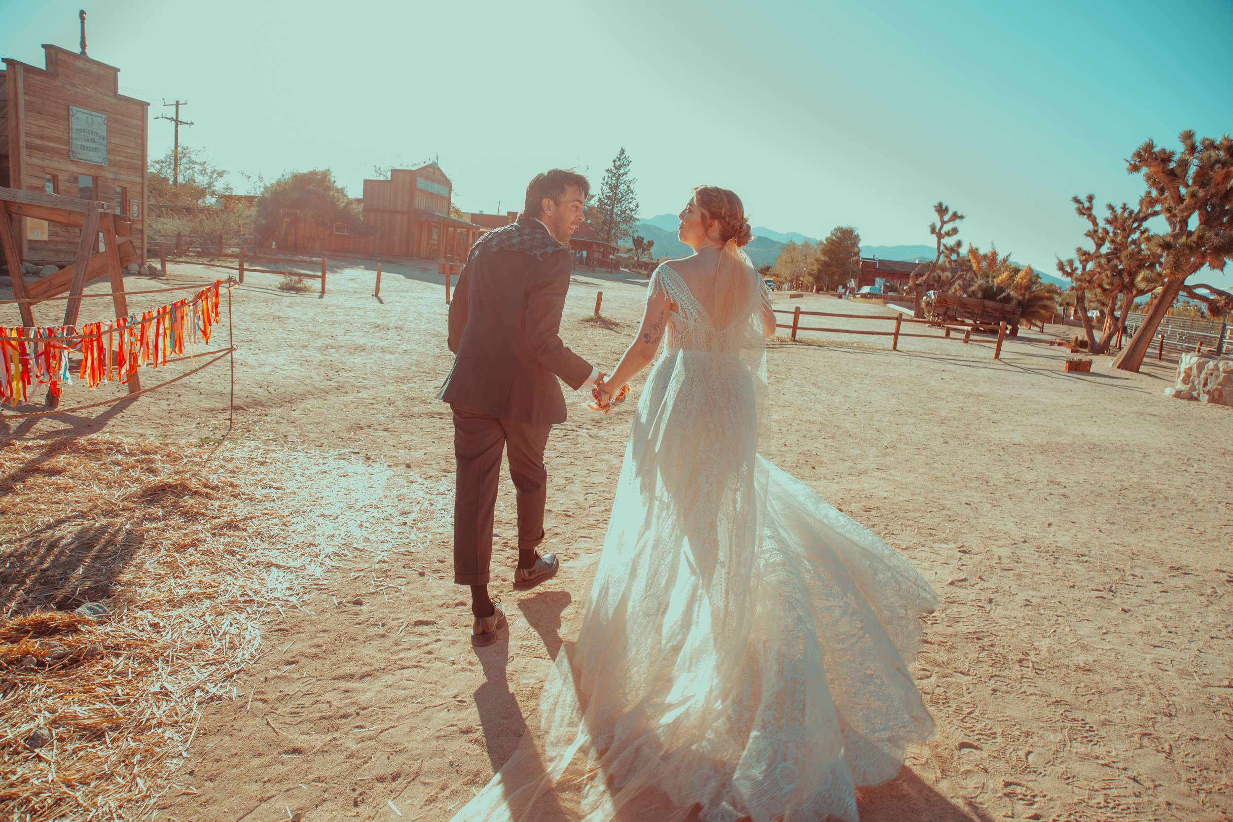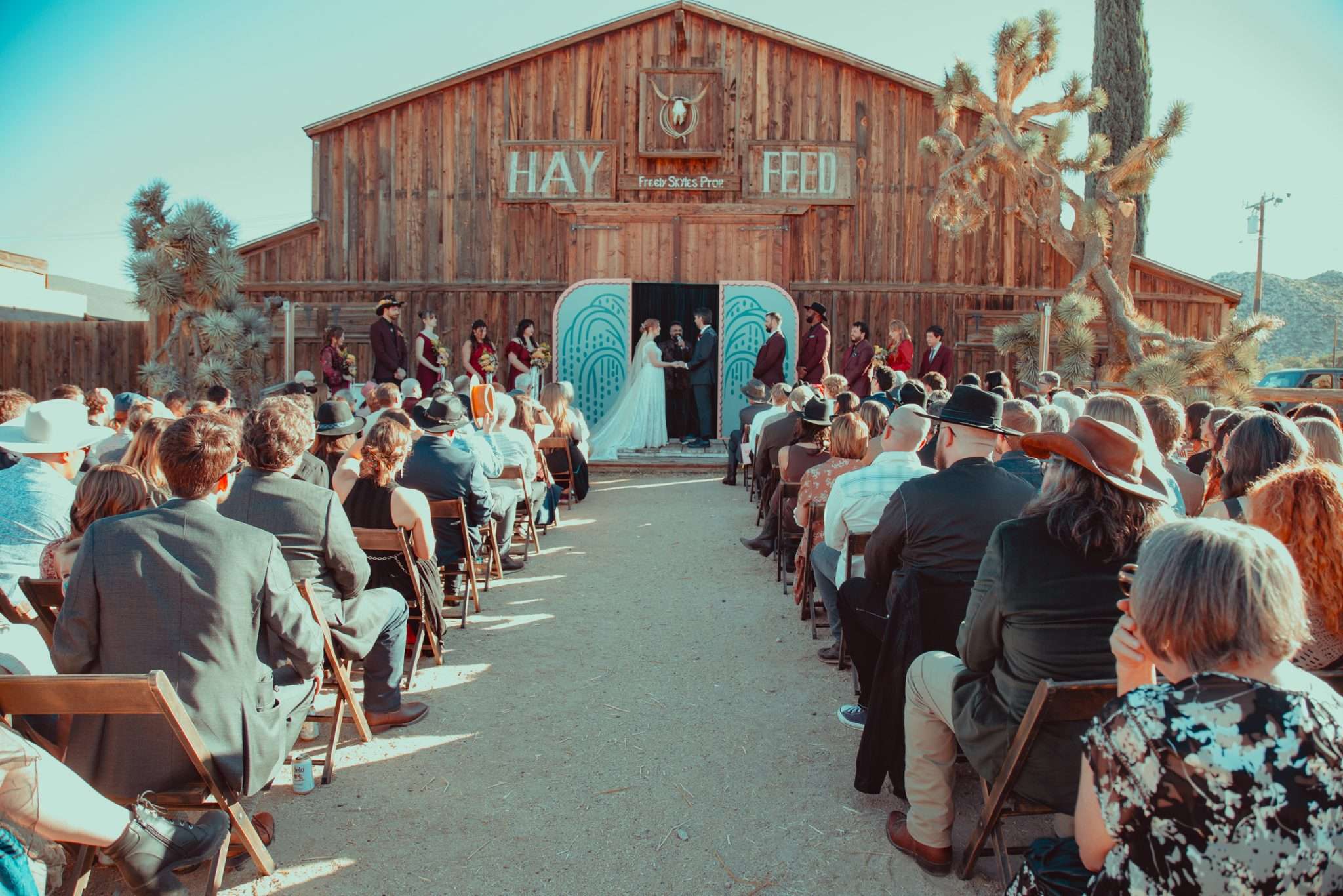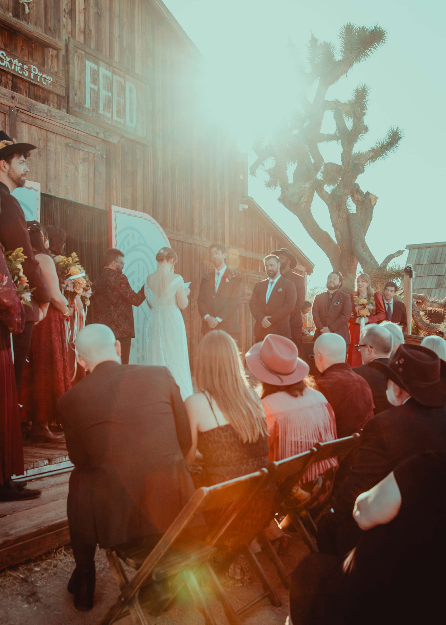 Kelly and Andy chose Pioneertown, specifically the Desert Soundstage, as their October wedding venue. They and their 144 guests travelled out to the desert to eat, drink and be married! The couple wanted the day to feel cosy, unique, interactive.