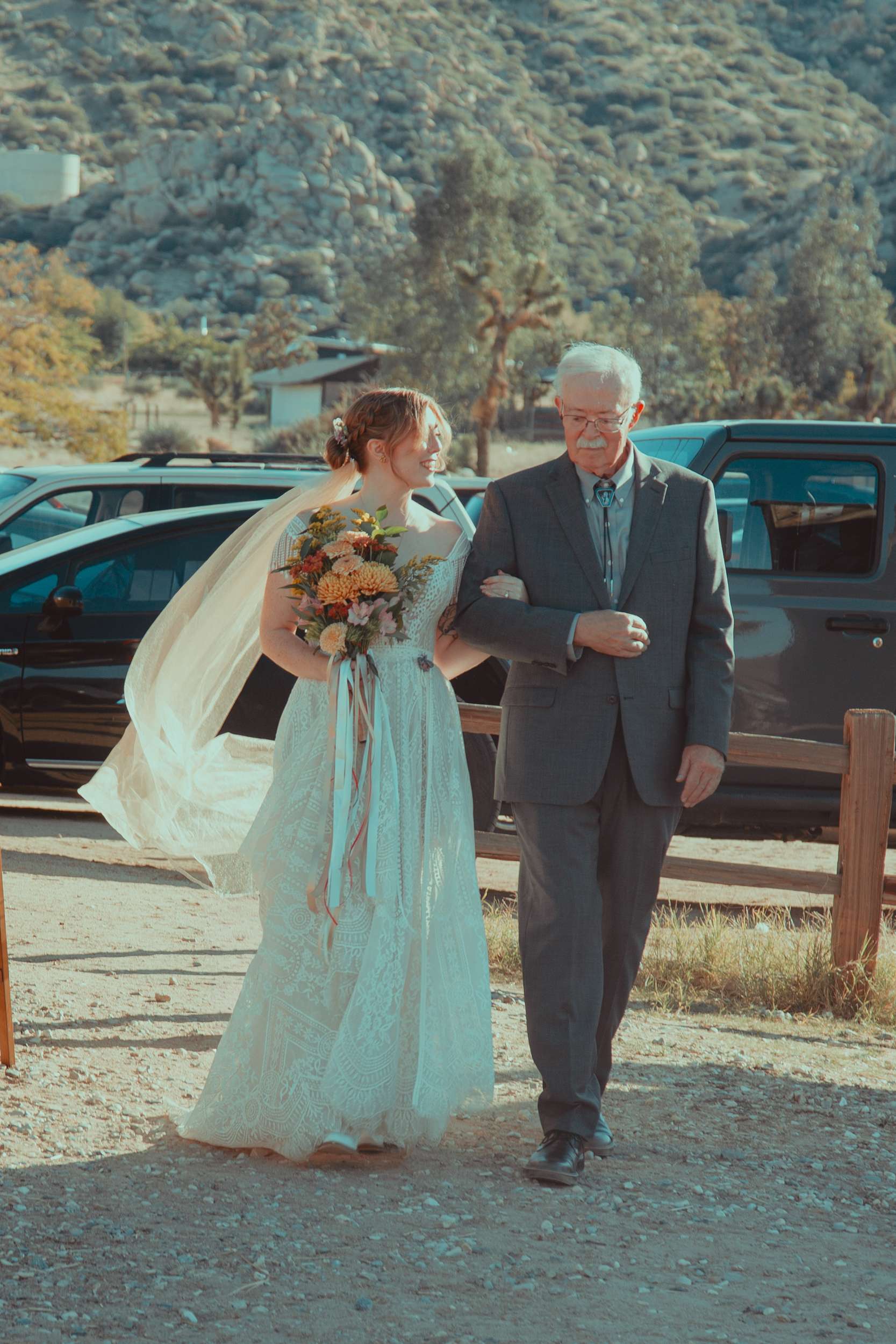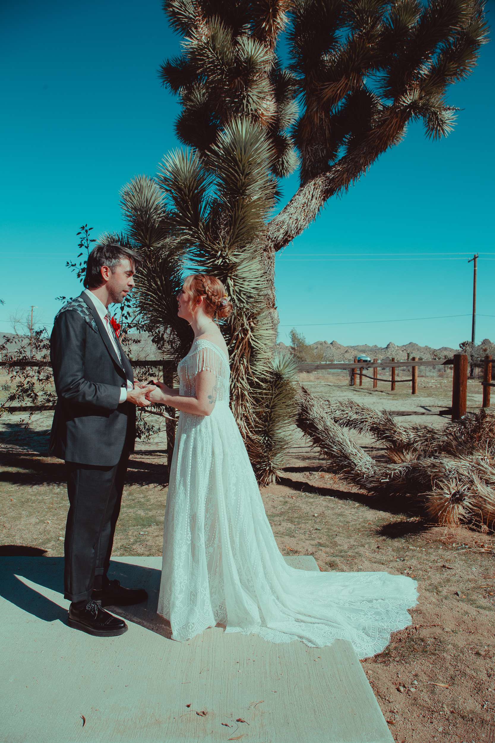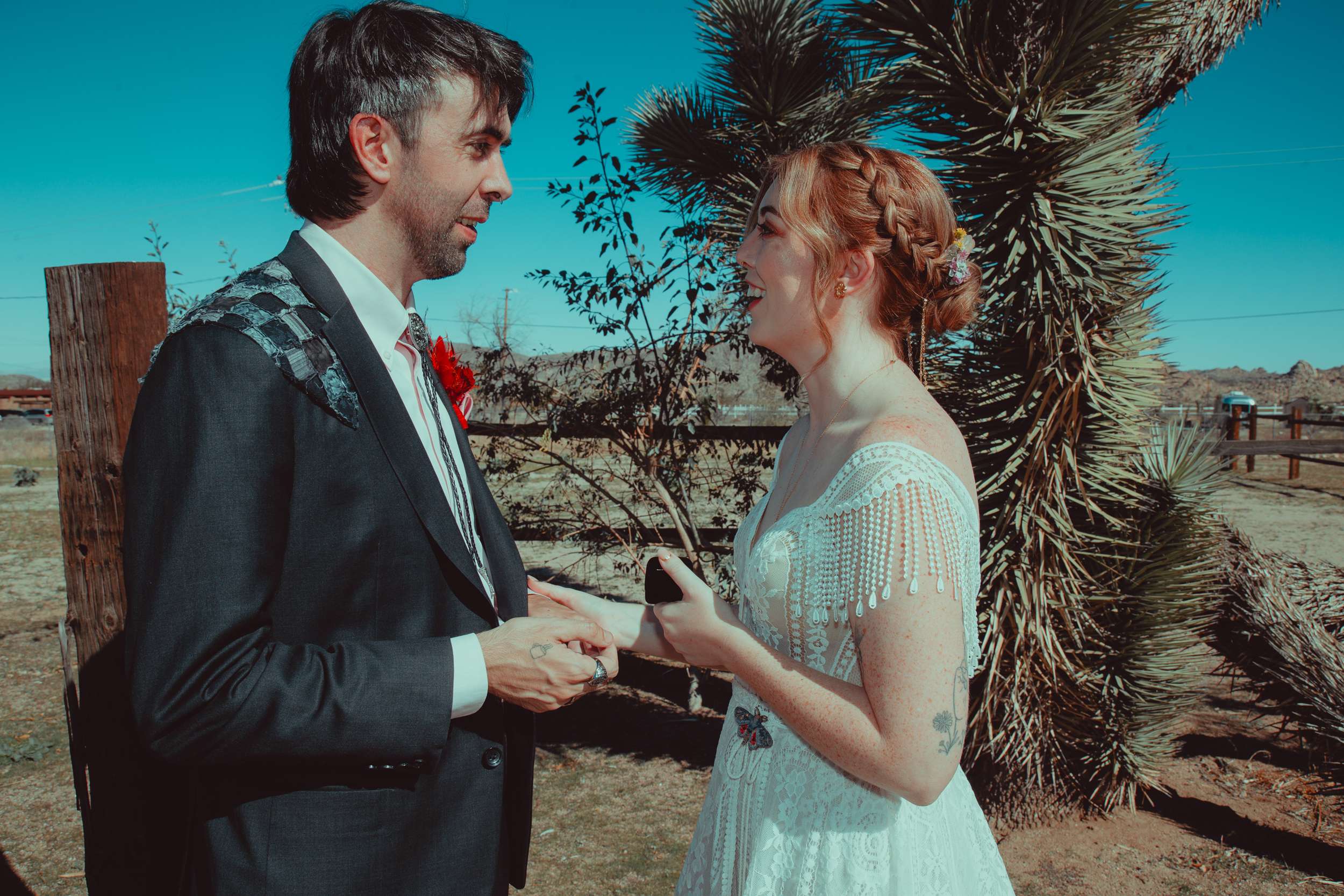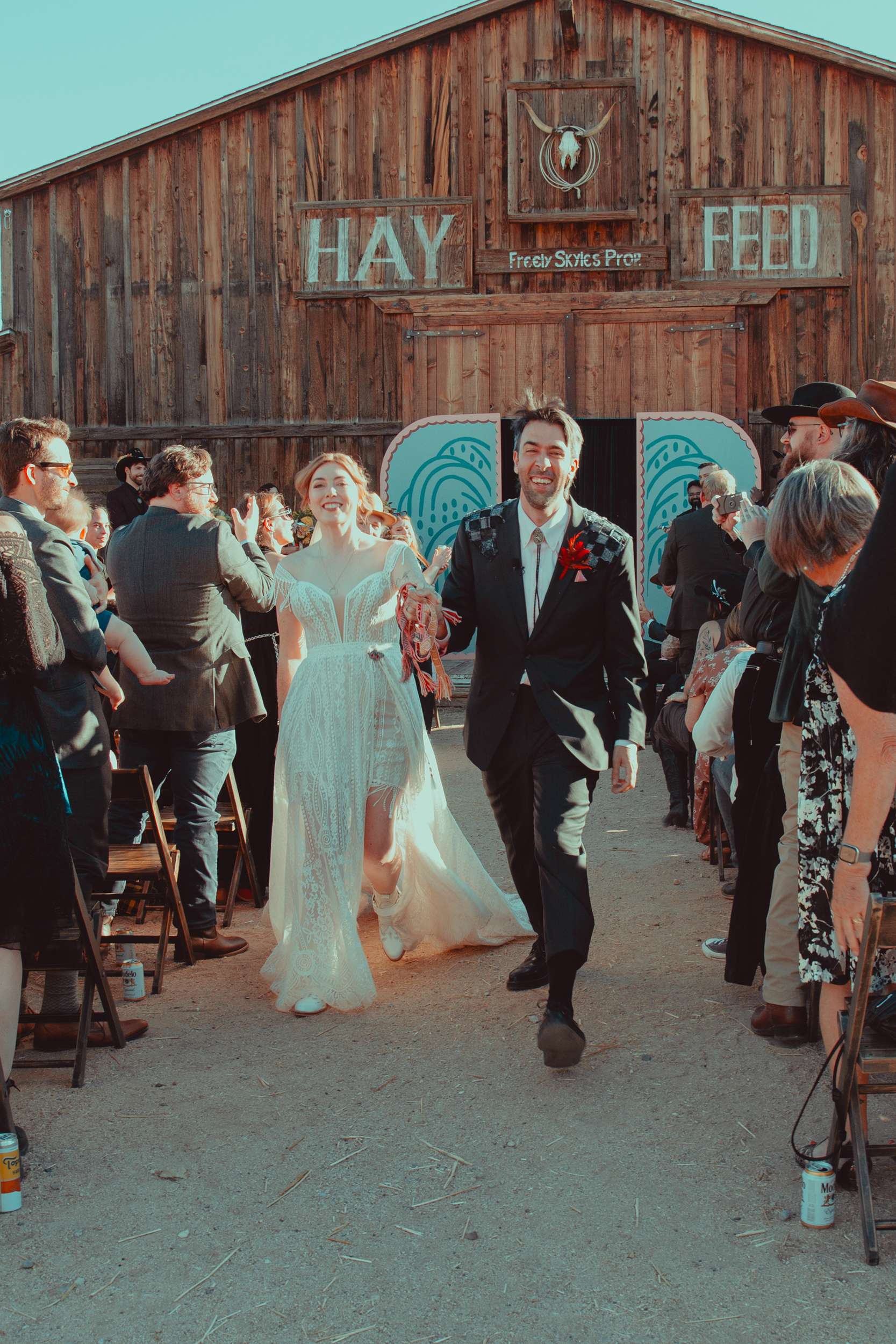 Kelly and Andy chose Pioneertown, specifically the Desert Soundstage, as their October wedding venue. They and their 144 guests travelled out to the desert to eat, drink and be married! The couple wanted the day to feel cosy, unique, interactive.