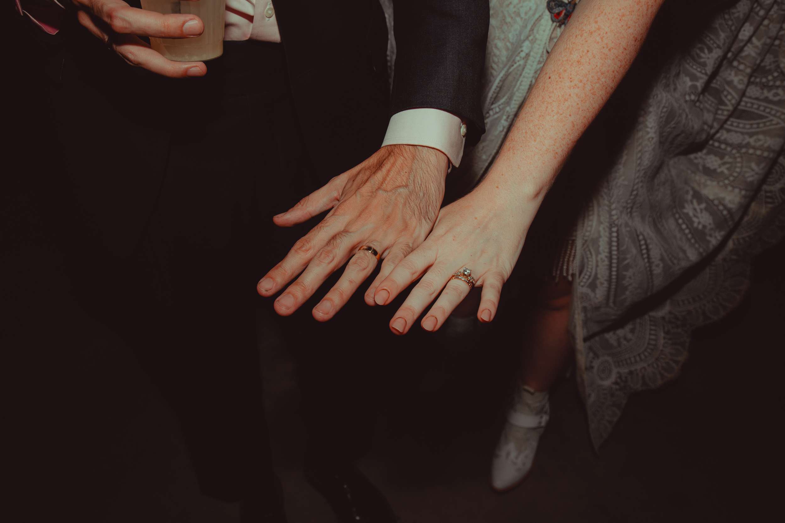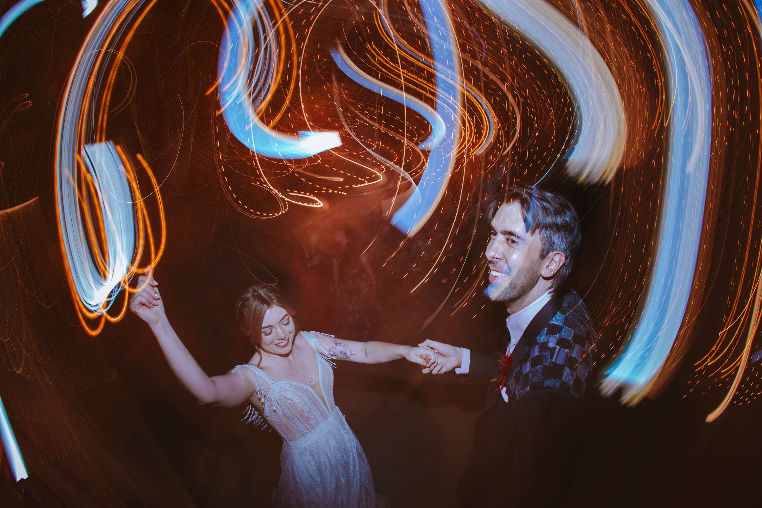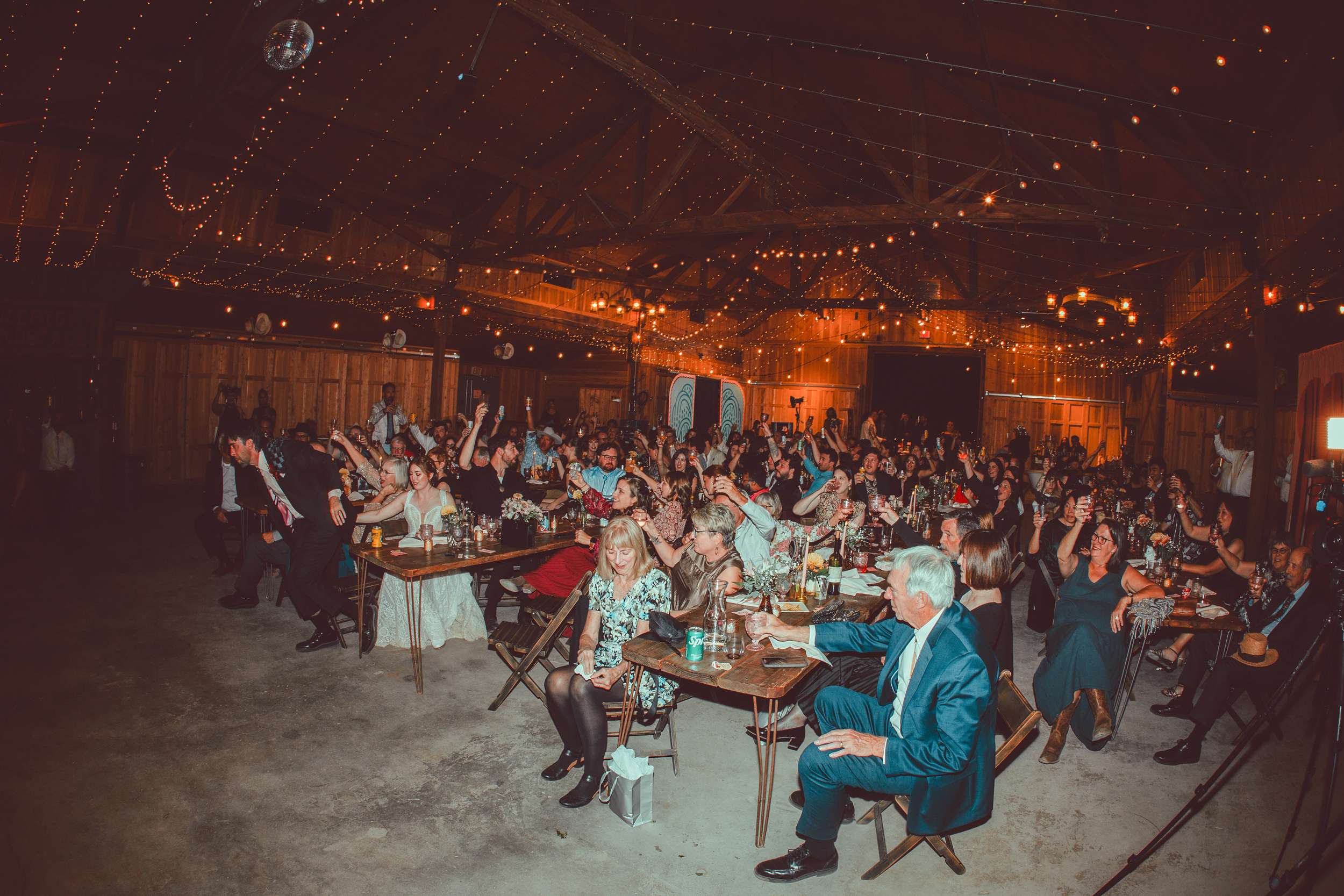 A live band played for the ceremony and cocktail hour and friends handled the DJ sets after that with a playlist that moved from disco to an EDM remix of Circle of Life. The night ended with everyone singing along to All I Want for Christmas Is You. “Our friends circled around us and it just felt really magical” Kelly said.