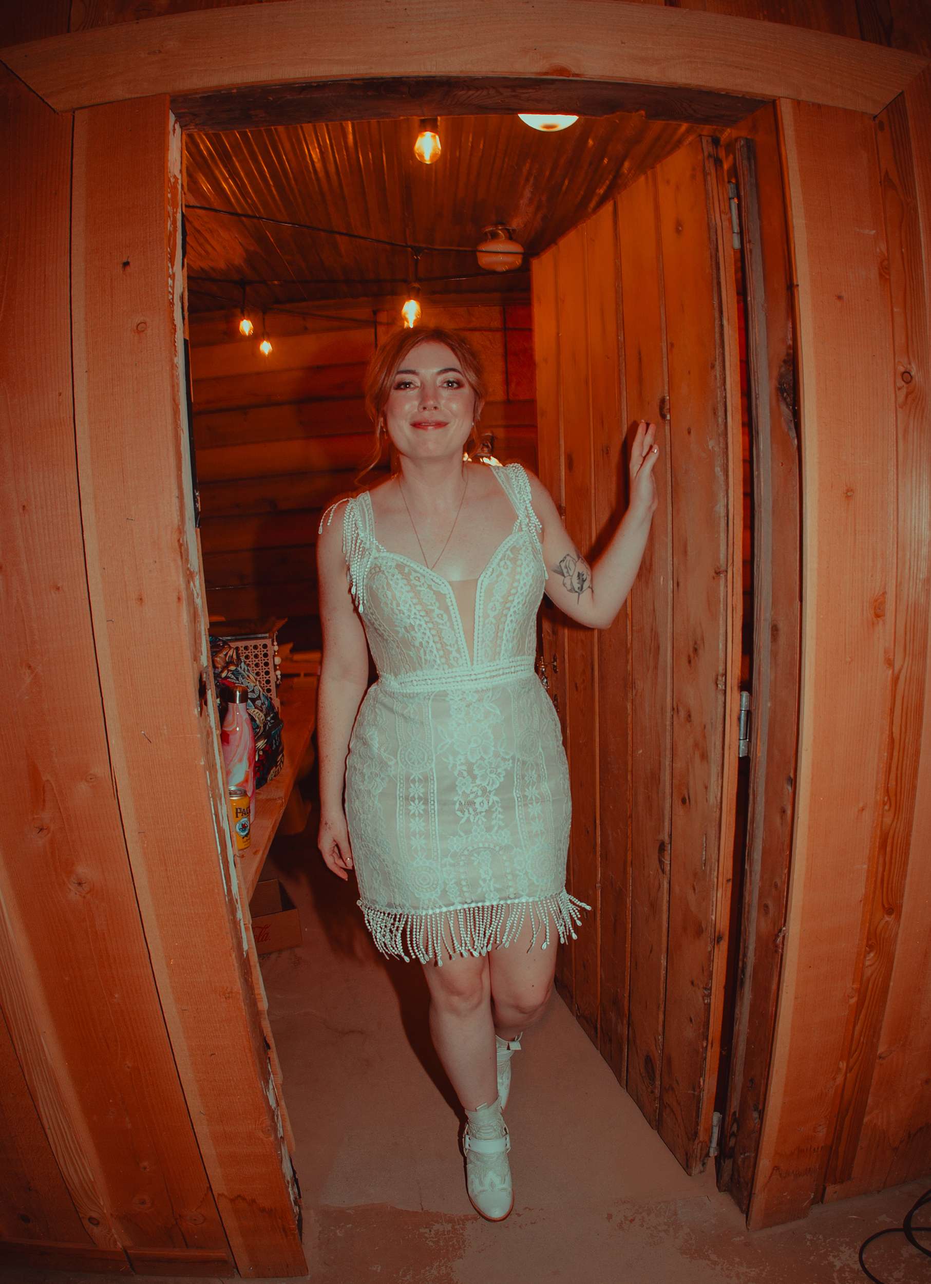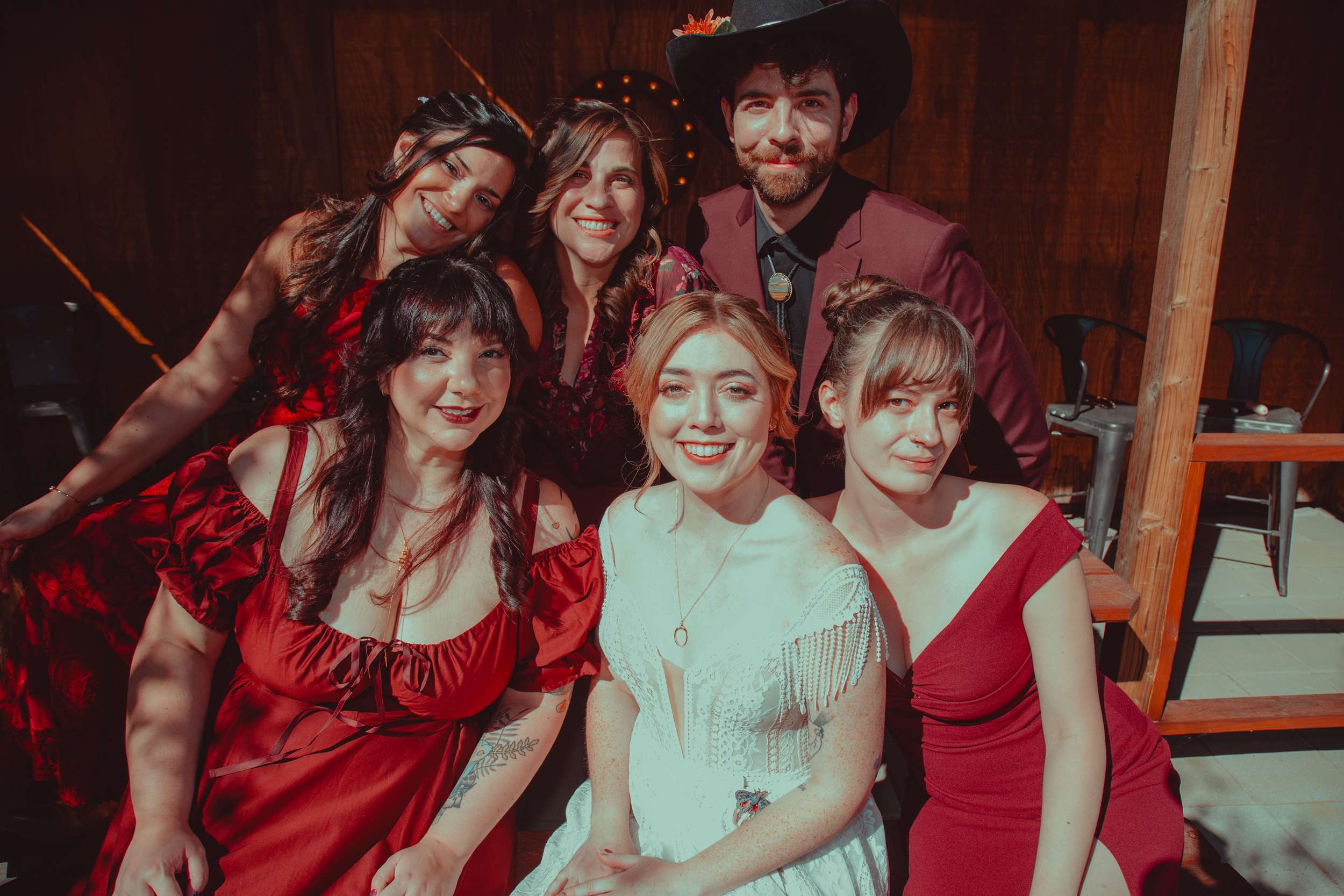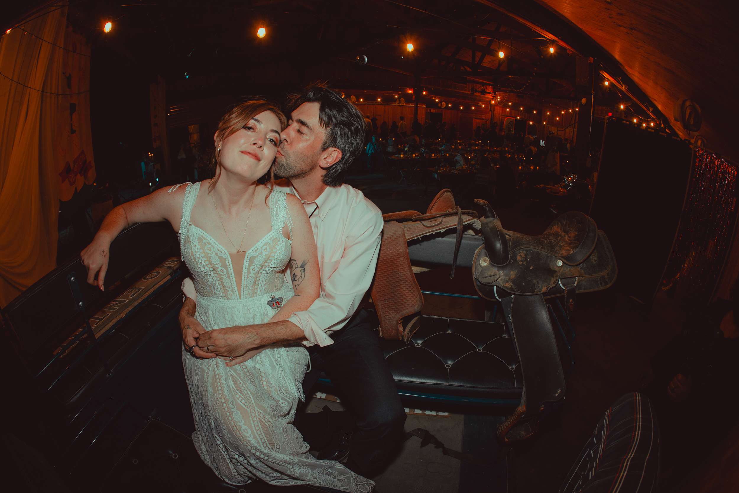 They are both artists – Andy works in props for film and TV and Kelly is a photographer who also paints. They approached the wedding like a big art project. “My inspiration was heavily taken from the aesthetic of the Madonna Inn”, Kelly said. “I love vintage, and I really wanted to have a warm and cosy wedding. Even though we didn’t tell anybody, the wedding theme was based around the idea ‘everything and the kitsch-in-pink’. For us this meant a maximalist styled wedding saturated in colour and kitschy flair. Our theme was also flavoured by the location which added a rustic western edge.”