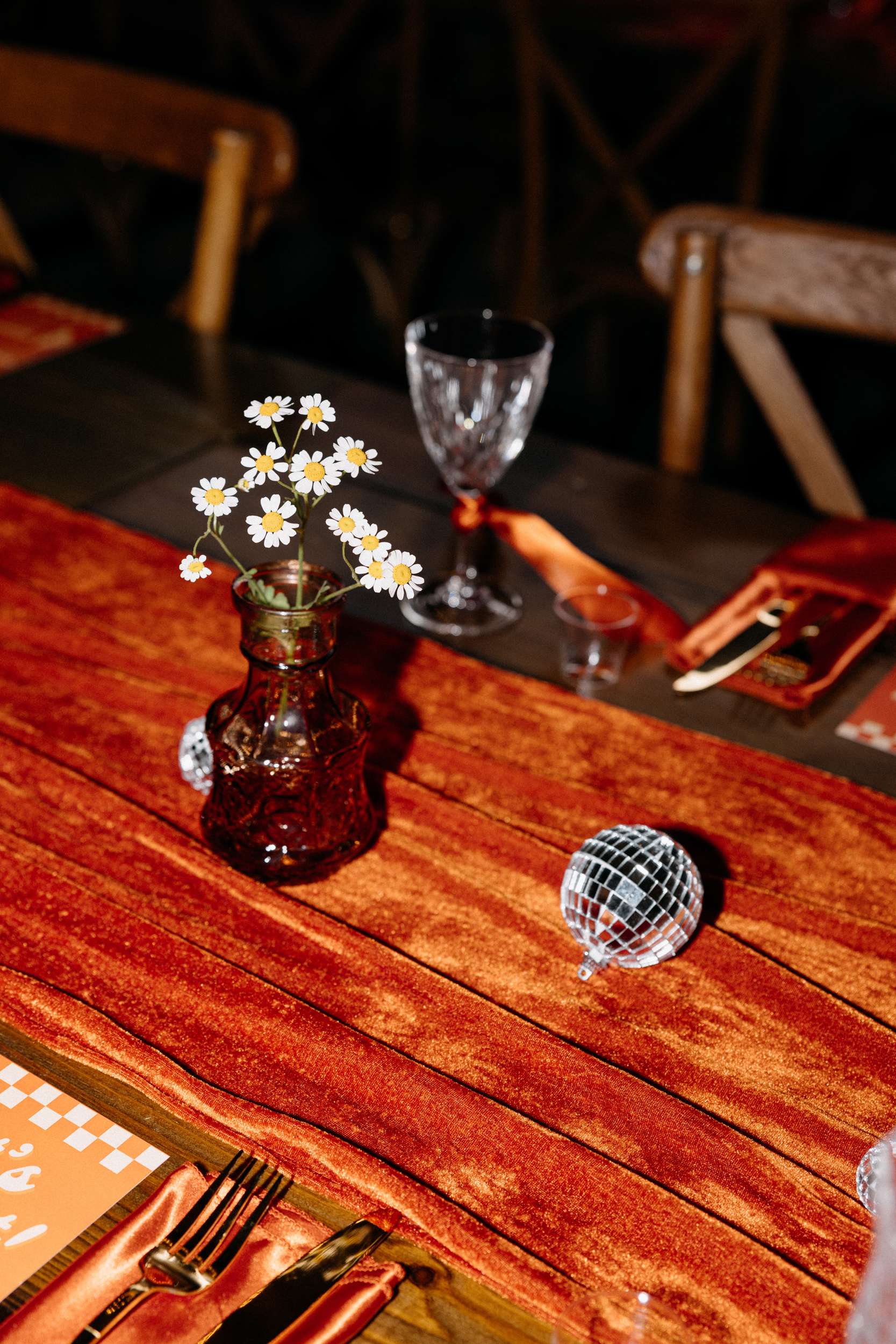 Seventies Disco Wedding With a Burnt Orange Colour Palette