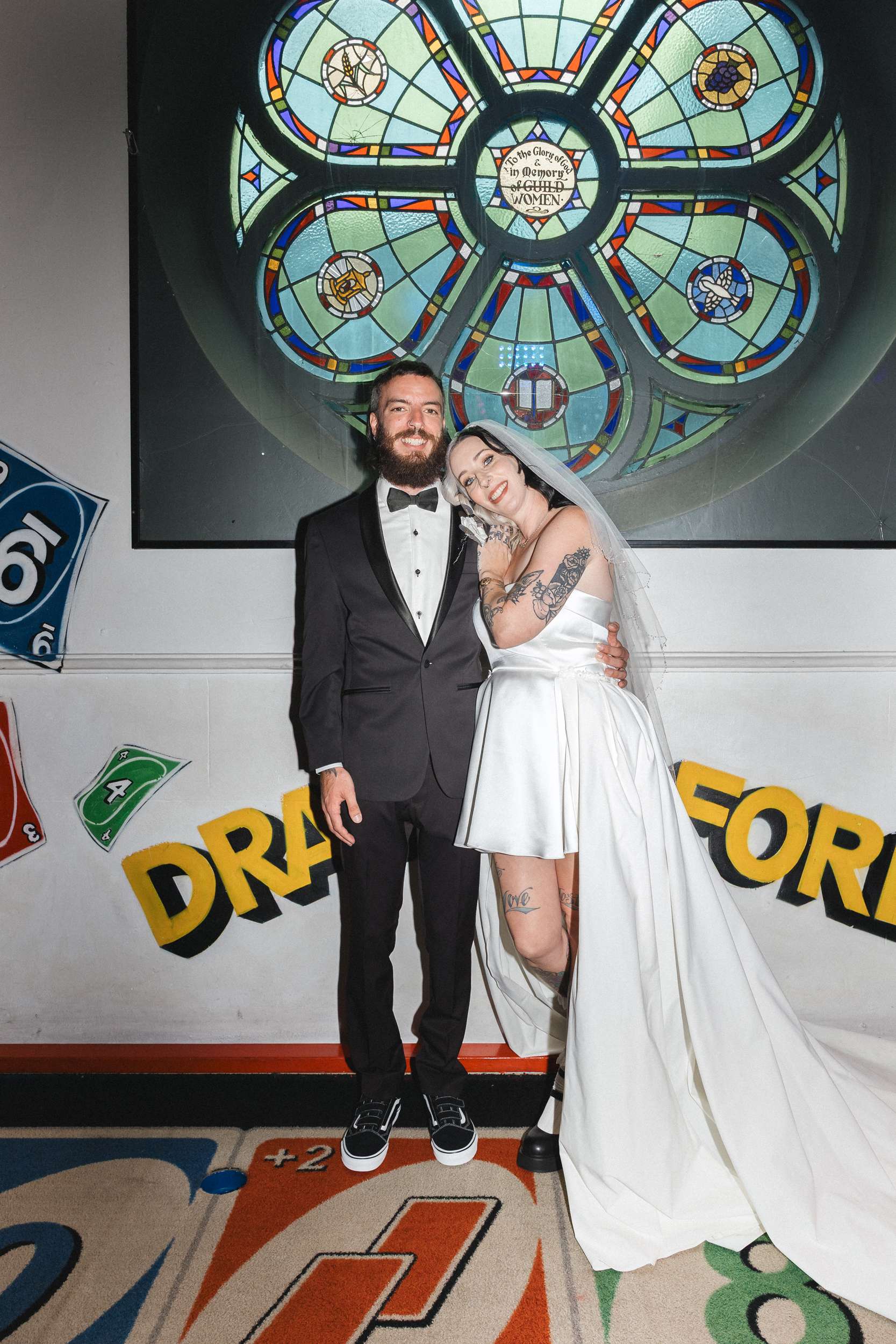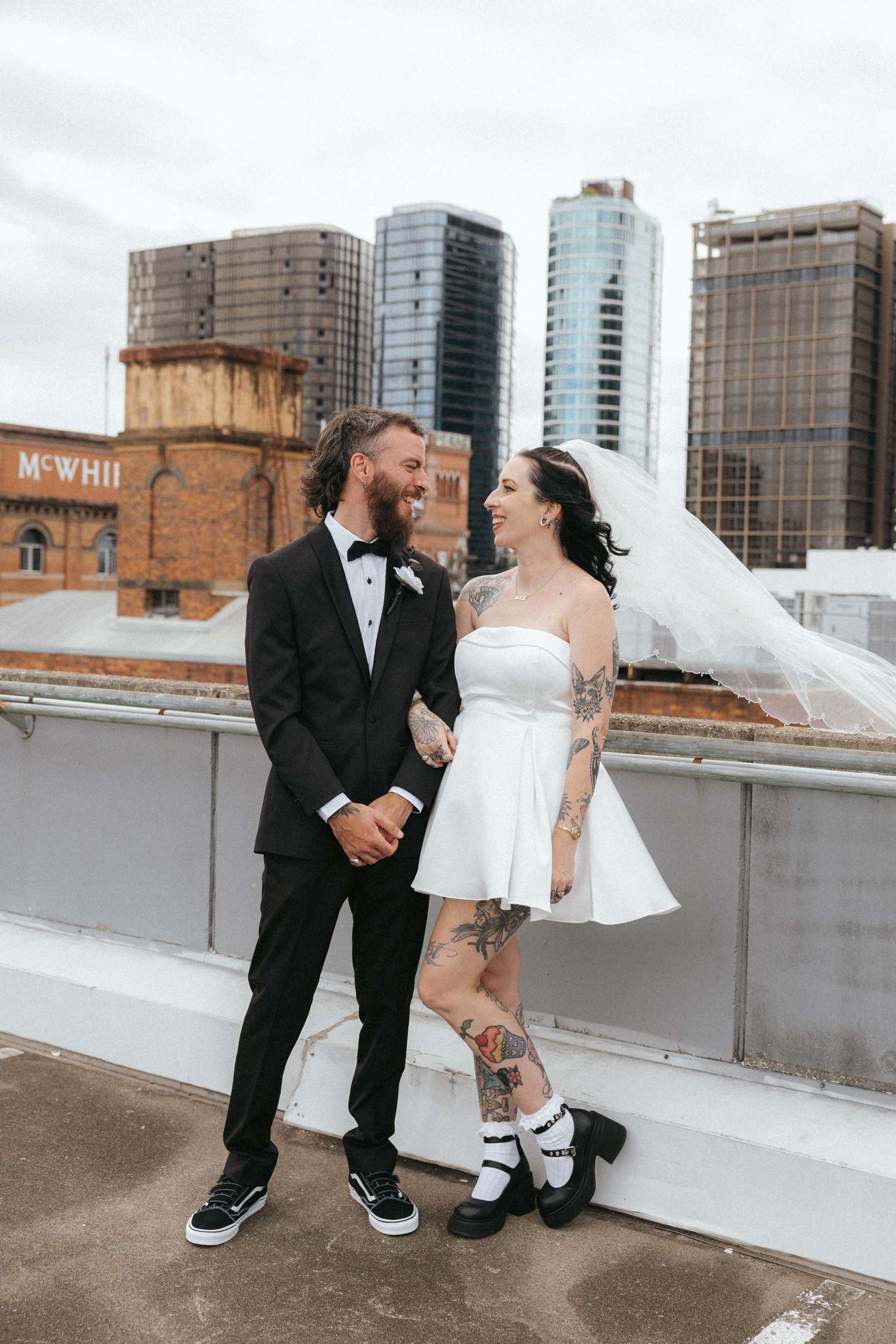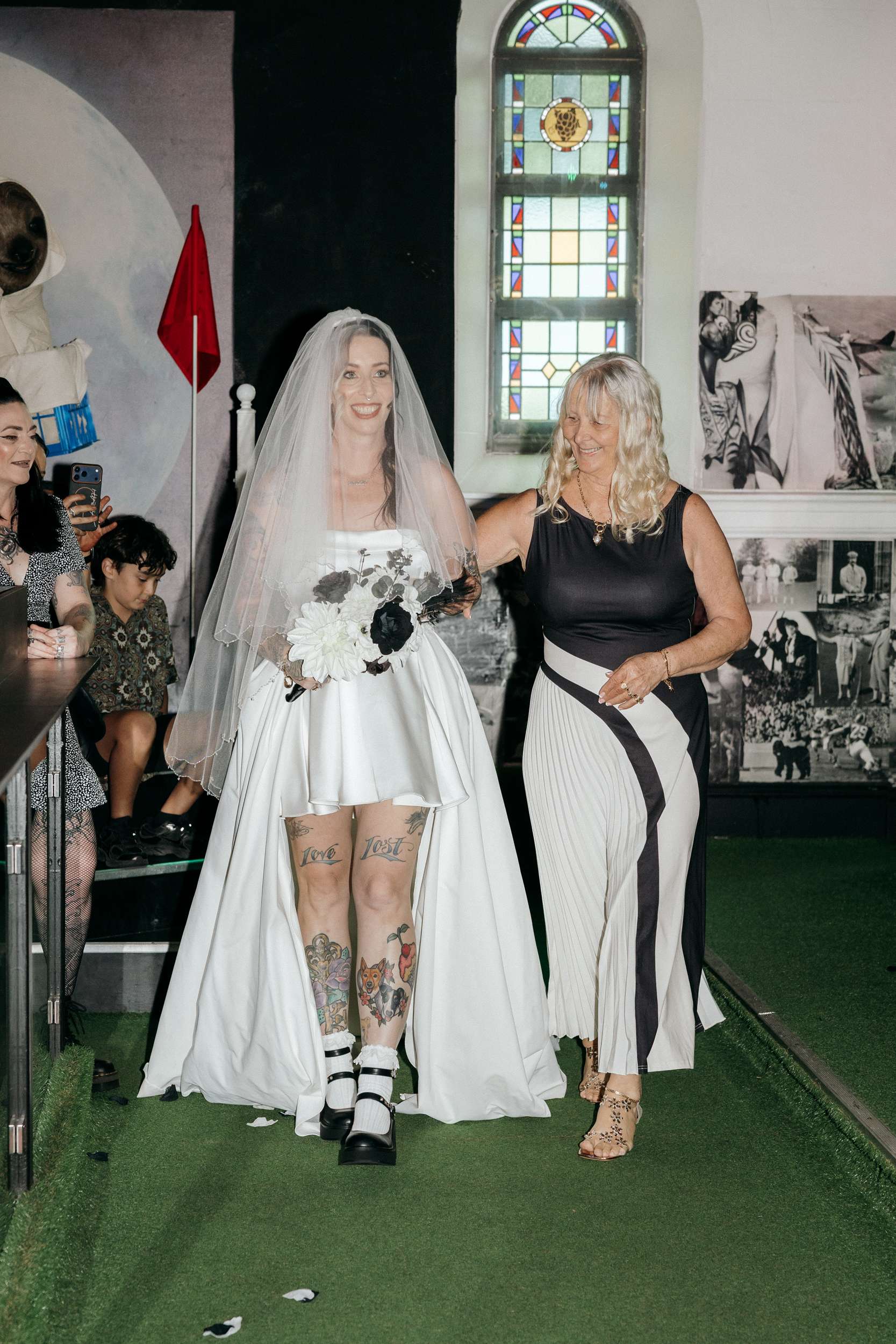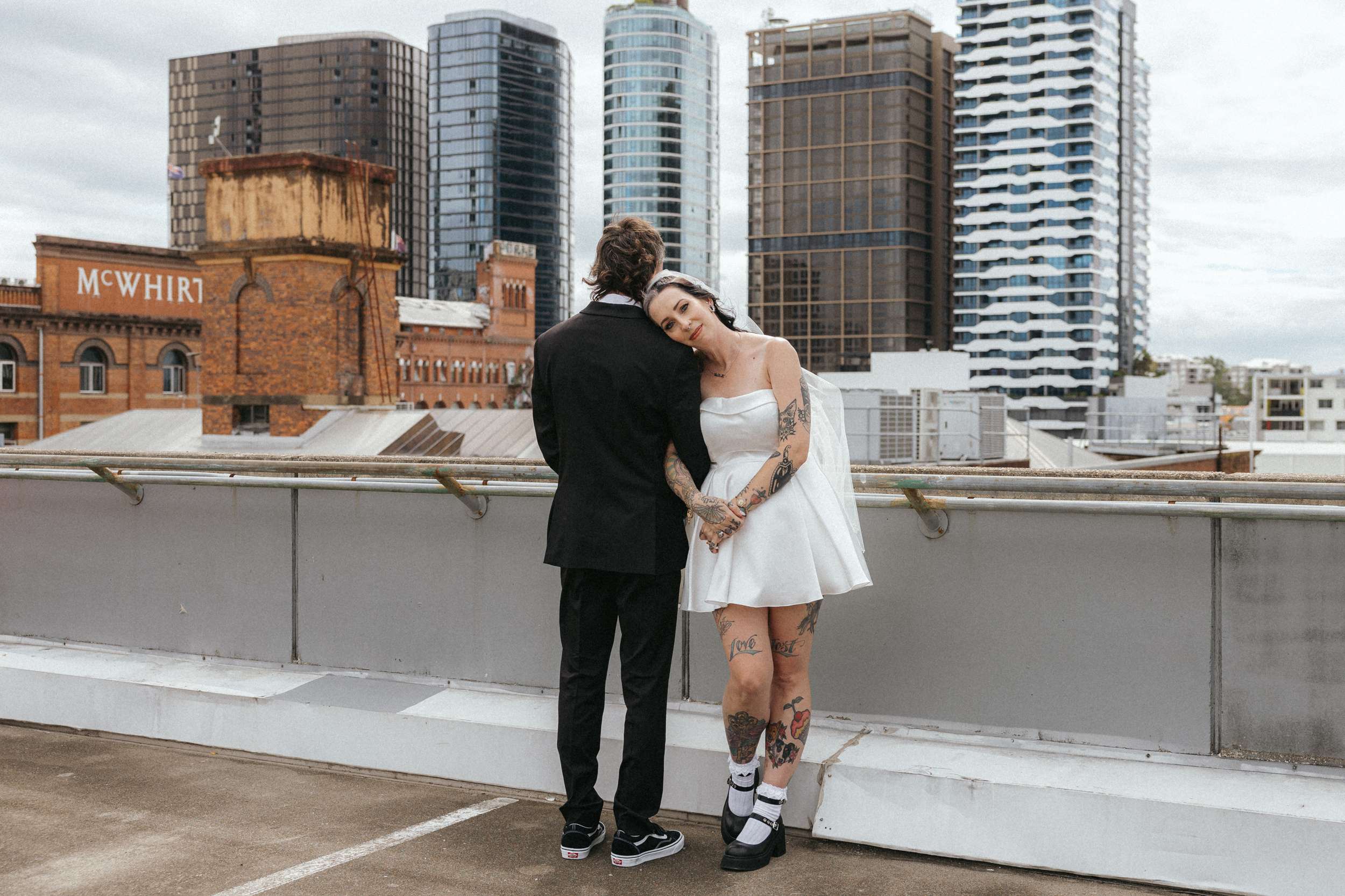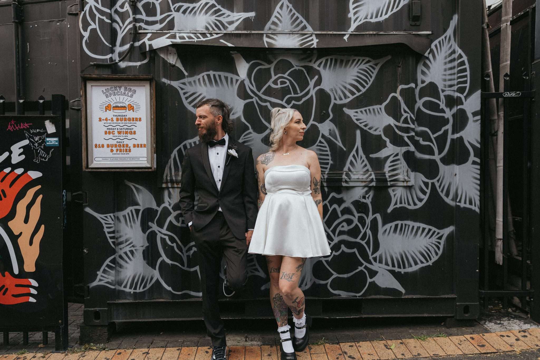 A and S got married at Holey Moley in Fortitude Valley, a crazy golf place which had been a regular date night stop whenever they were in Brisbane. Set inside an old church and black and white on the outside, it was perfect for their aesthetic and loud and playful inside which was perfect for their personalities!