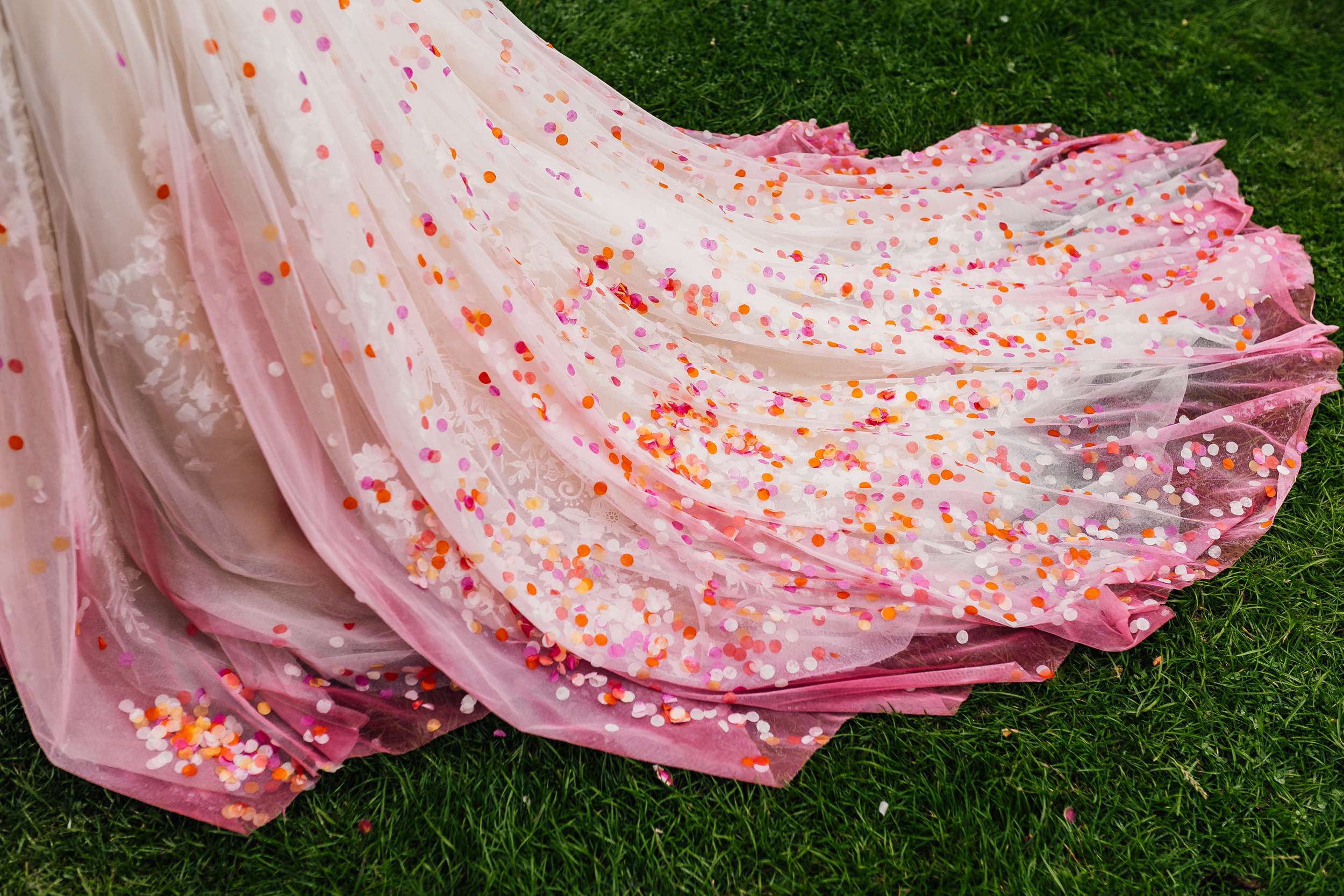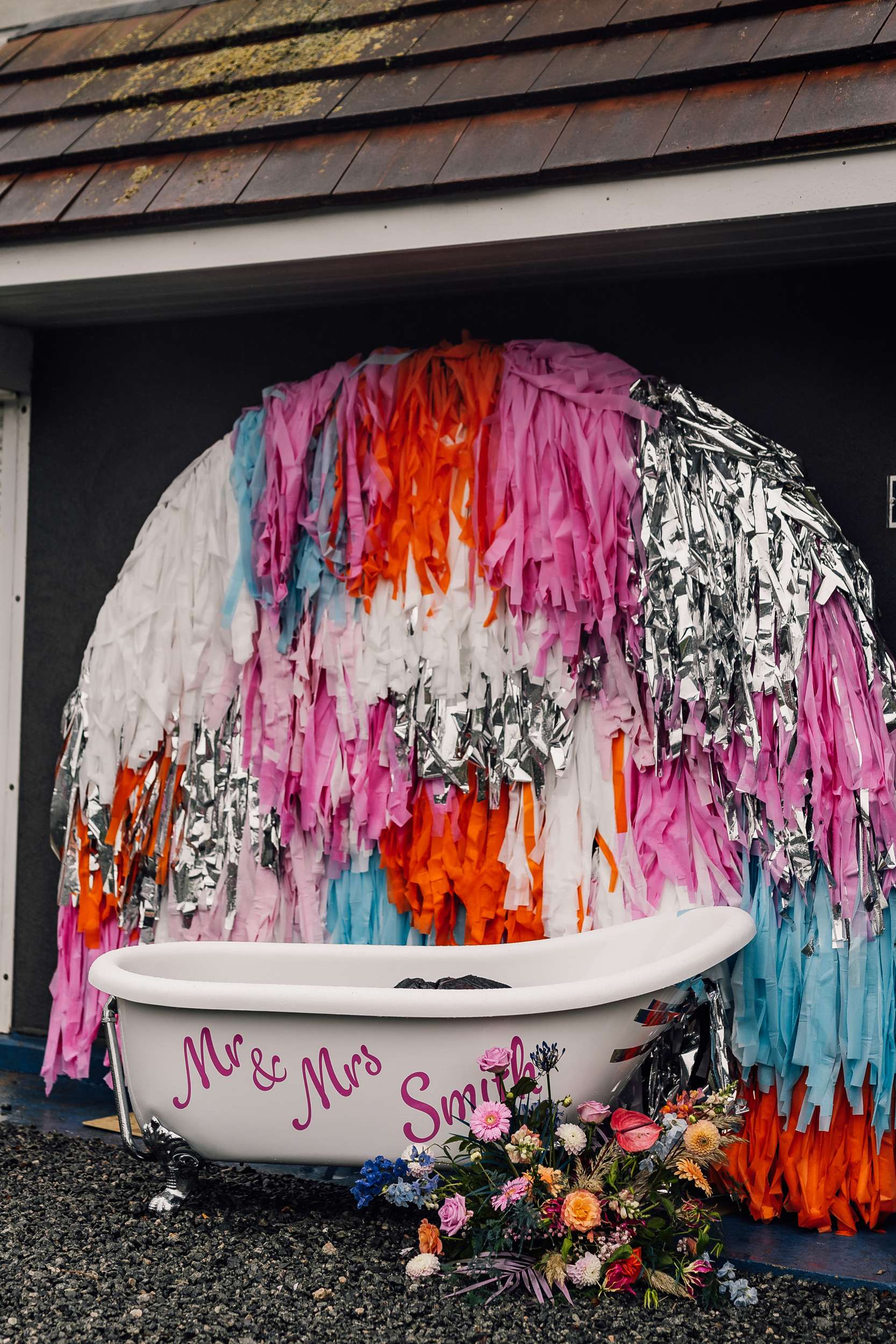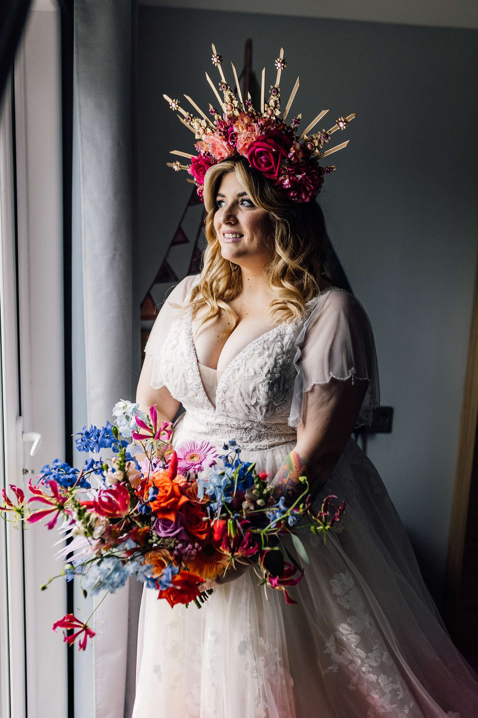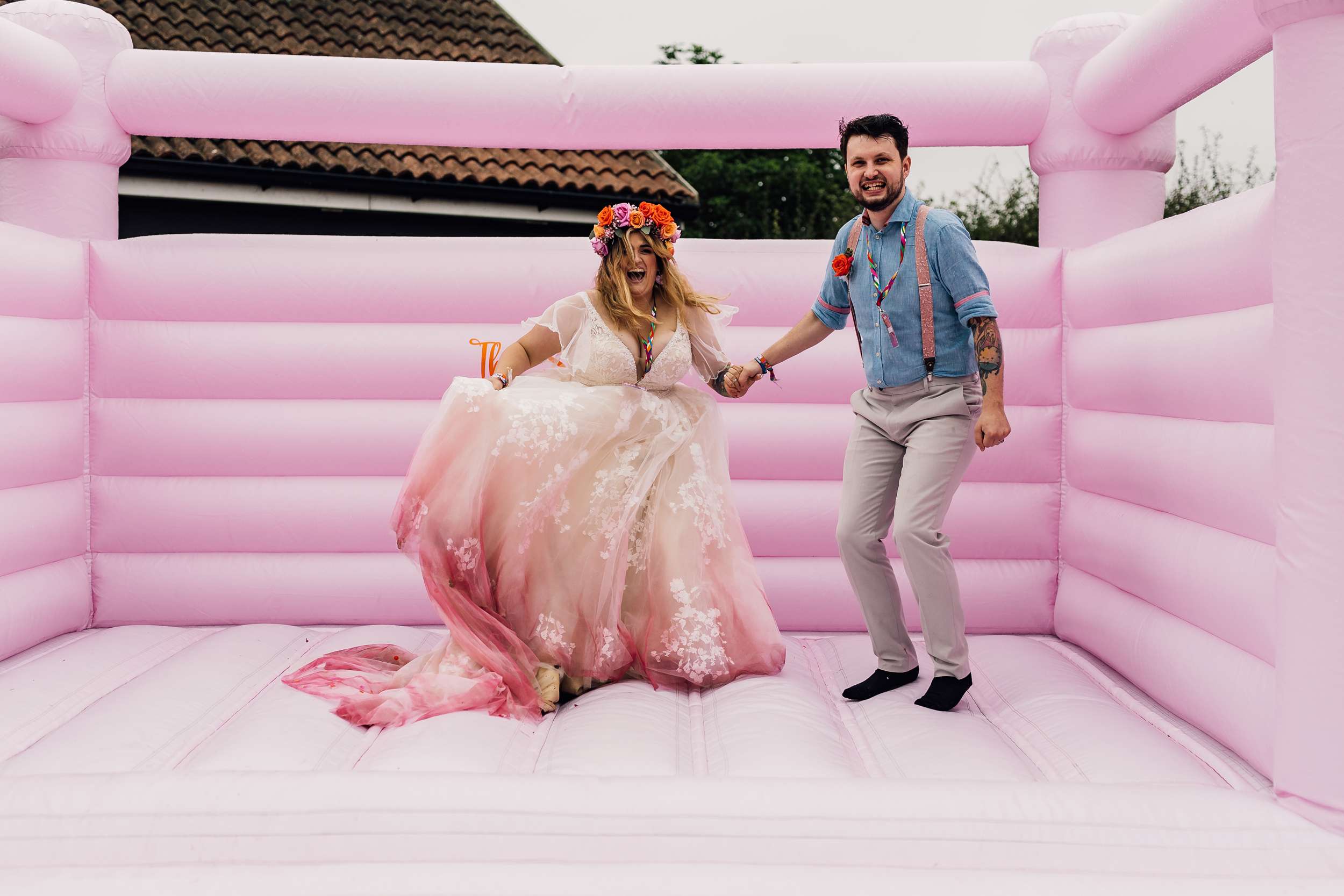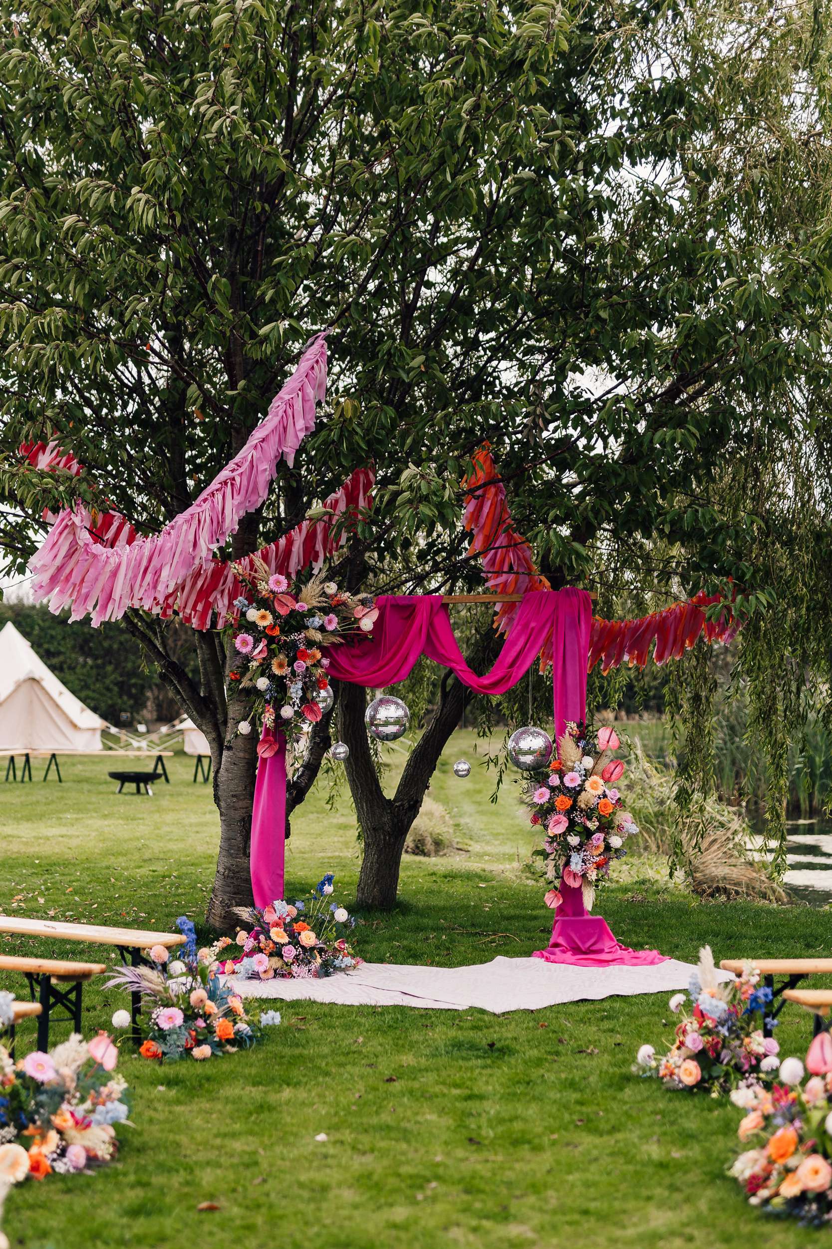 Chloe and Aaron’s colourful festival wedding in Hull was all about their personalities, their love of colour and not taking themselves too seriously. The couple, who have been together since they were 17, and their three children threw a celebration was full of laughter, games and in-jokes. And despite it raining all morning (even during their outdoor ceremony!) their spirits were not dampened one little bit. “We did not want a traditional wedding as it really wasn’t us”, they said, “we only wanted things we cared about or would enjoy there”