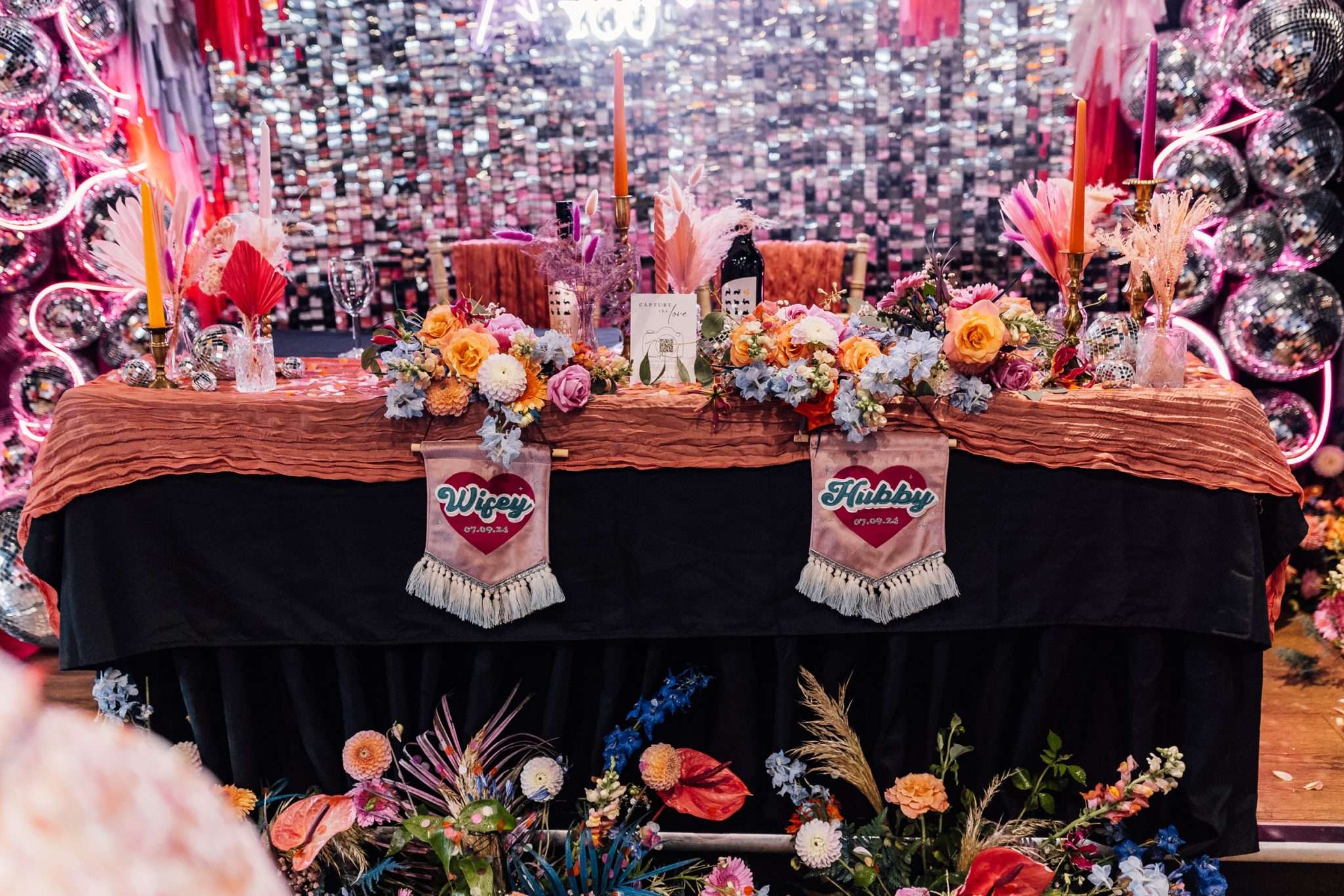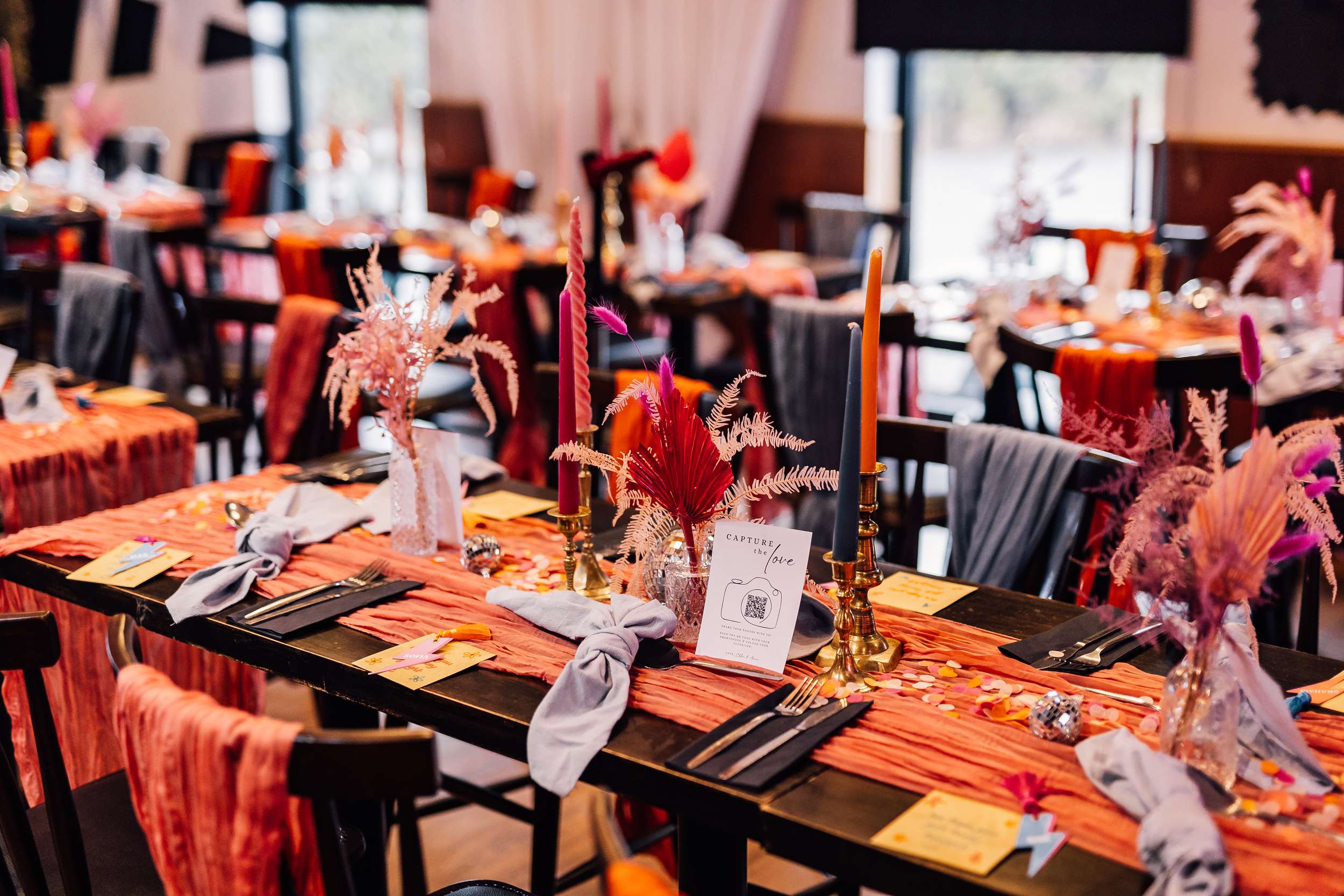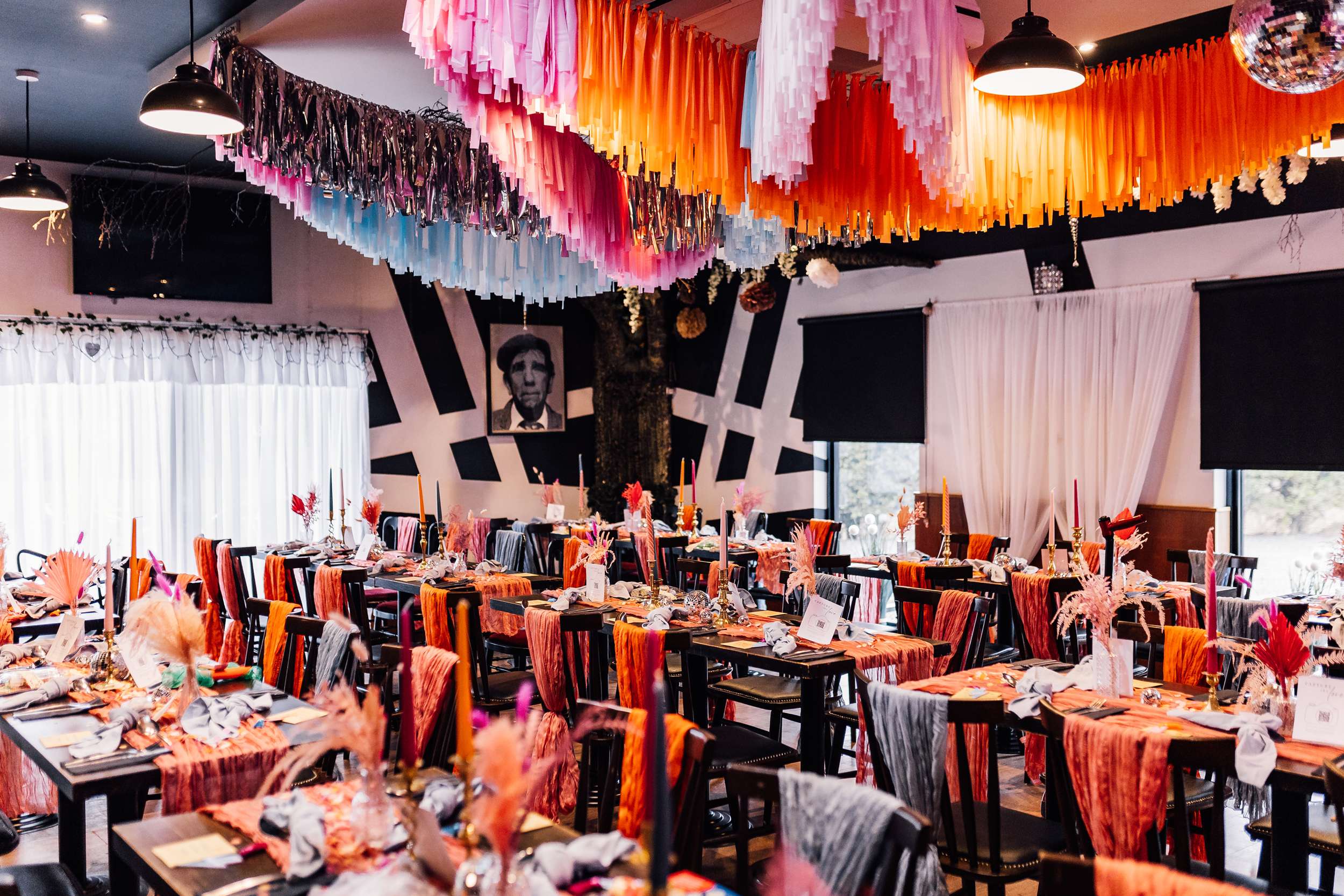 Luna Moon Events transformed the space with bright, bold styling – disco balls, neon lights, colourful streamers, custom signs, There were chillout areas, a glitter bar, a photo booth, a bouncy castle and games like Beer Pong and Connect 4 which were played by guests all day. They had a children’s entertainer for the kids, who did magic tricks and balloon animals.