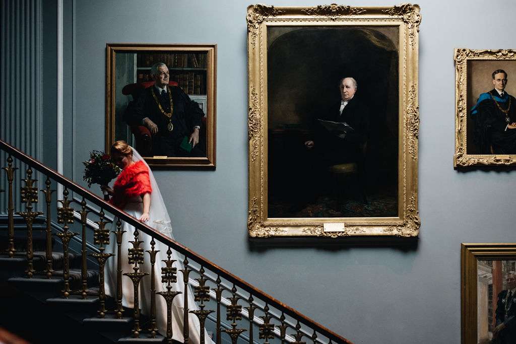 Vintage Scottish Edinburgh Library Wedding Pregnant Bride 14