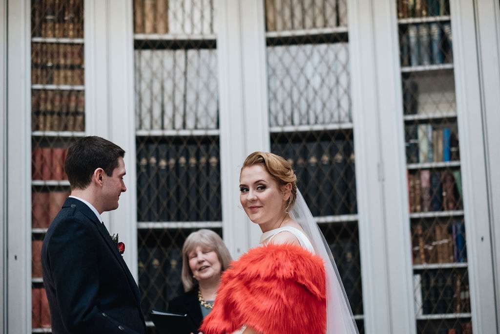 Vintage Scottish Edinburgh Library Wedding Pregnant Bride 21